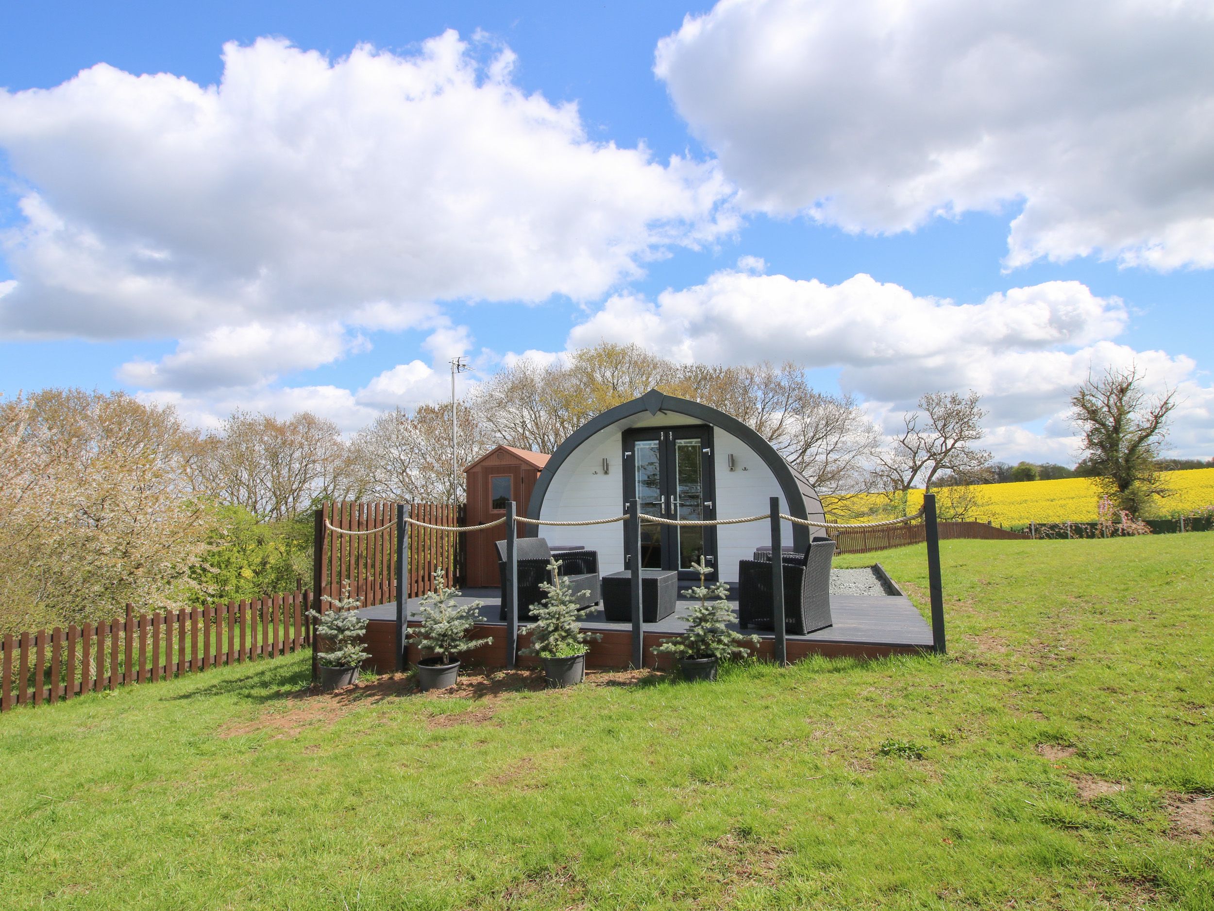 Holiday home The living areas in this single-storey pod consist of an open-plan living area with a kitchen with two-ring hob, combi microwave/oven, fridge with ice box, dining table for two, and a sitting area with Smart TV. There is a double bed and a shower room with hairdryer. Outside, there is an enclosed paddock with a decked area, furniture, fire pit, and a gas barbecue, as well as off-road parking approx. 100 yards away for two cars. Within 1.5 miles, you will find a shop, and within 0.1 miles, a pub, and please note that this is a non-smoking property. WiFi, fuel, power, bed linen and towels are all included in the price. Two well-behaved dogs are welcome. Highchair and travel cot available. Note: The property is accessed via a rough track up a field, not suitable for cars and can become slippery in Winter, please take care. Enjoy a romantic break to Shropshire at Cherry Pod 2.
