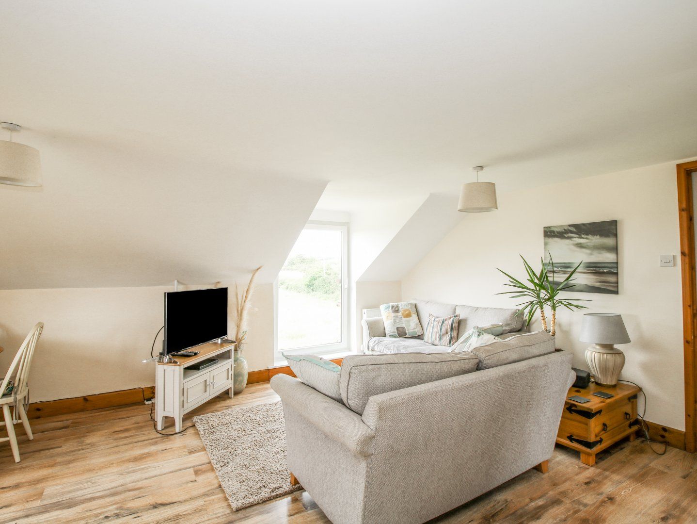 Amenities Oil central heating. Air source heat pump and solar panels. Electric oven and hob, microwave, fridge with ice box. Smart TV with Netflix, WiFi. Fuel and power inc. in rent. Bed linen and towels inc. in rent. Off-road parking for 2 cars and CCTV for secure parking. Enclosed paved sun terrace with lawn and seating. External storage for motor bikes, bikes etc in secure premises. Dogs and house cats welcome. Shop 3.9 miles, pub 1.9 miles. Note: This is an adult-only property.