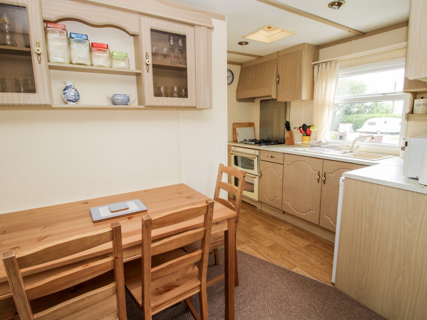 Holiday home The living areas in this caravan consist of an open-plan living space with kitchen equipped with gas oven and hob, microwave and fridge with ice-box, a dining table for four and a sitting area with gas fire and TV. The bedrooms consist of a double with en-suite cloakroom and a twin serviced by a bathroom. Outside there is off-road parking for two cars and a communal garden with lawn, trampolines, slides and swings. On-site there is a shop and in 1.3 miles there is pub. Highchair available on request. Sorry, no pets and no smoking. WiFi, fuel, power, bed linen and towels are all included in the price. Escape to Shropshire's countryside at 7 Old Orchard. Note: There is an on-suite laundry room available at a local charge. Note: There is an on-site freezer, as the property only has an ice-box.