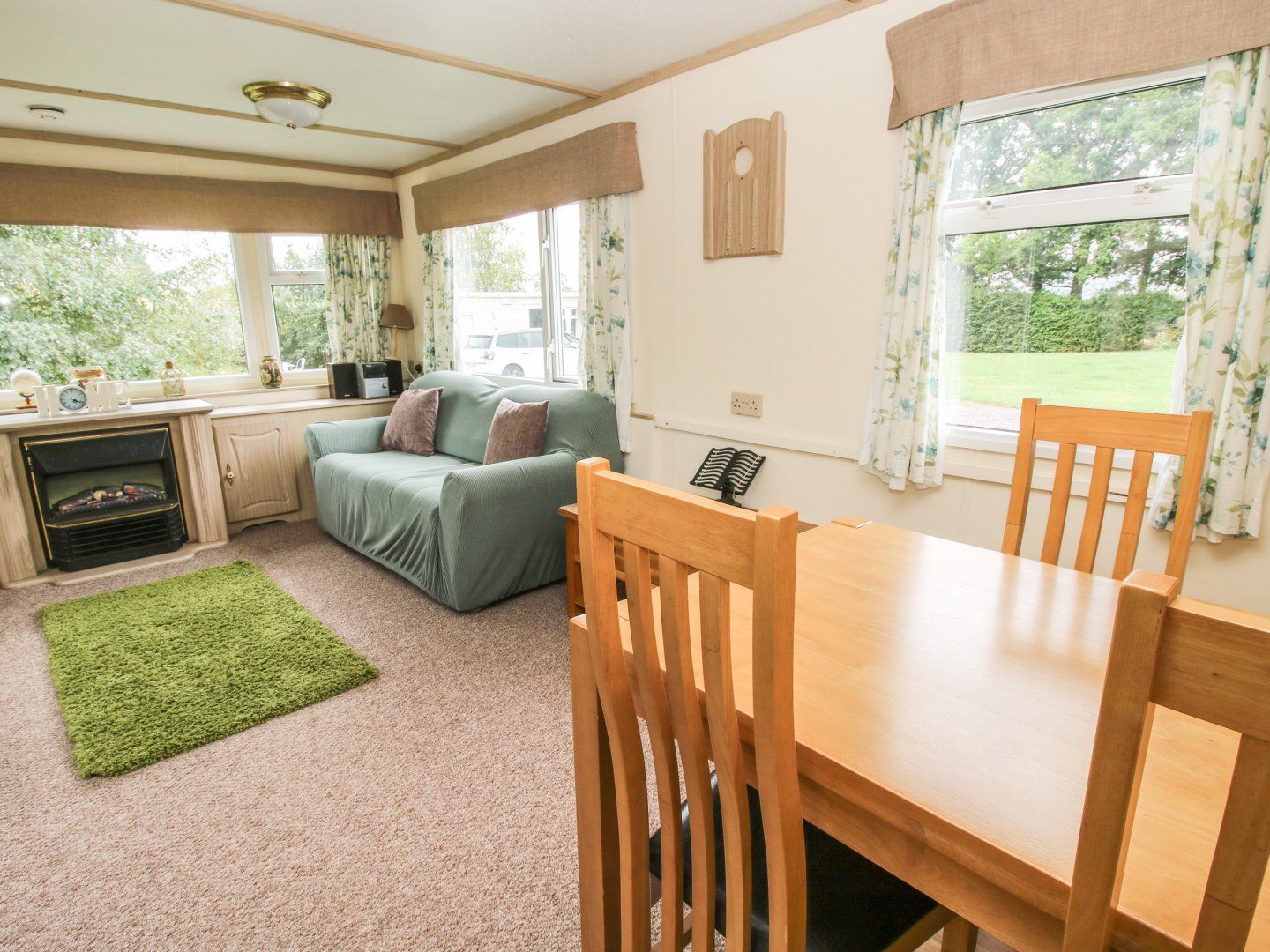 Holiday home The living areas in this caravan consist of an open-plan living space with kitchen equipped with gas oven and hob, microwave and fridge with ice-box, a dining table for four and a sitting area with TV and gas fire. The bedrooms consist of a double and a twin serviced by a bathroom. Outside there is off-road parking for two cars and a communal lawn with trampolines, swings and slides. On-site there is a shop and in 1.3 miles there is a pub. Highchair available on request. Sorry, no pets and no smoking. WiFi, fuel, power, bed linen and towels are all included in the price. Escape city life at 8 Old Orchard. Note: There is an on-suite laundry room available at a local charge. Note: There is an on-site freezer, as the property only has an ice-box.