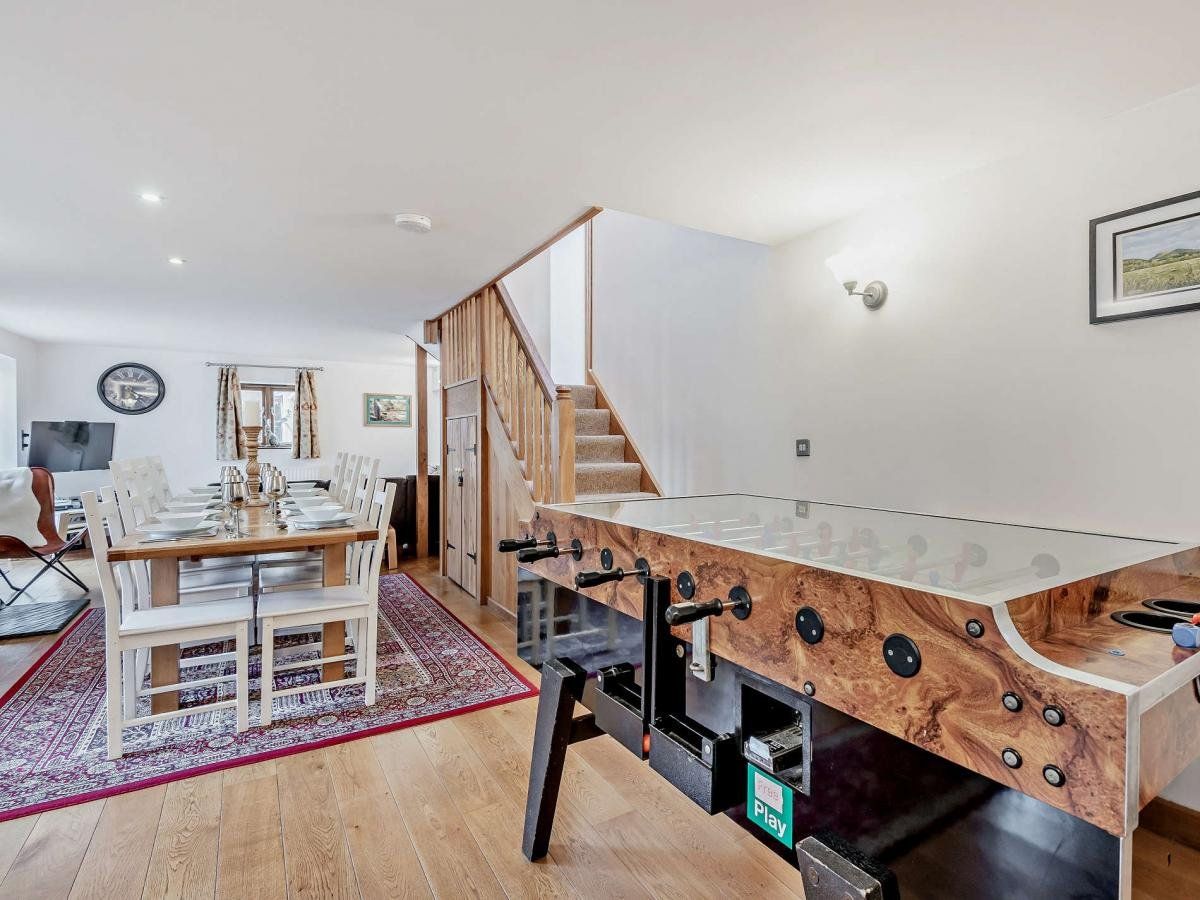 Enjoy idyllic views and village life from this stunning barn conversion with a hobbit-style hut, wood burner and pub-size table football.