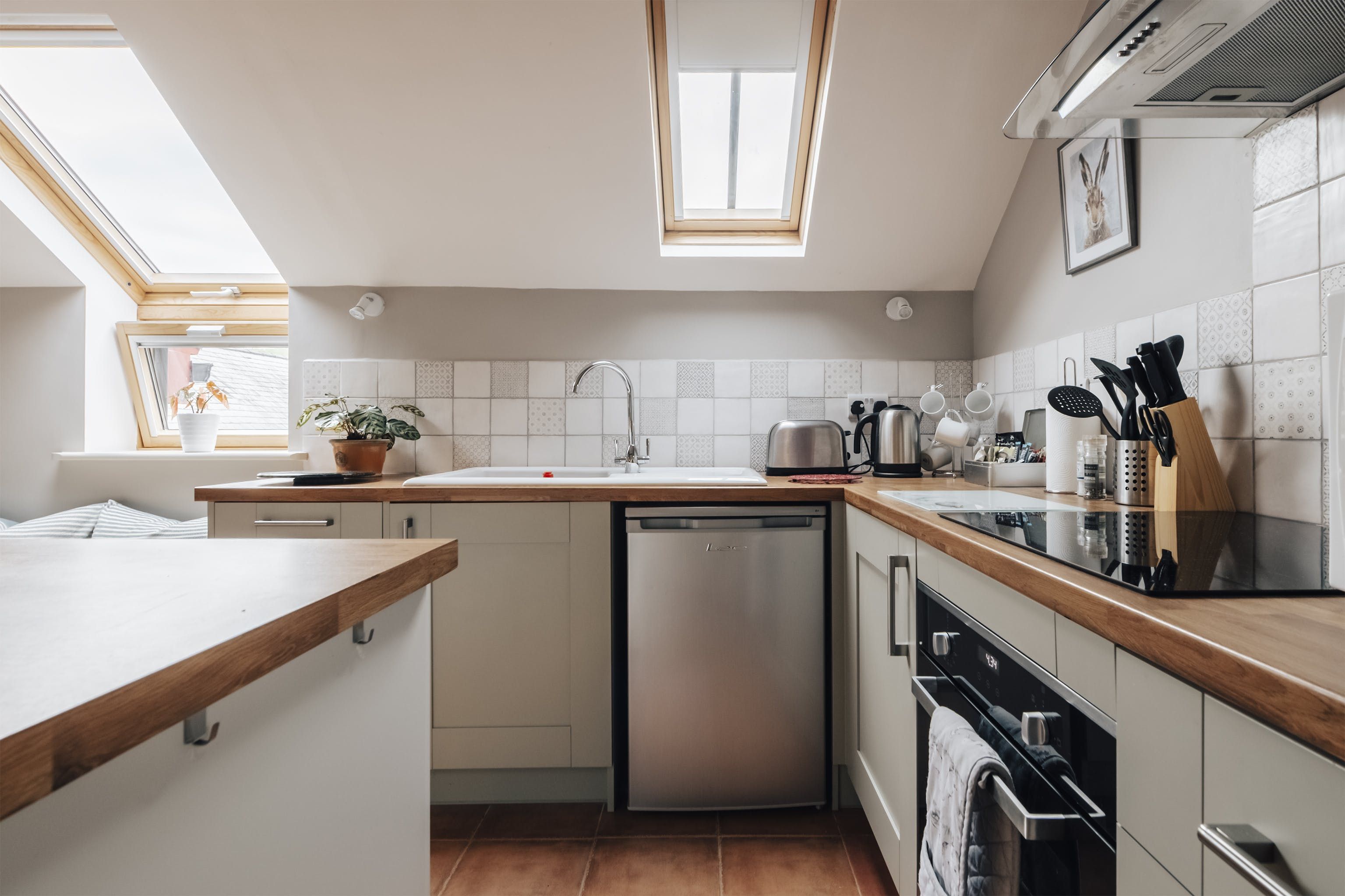 This home was once a hayloft in a former life — the original circular window on the front is so shaped for pitching hay through — but today it's a perfectly cosy space for a rural getaway. Despite this functional heritage, you can safely banish any thoughts of cramped living quarters. Illuminated by a series of skylights, guests get access to a recently refitted kitchen that is plenty big enough for cooking up hearty dinners, as well as a lounge with comfy furnishings for sprawling out upon after long country walks. There is no shortage of outdoor pursuits to undertake in North Shropshire and just across the Welsh border, including wandering along the Pontcysyllte Aqueduct, only twenty-four minutes away in the car. The Boat House gastropub on the outskirts of Ellesmere is only six minutes' walk away, too.