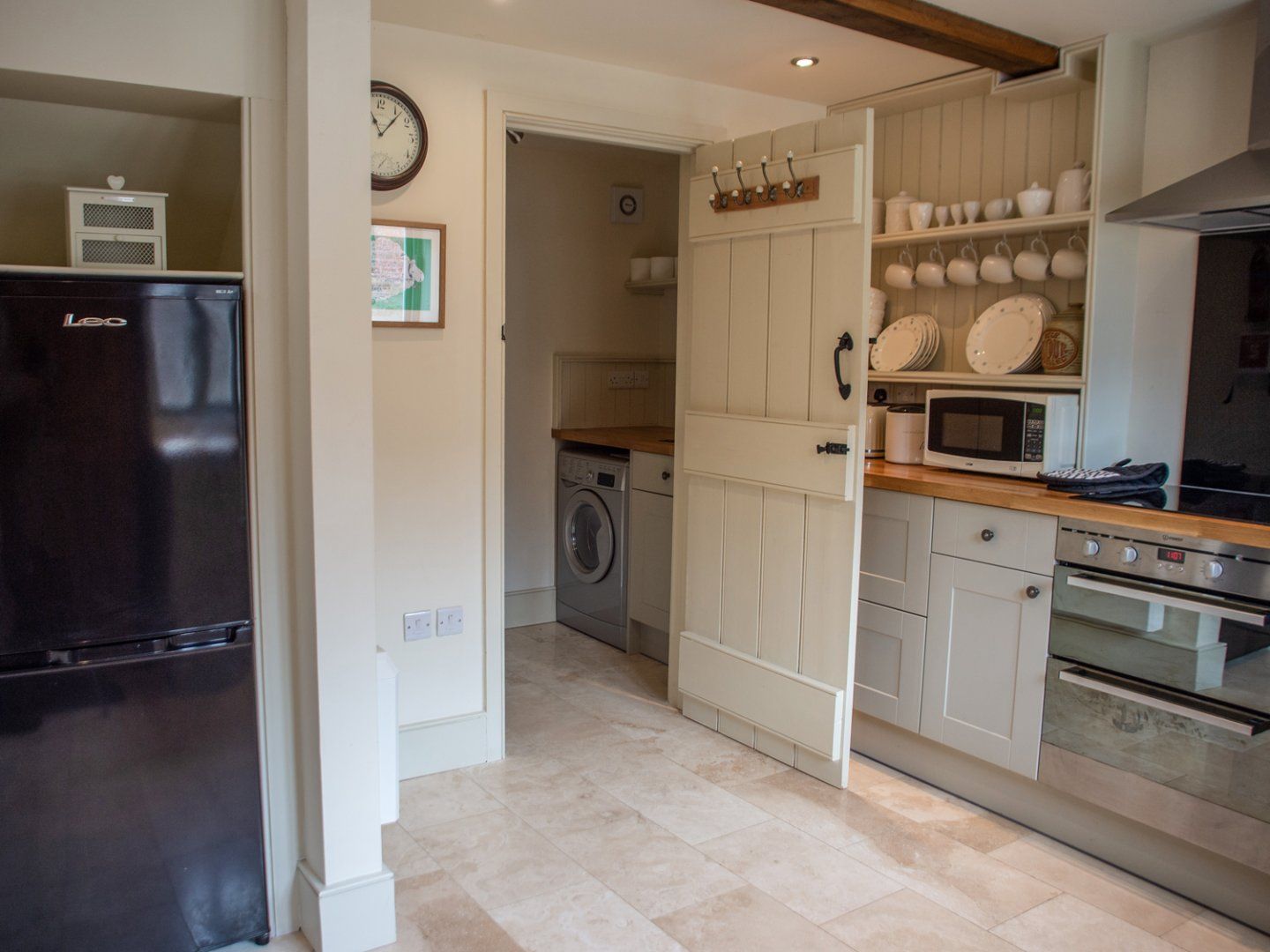 Electric panel central heating and woodburner. Electric double oven and ceramic hob, microwave, fridge/freezer, washer/dryer, dishwasher, 3 x TVs with Freeview, DVDs, WiFi with data points if required, security safe, selection of books, games and DVDs. Fuel, power and starter pack for woodburner inc. in rent. Bed linen and towels inc. in rent. Off road parking for 2 cars in courtyard, ample additional parking available which is accessed via 7 steps through outbuilding. Enclosed lawned garden to side with patio, furniture and BBQ. Bike cleaning and storage area. Sorry, no pets and no smoking. Shop and pub 3 miles. Note: Double bedroom has sloping ceiling with reduced access to one side of bed. Note: Cottage adjoins a quiet office building.