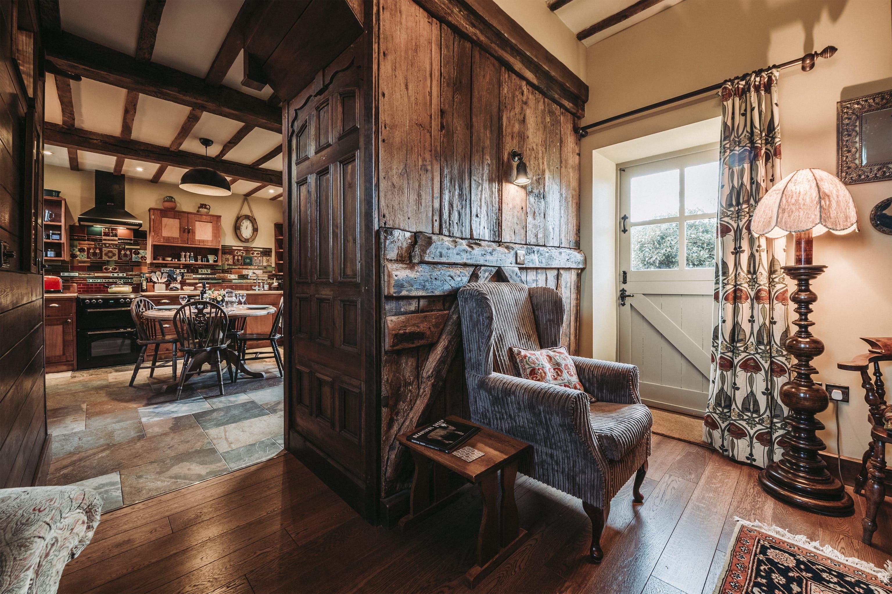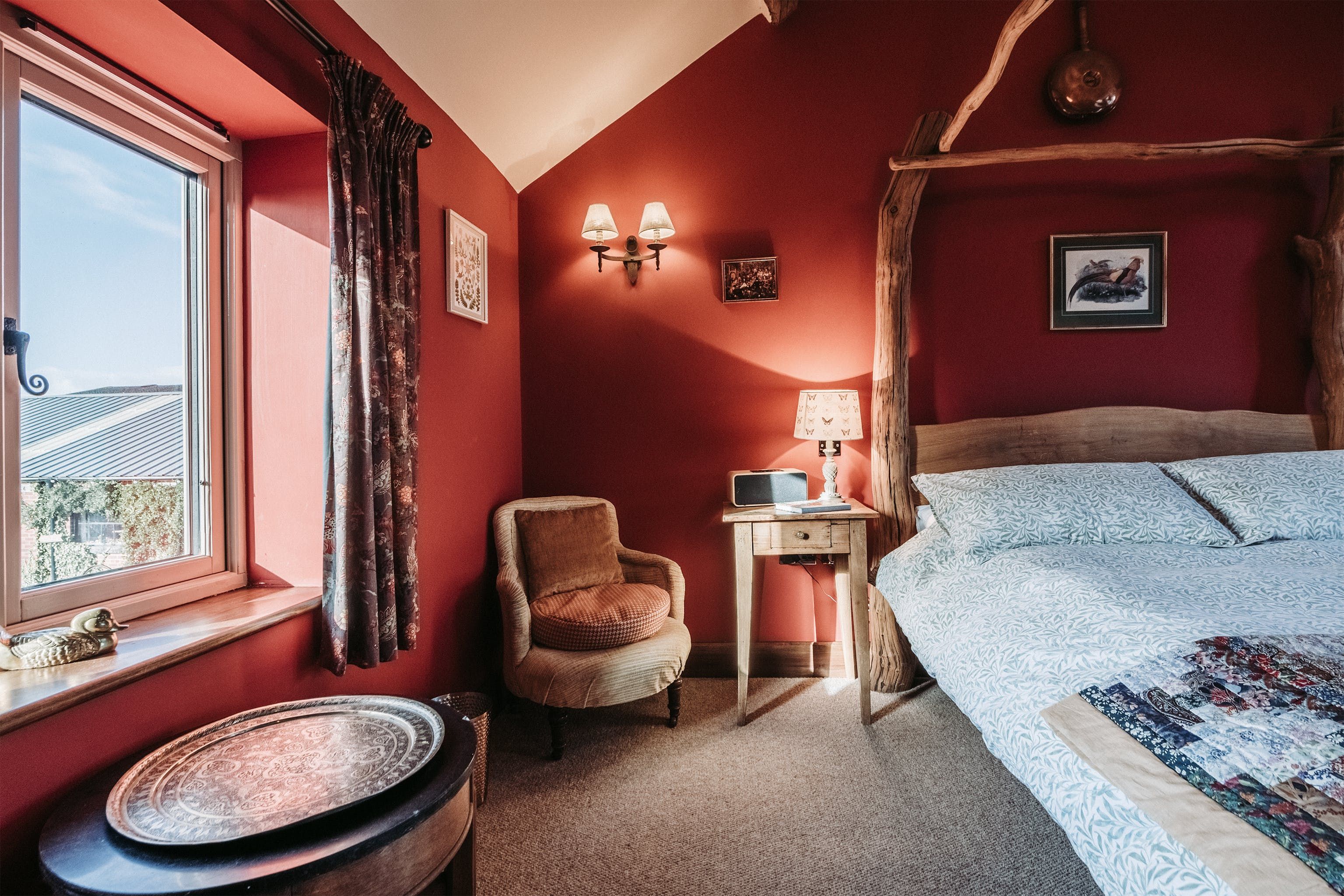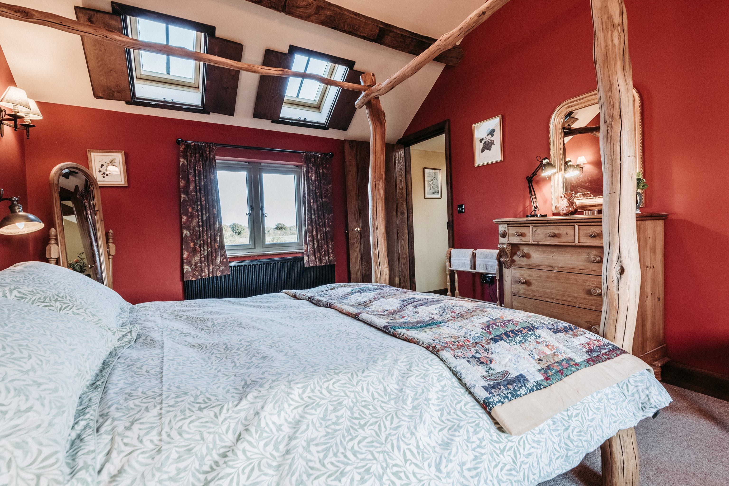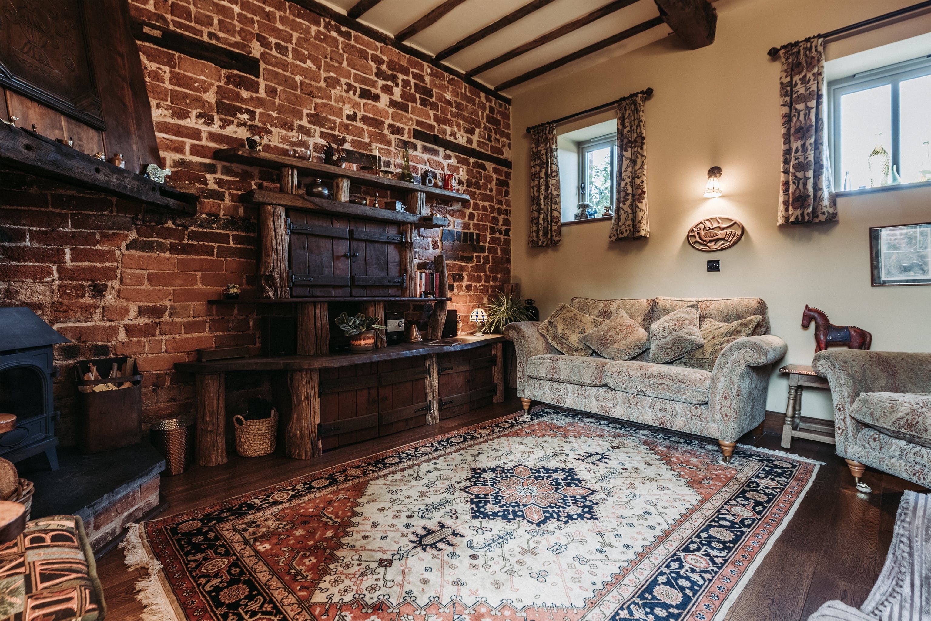 And breathe. Surrounded by open fields, enjoy the blissful Shropshire countryside from a quintessentially English cottage farmyard. Amidst rural nature, it's hard to believe you'll actually only be a ninety-minute drive away from Liverpool, Manchester and Birmingham in this secluded spot – situated a five-minute drive from the village of Maesbury. Not far away from the Welsh borders, when here it's time to restore your energy and escape the mundane for a luxury cottage retreat. Boasting characterful traditional features and bags of rustic charm – rather surprisingly the home does not compromise modern home comforts. Welcoming and cosy, the interiors reflect the countryside setting from the moment you walk through the stable-like door. With original oak beams and reclaimed wooden panelling, the open plan ground floor centres around the kitchen and lounge area. Think handcrafted redwood, a wood-burning stove as well as antique trinkets and furniture throughout. Alongside the traditional log burner, an eco-friendly, wood-pellet underfloor heating system provides constant hot water. From the kitchen, head out to the private patio area for a cup of tea in the fresh country air. Guests can also access a larger, less private, courtyard which offers a perfect sun trap from which to enjoy the summer's sun. All around the farm, you'll find peaceful places to relax and explore – over by The Orchard there's a spot for children to play freely and there's even a barbecue area in an adjacent field. Between the cottage space, additional accommodation, expansive farm grounds and surrounding fields, this dreamy location is a suitable address for group retreats or workshop weekends amongst other things.