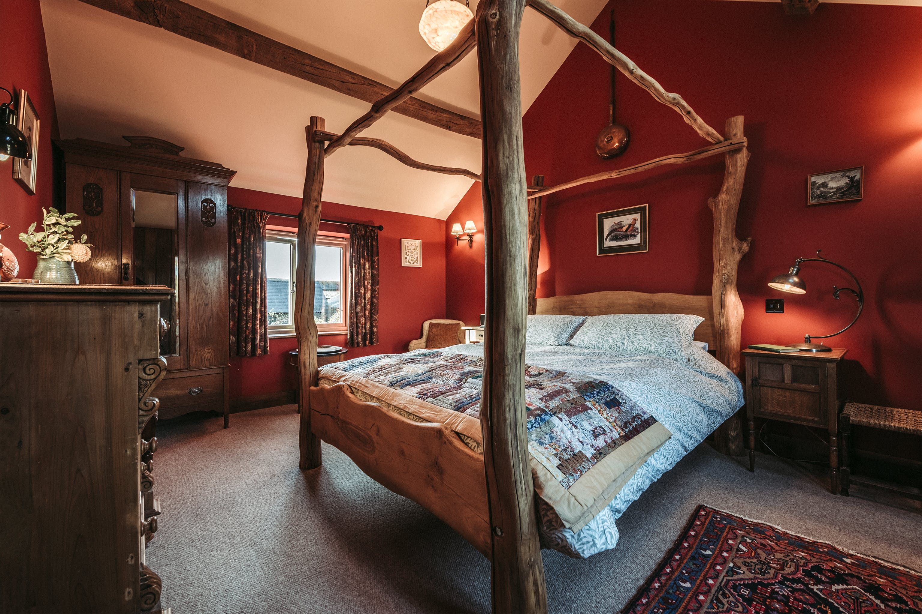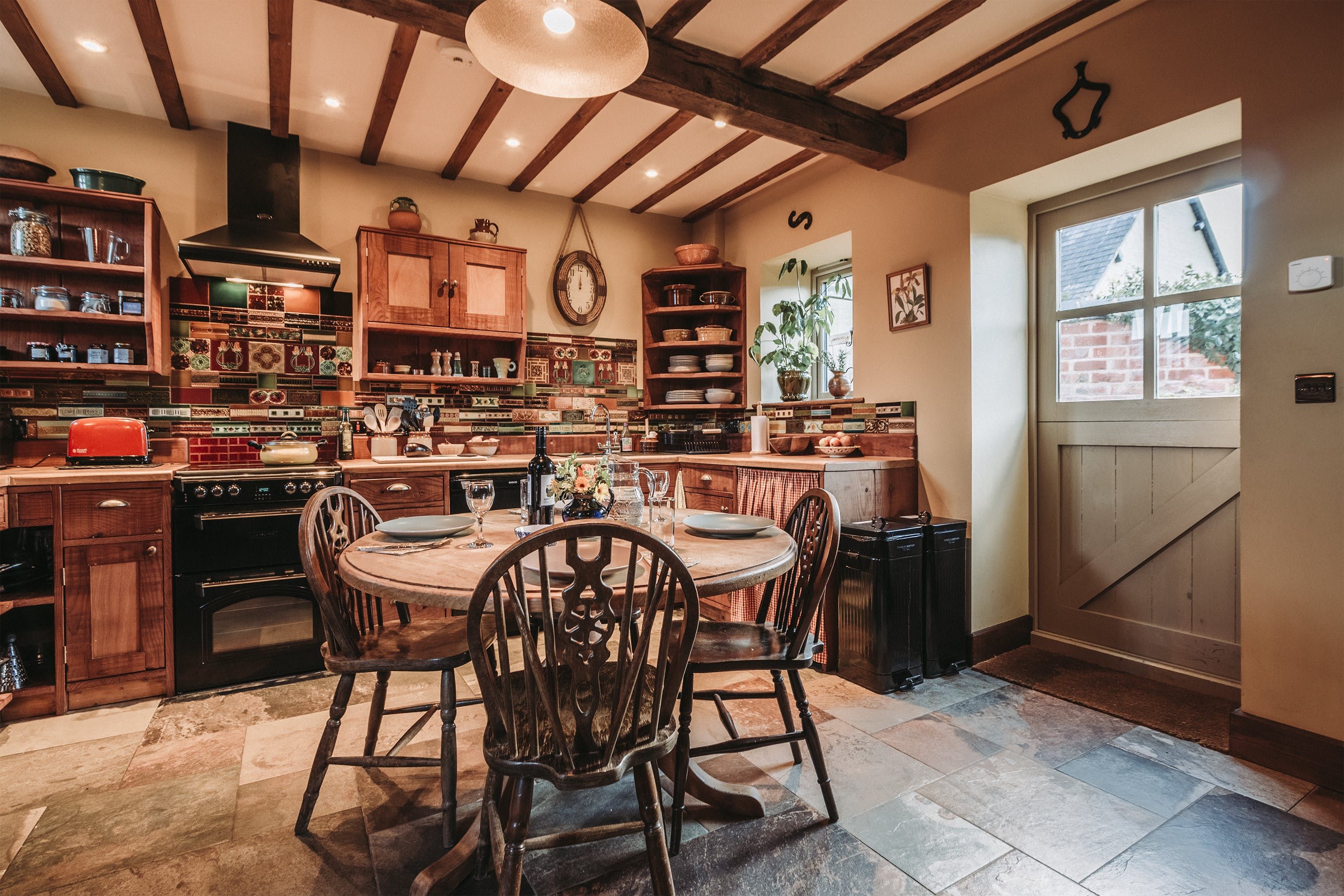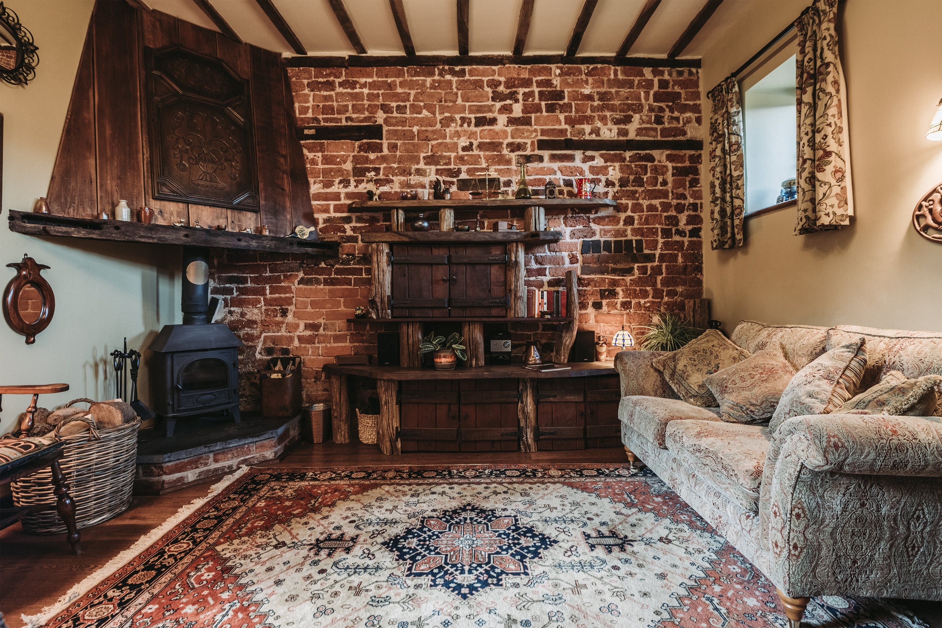 And breathe. Surrounded by open fields, enjoy the blissful Shropshire countryside from a quintessentially English cottage farmyard. Amidst rural nature, it's hard to believe you'll actually only be a ninety-minute drive away from Liverpool, Manchester and Birmingham in this secluded spot – situated a five-minute drive from the village of Maesbury. Not far away from the Welsh borders, when here it's time to restore your energy and escape the mundane for a luxury cottage retreat. Boasting characterful traditional features and bags of rustic charm – rather surprisingly the home does not compromise modern home comforts. Welcoming and cosy, the interiors reflect the countryside setting from the moment you walk through the stable-like door. With original oak beams and reclaimed wooden panelling, the open plan ground floor centres around the kitchen and lounge area. Think handcrafted redwood, a wood-burning stove as well as antique trinkets and furniture throughout. Alongside the traditional log burner, an eco-friendly, wood-pellet underfloor heating system provides constant hot water. From the kitchen, head out to the private patio area for a cup of tea in the fresh country air. Guests can also access a larger, less private, courtyard which offers a perfect sun trap from which to enjoy the summer's sun. All around the farm, you'll find peaceful places to relax and explore – over by The Orchard there's a spot for children to play freely and there's even a barbecue area in an adjacent field. Between the cottage space, additional accommodation, expansive farm grounds and surrounding fields, this dreamy location is a suitable address for group retreats or workshop weekends amongst other things.