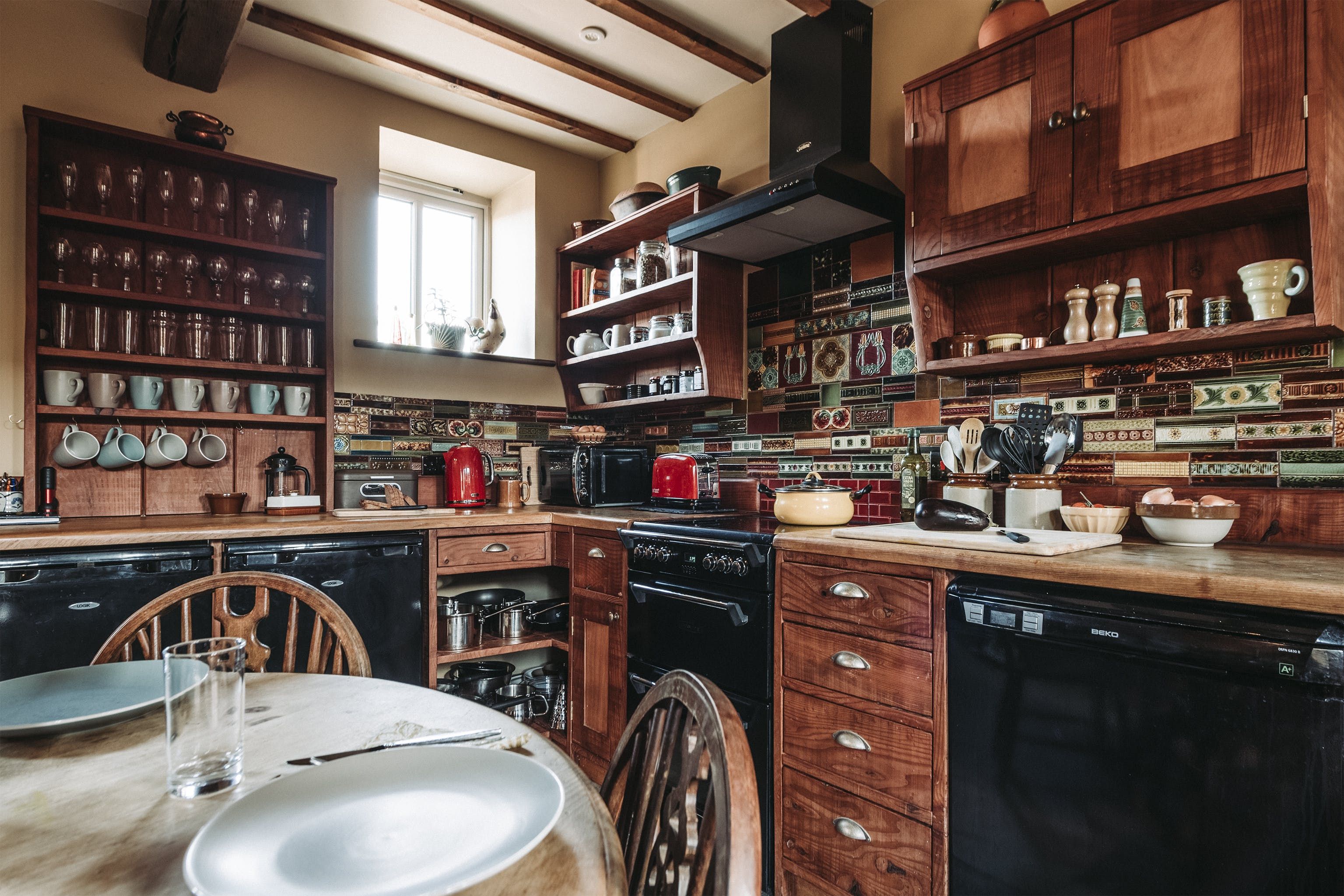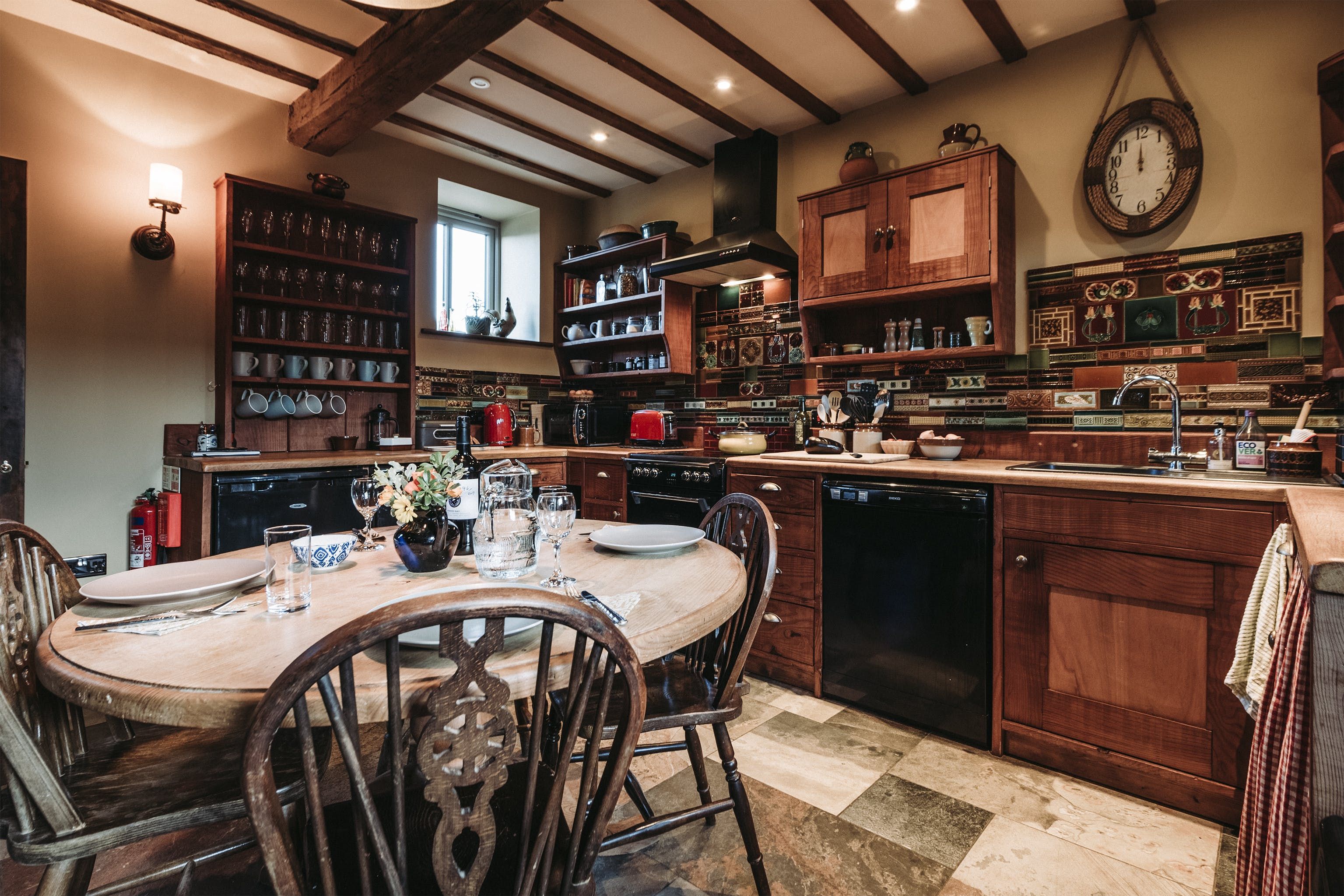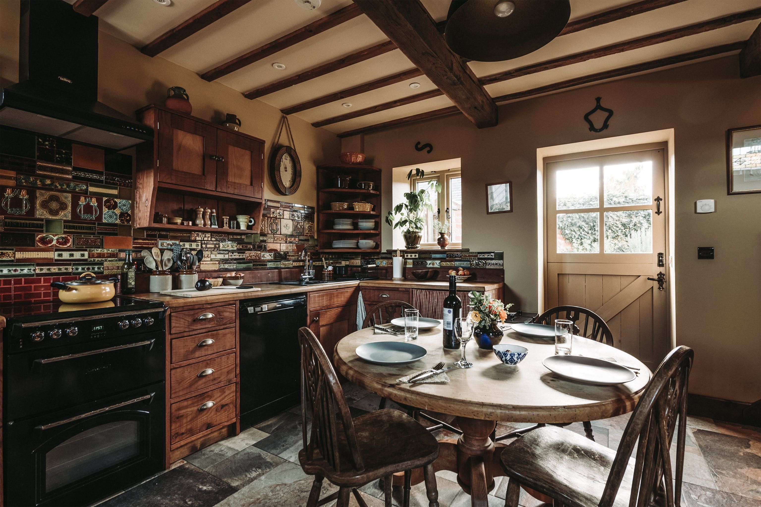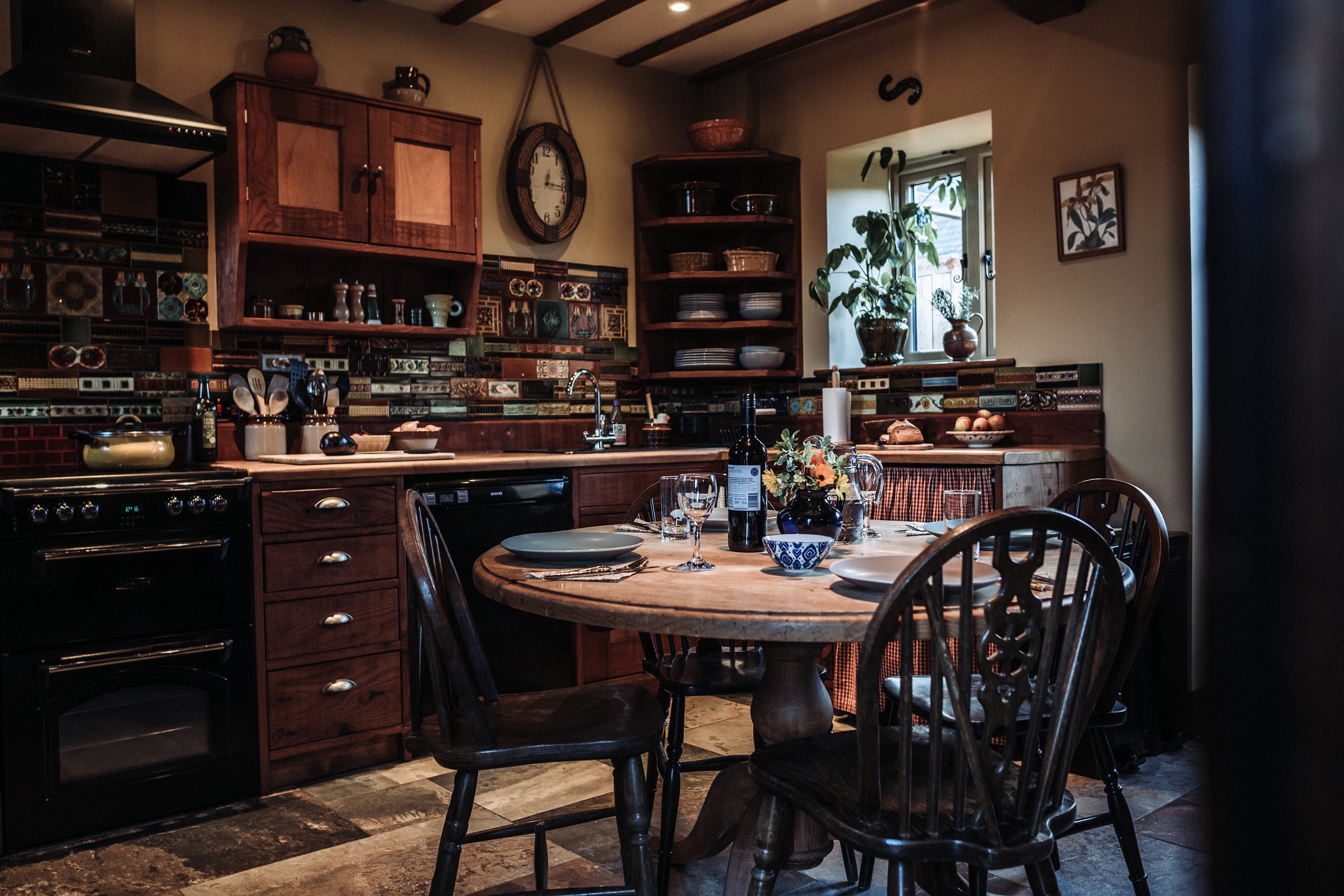 And breathe. Surrounded by open fields, enjoy the blissful Shropshire countryside from a quintessentially English cottage farmyard. Amidst rural nature, it's hard to believe you'll actually only be a ninety-minute drive away from Liverpool, Manchester and Birmingham in this secluded spot – situated a five-minute drive from the village of Maesbury. Not far away from the Welsh borders, when here it's time to restore your energy and escape the mundane for a luxury cottage retreat. Boasting characterful traditional features and bags of rustic charm – rather surprisingly the home does not compromise modern home comforts. Welcoming and cosy, the interiors reflect the countryside setting from the moment you walk through the stable-like door. With original oak beams and reclaimed wooden panelling, the open plan ground floor centres around the kitchen and lounge area. Think handcrafted redwood, a wood-burning stove as well as antique trinkets and furniture throughout. Alongside the traditional log burner, an eco-friendly, wood-pellet underfloor heating system provides constant hot water. From the kitchen, head out to the private patio area for a cup of tea in the fresh country air. Guests can also access a larger, less private, courtyard which offers a perfect sun trap from which to enjoy the summer's sun. All around the farm, you'll find peaceful places to relax and explore – over by The Orchard there's a spot for children to play freely and there's even a barbecue area in an adjacent field. Between the cottage space, additional accommodation, expansive farm grounds and surrounding fields, this dreamy location is a suitable address for group retreats or workshop weekends amongst other things.