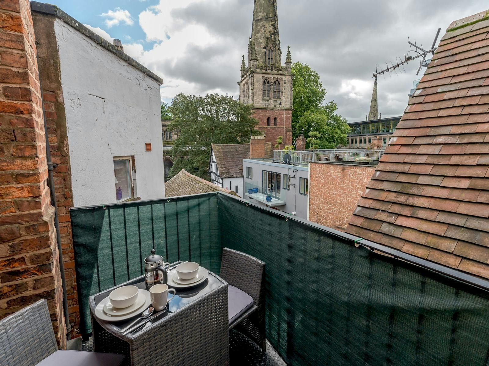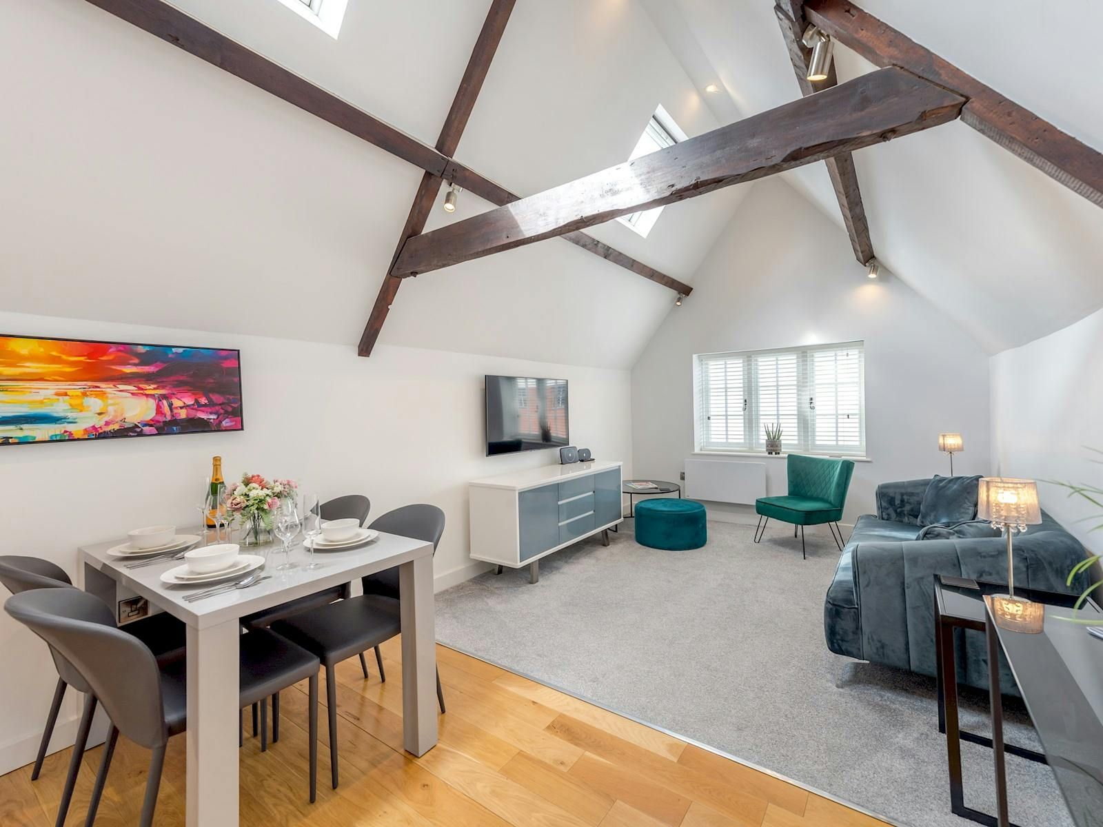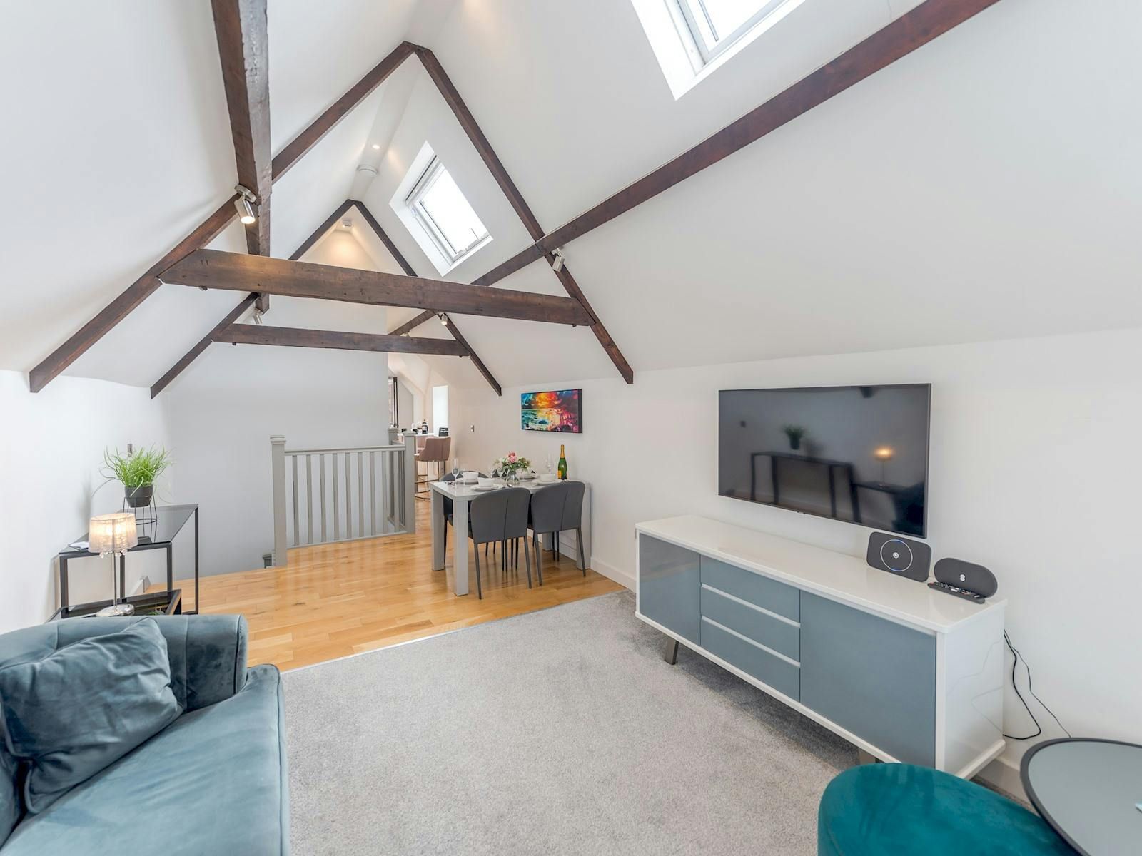 Cradled in the heart of historic Shrewsbury is an enchanting town-centre treasure radiating modern charm amid classic architecture. This duplex invokes a truly immersive experience, steeped in the allure of timber-framed buildings, monumental landmarks and ancient town walls unfolding right at your doorstep. Picture stepping out to be welcomed by winding cobbled streets humming with unique boutiques, traditional caffes and eclectic eateries. The duplex welcomes guests with a genteel panorama over Castle Street rooftops, accented by an inviting balcony overlooking St Marys's Church - perfect to unwind after a day of exploration. Dream under high ceilings, ensconced by original beamwork on the third floor while downstairs awaits two plush double bedrooms promising peaceful rest. A harmonious blend of old-world magic meets contemporary comforts ensures you will create timeless memories during your stay.