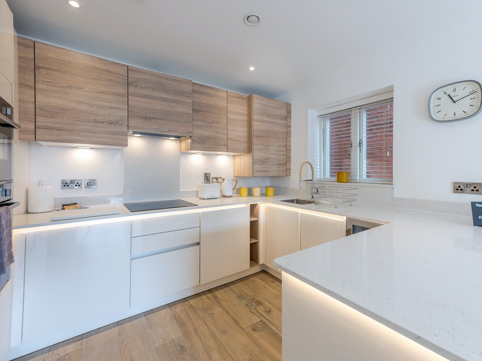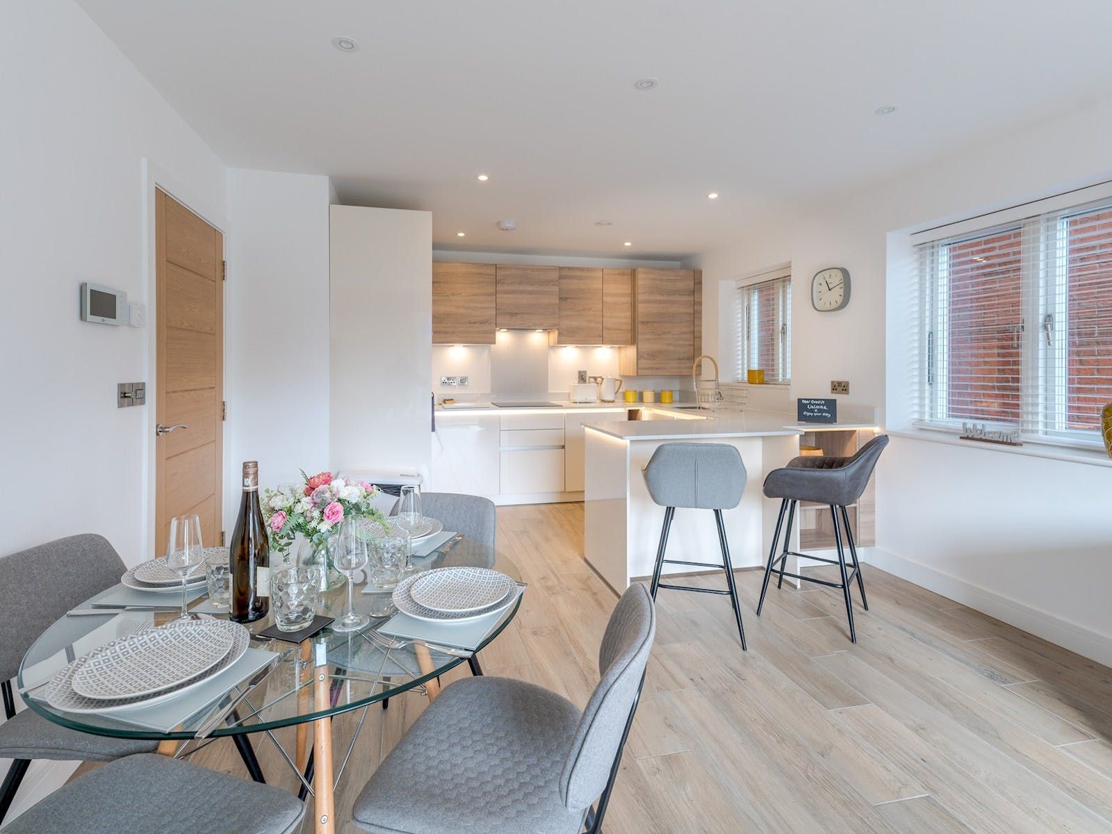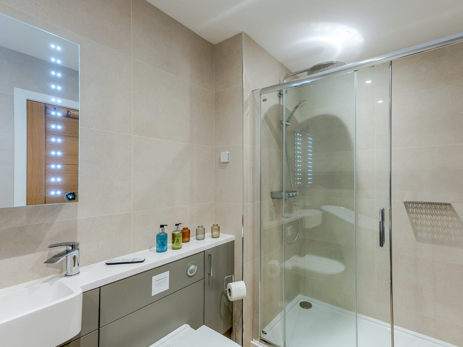Nestled in the heart of historic Shrewsbury, this elegant ground-floor apartment offers charm and comfort. A quick stroll unveils a spectrum of bars, restaurants and indie shops that cater to all tastes. Marvel at modern living within this tailored abode boasting two large bedrooms, each fitted with cosy double beds. The main suite features private bath with a rain shower, ample storage room and dressing table. Indulge in 21st century glamour; stand-alone bath fitted with TV or enjoy an additional rain shower. Unwind in an expansive open-plan setup for dining, cooking and entertaining; complete with a wine refrigerator. Stay connected with high-speed broadband for work or leisure during your stay while knowing your car is safely behind an electric gate. This apartment not only offers wide corridors for guests with mobility concerns but secure on-site parking as well.