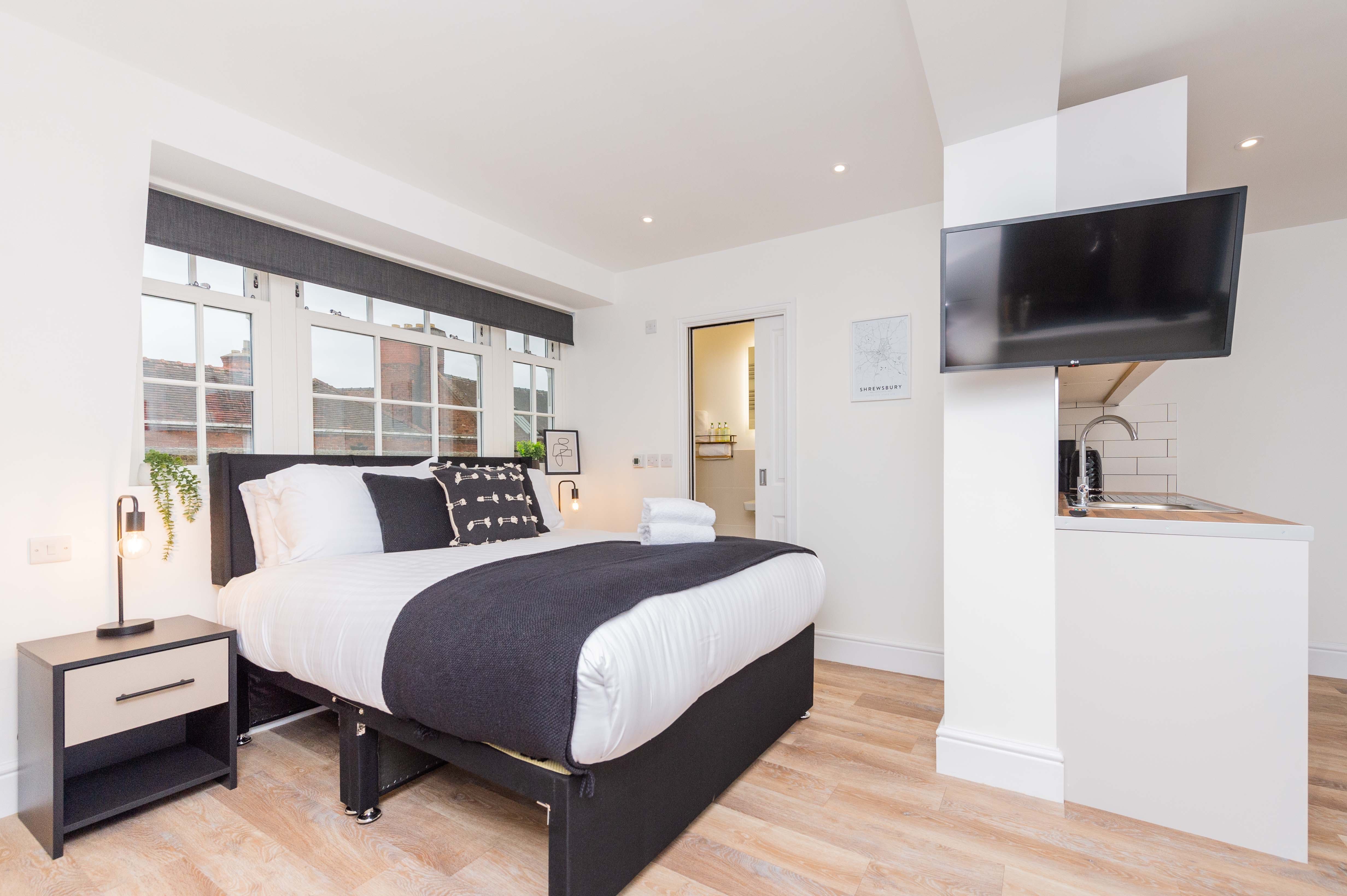 Look over Shrewsbury's rooftops from your private terrace when you stay at this penthouse apartment. Sitting in the town centre, the contemporary pad is just steps away from shops, restaurants and well-preserved examples of Shropshire's beautiful Tudor architecture.