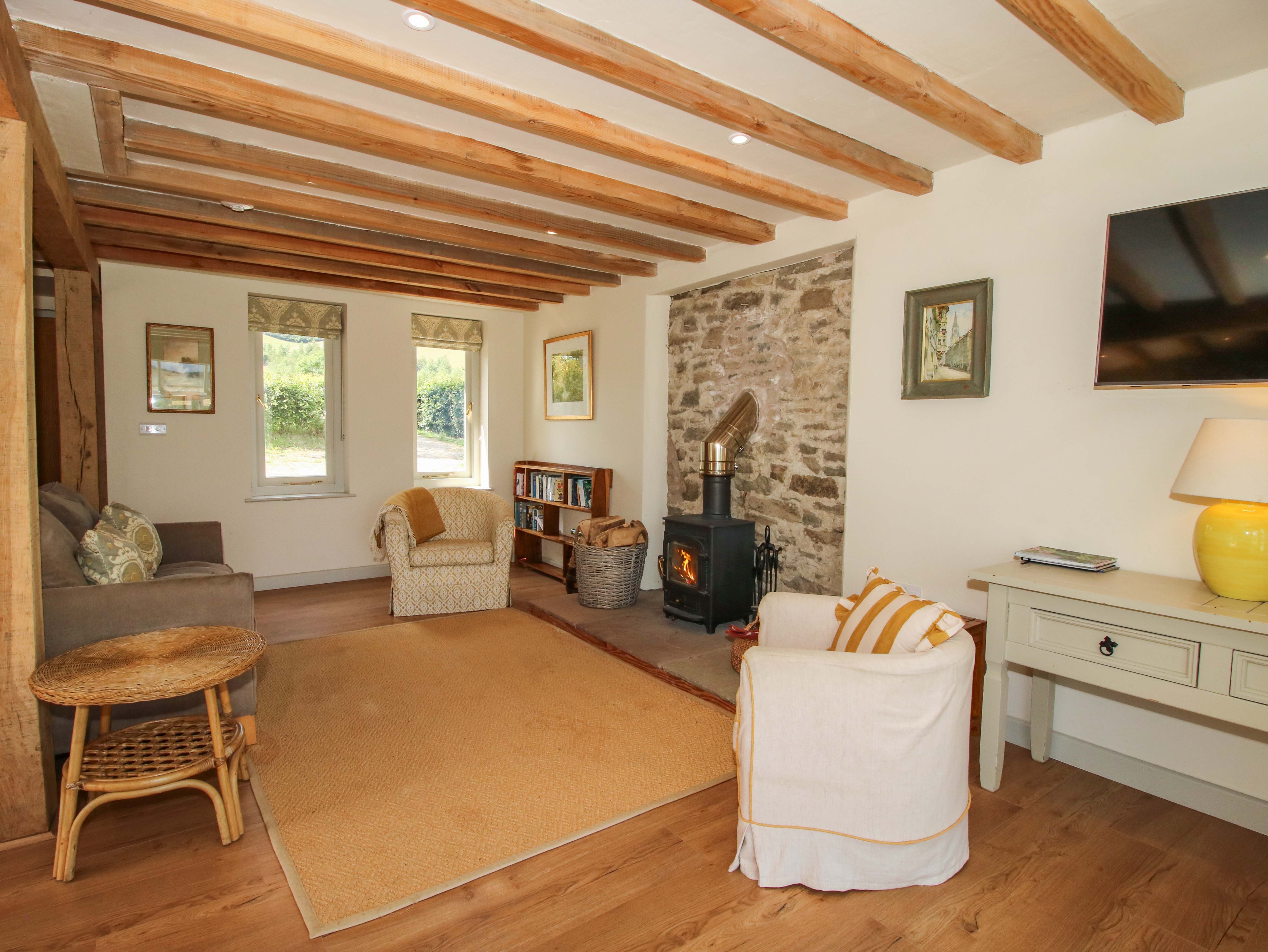 Underfloor heating with woodburning stove. Electric oven and hob, microwave, fridge, freezer, washer/dryer, dishwasher. TV,WiFi. Fuel, power and starter pack for stove inc. in rent. Bed linen and towels inc. in rent. Travel cot, highchair and stairgate available on request only. Off-road parking for three cars. Garden with lawn, patio, furniture and hot tub. Sorry, no smoking. Shop 3.8 miles, pub 2.8 miles. Note: Minimum of 3 nights for short breaks, arrivals only on Friday Monday please. Please note: there is no mobile telephone reception in the area. Note: The phone signal can be quite poor in this area, however there is WIFI in property for you to use.Note: Electric car charging is not permissible at the property. Nearest charge point is at Craven Arms , approximately 20 minutes away