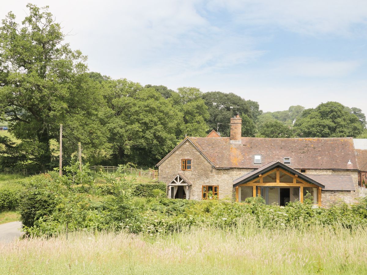 A traditional detached cottage near Craven Arms in Shropshire. The cottage has six bedrooms consisting of a four poster with four poster super king-size with 49'' TV, a king-size with TV and en-suite shower, basin and WC, a ground floor double with en-suite shower, basin and WC, a ground floor king-size (can be twin on request) and a twin, along with a bathroom with Jacuzzi bath, separate shower and WC, and a ground floor wet room - plus a separate studio with one super king-size bedroom with TV, kitchenette and en-suite shower, basin and WC. The property can sleep 12 people in total. It also has a kitchen, dining room with woodburner and sitting room. Outside there is a lawned and patio garden with furniture and a private hot tub. A luxurious cottage in a stunning location.