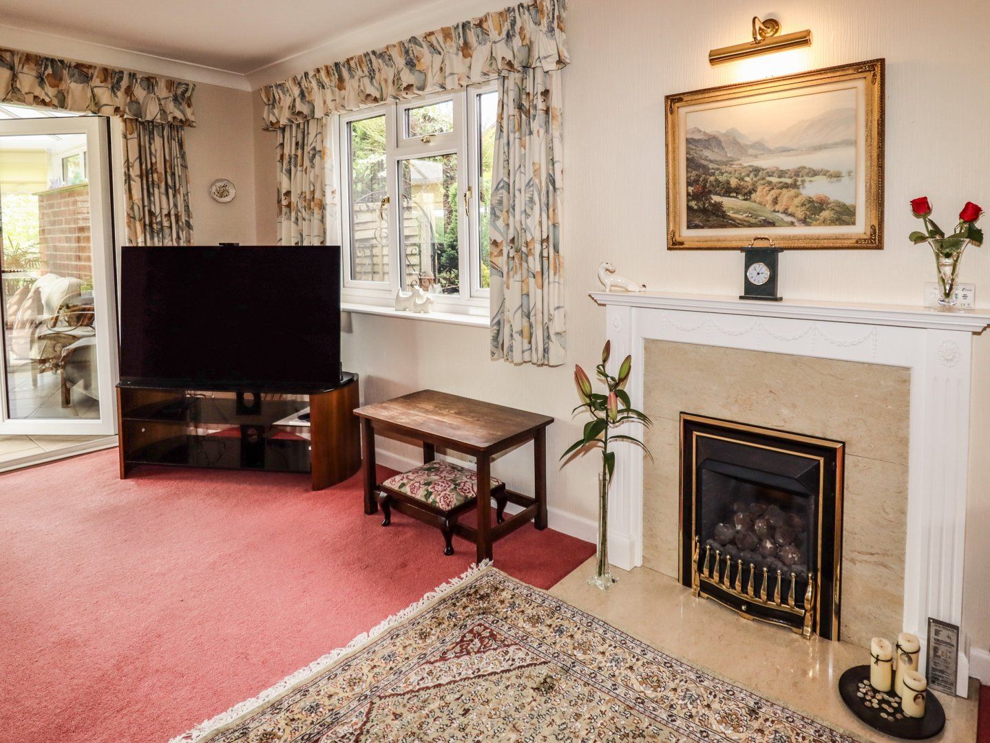 Accomodation Details All ground floor. Two bedrooms: 1 x King Size with TV and en-suite shower, basin and WC, 1 x twin. Bathroom with TV and Bluetooth Speakers, bath, dimmable lights, separate large shower, basin and WC. Kitchen with breakfast table. Dining room. Sitting room with gas coal-effect fire, 55-inch Smart TV with access to Sky and Netflix. Conservatory.