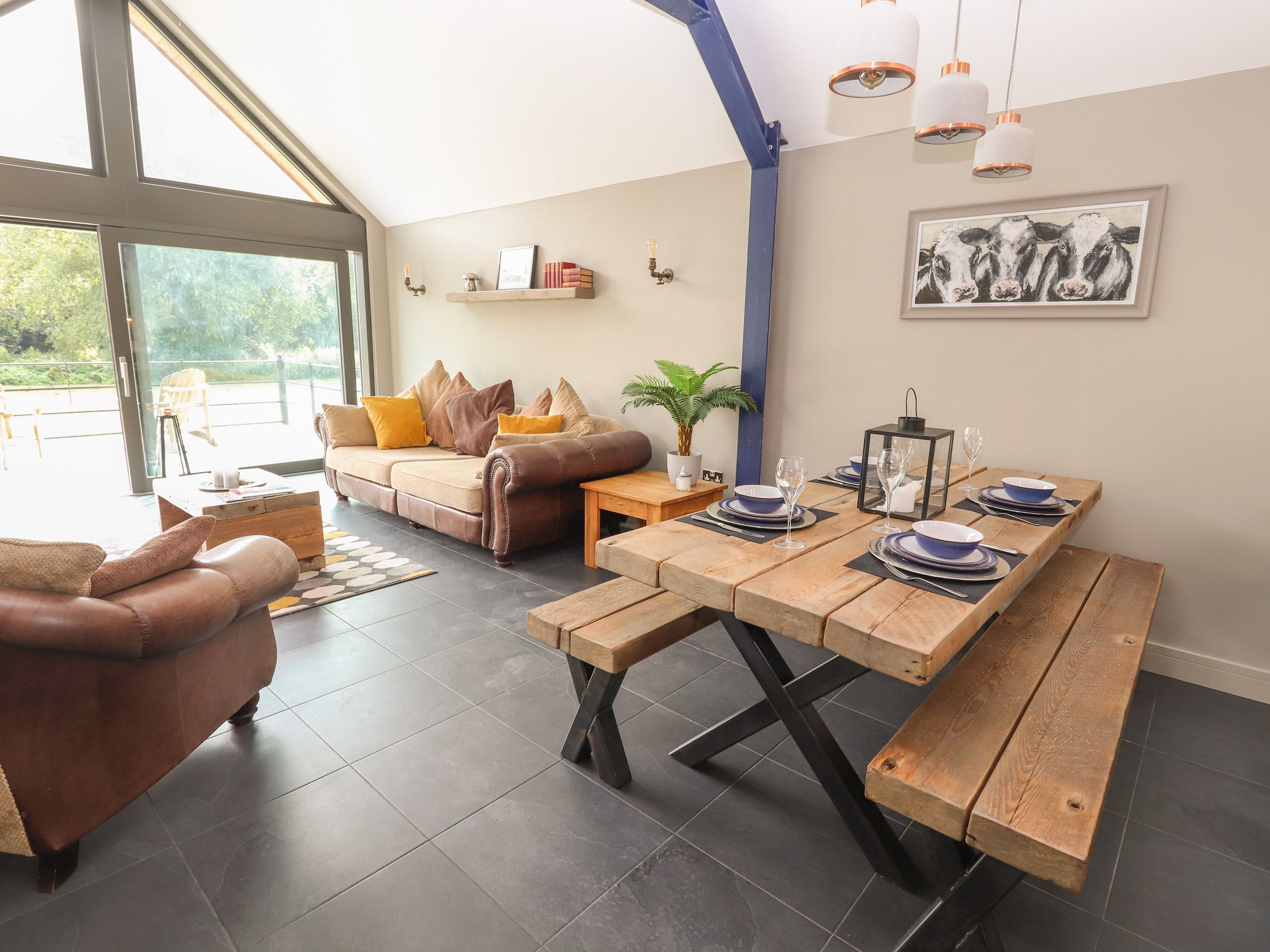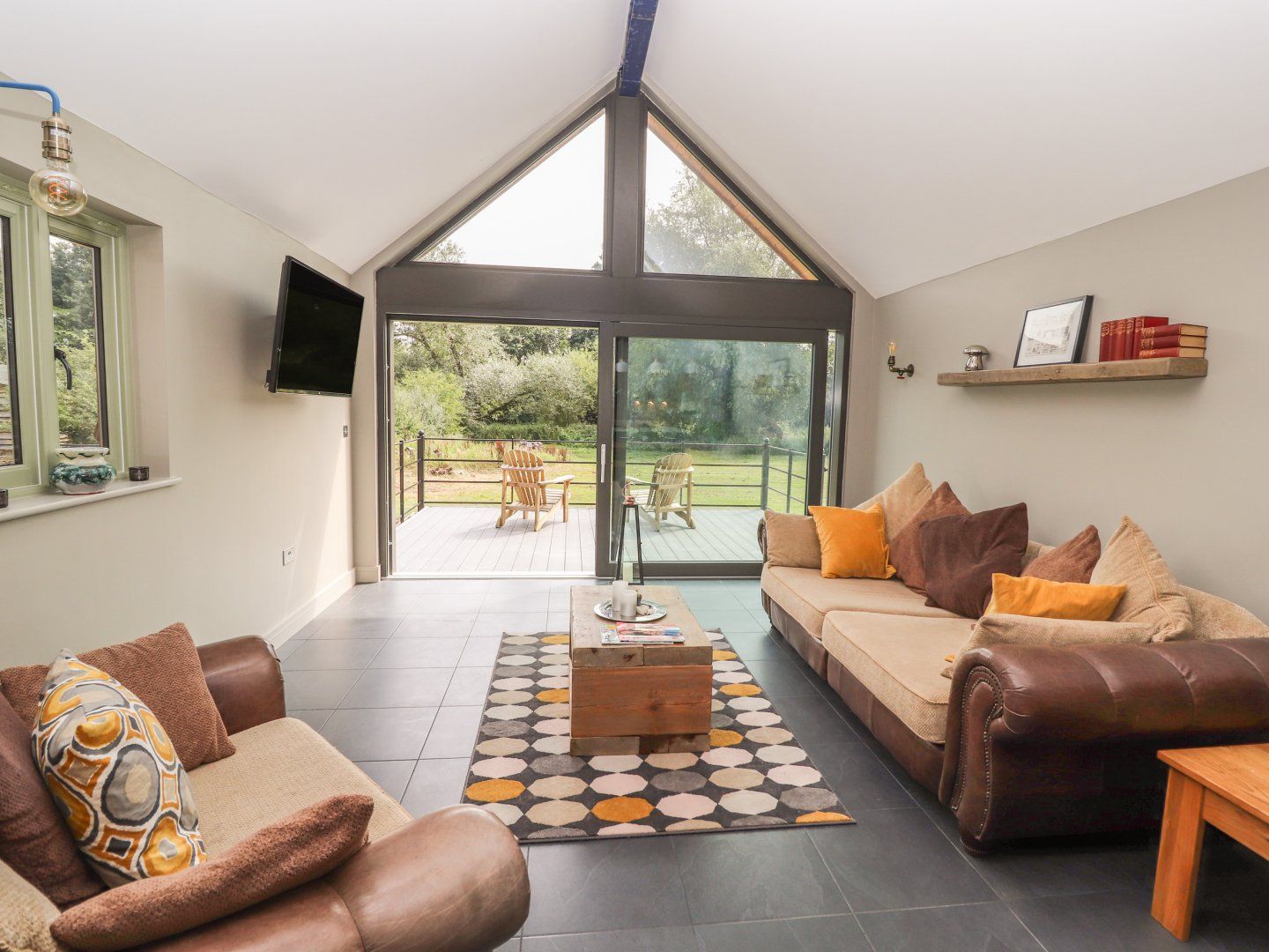 Amenities Oil underfloor heating. Electric oven, induction hob, microwave, under-counter fridge with ice box, separate integrated fridge freezer, Nespresso coffee machine, dishwasher, washing machine, 3 x Smart TV and WiFi. Fuel and power inc. in rent. Bed linen and towels inc. in rent. Ample off-road parking. Two well-behaved pets welcome. Enclosed patio and decking with picnic bench, furniture and barbecue. Shared large meadow and lawn area. Sorry, no smoking. Shop and pub 1.9 miles. Note: Only children over 10 can use the twin bedroom due to the open-tread spiral staircase. Note: Due to the close proximity of livestock, dogs must be kept under strict control at all times. Note: The River Strine runs through the owners' land, children to be supervised