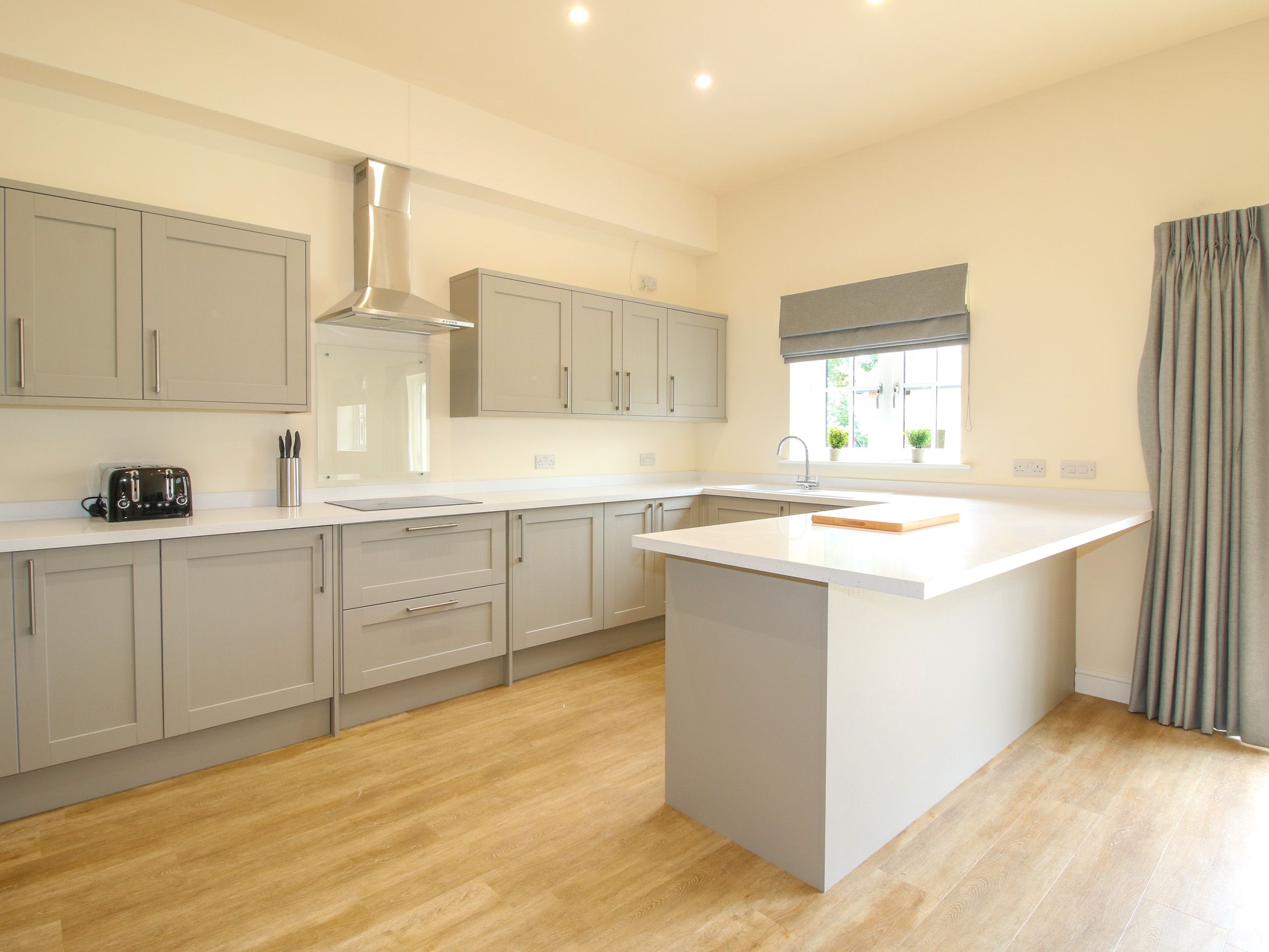 Four bedrooms: 1 x king-size with en-suite walk-in shower, basin, heated towel rail, and WC, 1 x king-size, 1 x twin, 1 x ground-floor king-size with access to Jack-and-Jill wet room. Bathroom with bath, walk-in shower, basin, and WC. Ground-floor Jack-and-Jill wet room with walk-in shower, basin, and WC. Kitchen/diner. Sitting room