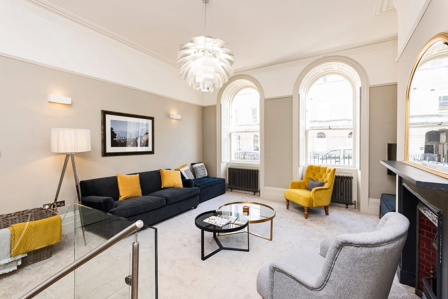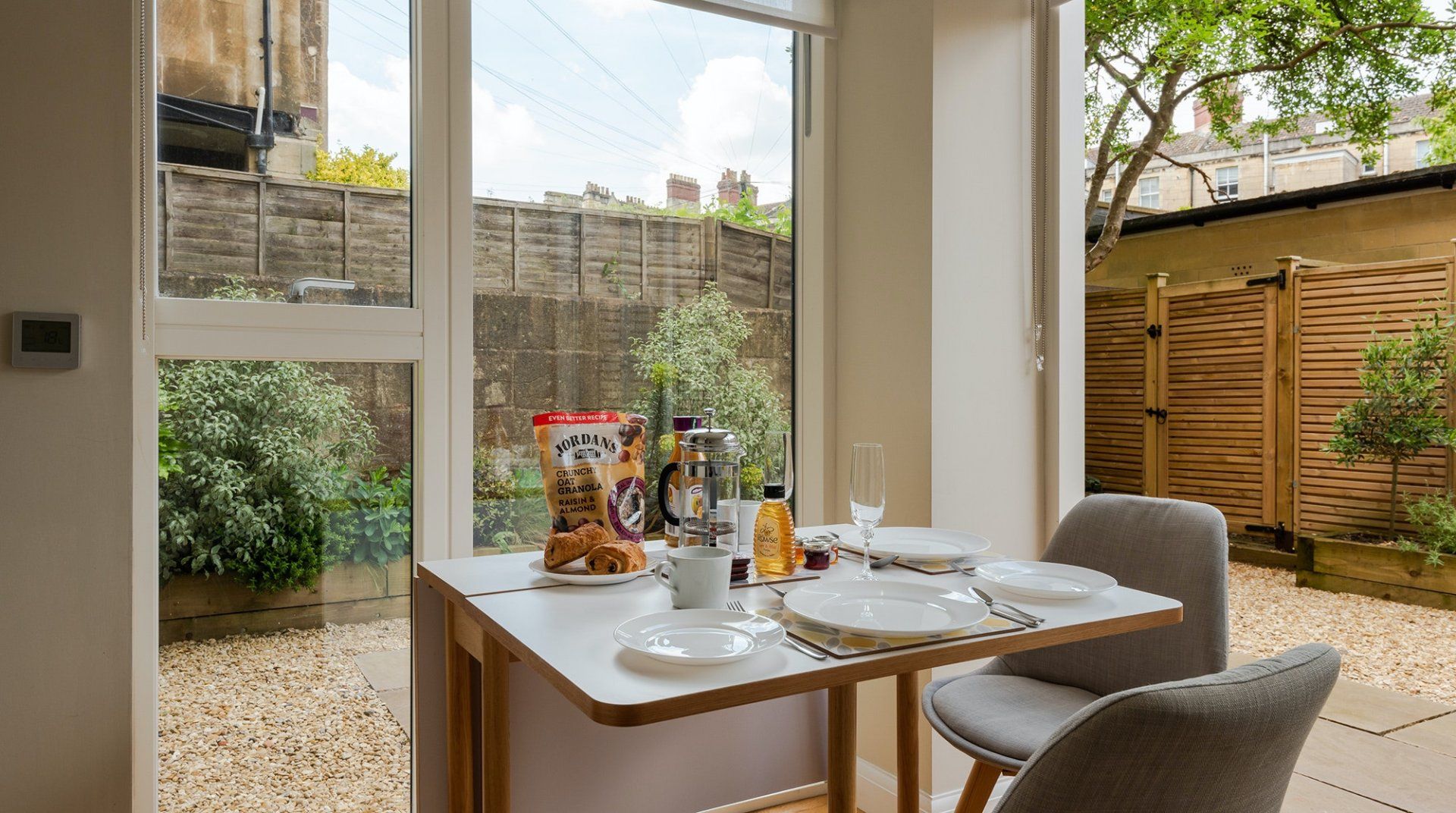 While this beautiful garden apartment is right in the middle of the city, you wouldn’t know it. Wonderfully peaceful thanks to its private entrance away from the main street and its proximity to Henrietta Park (a one-minute walk), there’s a calm serenity to this boutique Georgian home. You can tell that it’s been worked on by an award-winning architectural firm and that your hosts, Silvia and Sohrab, have created something truly special here – the upstairs living area is full of original features (like the fireplace and arched windows) while the decor is contemporary and chic. Make yourself comfortable on the sofa as you people-watch with a glass of wine, or catch up on work at the cosy desk space – better yet, peruse the tourist leaflets provided and plan the next day’s activities. Descend the bespoke Italian staircase and you’ll find yourself in the sleek kitchen where your hosts have provided a continental breakfast. Enjoy your pastries and cereal in the glass-framed dining room or outside in the private garden while you catch some rays. When it comes to relaxation, your hosts have gone above and beyond by dressing the luxury beds in Egyptian cotton sheets (there’s even a pillow selection between soft or medium-firm) and they’re more than happy to arrange a spa day for you at the nearby five-star hotel. When you’re not soaking up the refined atmosphere of your classy pad, go out and explore your surroundings. Cross Pulteney Bridge over the Avon (a three-minute walk), see where Vanity Fair was filmed at Laura Place Fountain (a two-minute walk) visit Bath Abbey (a seven-minute walk) and stroll around the Royal Crescent (a fifteen-minute walk). Factor in the countless restaurants and shops on your front step and you’ve got everything you need for a blissful Bath stay.