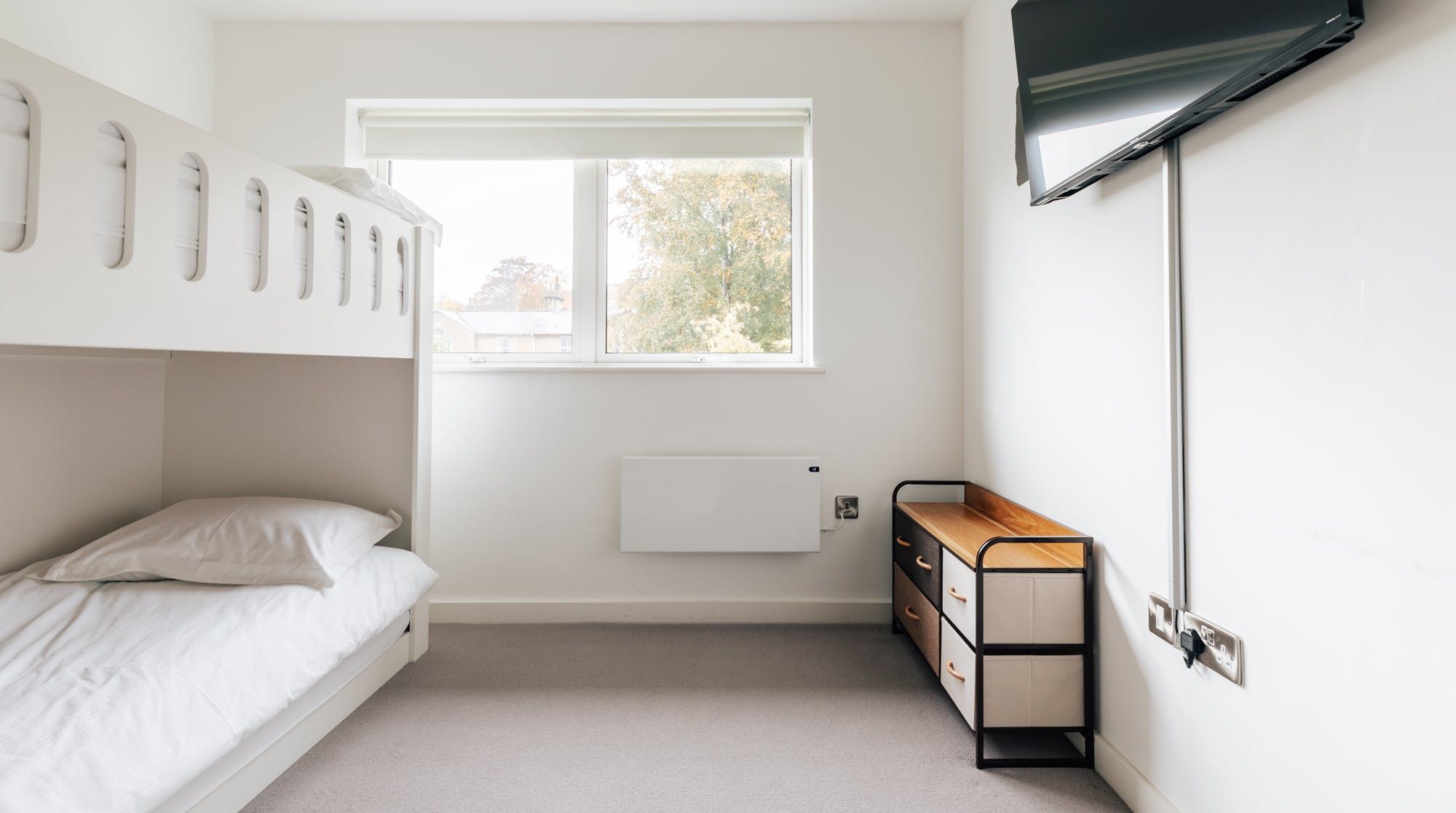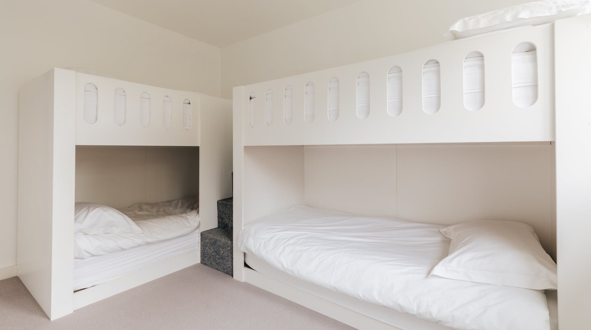 Children will love the bunk beds in the second bedroom – sure to make nighttime an adventure every time – while the elegantly pared-back main bedroom is a comfortable haven of rest with its king-size bed.