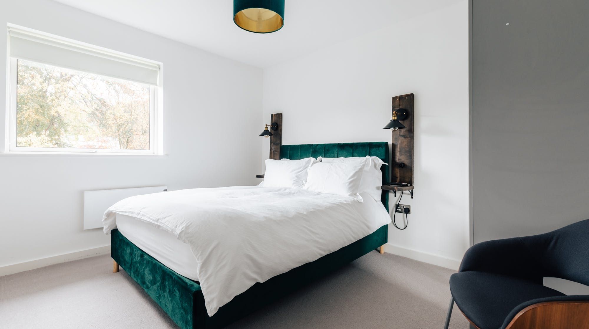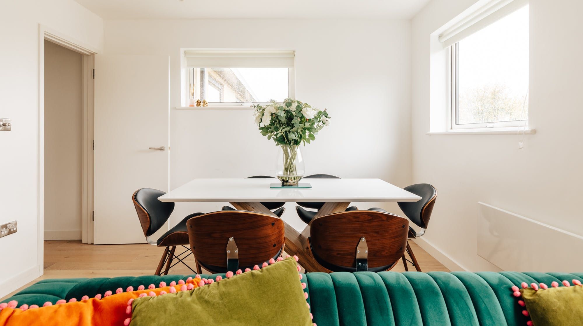 Inside, wood floors, bright white walls and bold pops of jewel tones in the chic furnishings create an instantly eye-catching welcome. We love the ruby and emerald hues of the sofas – the perfect spots to unwind with a glass of bubbly after a day of seeing the sights – while the dining table beckons sociable dinners with loved ones when you’re not out sampling the local food scene.