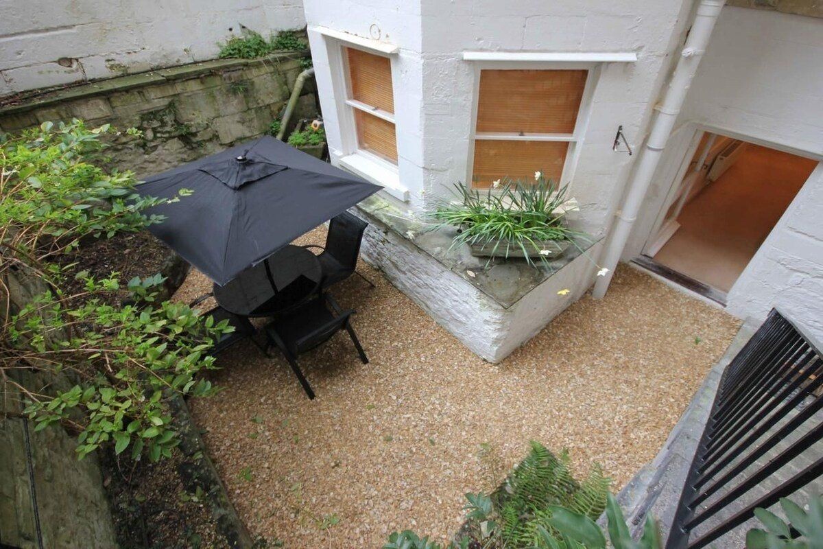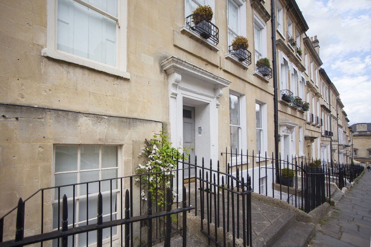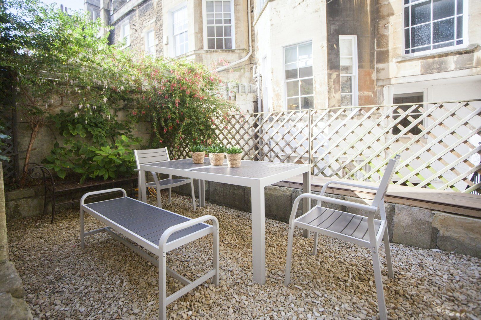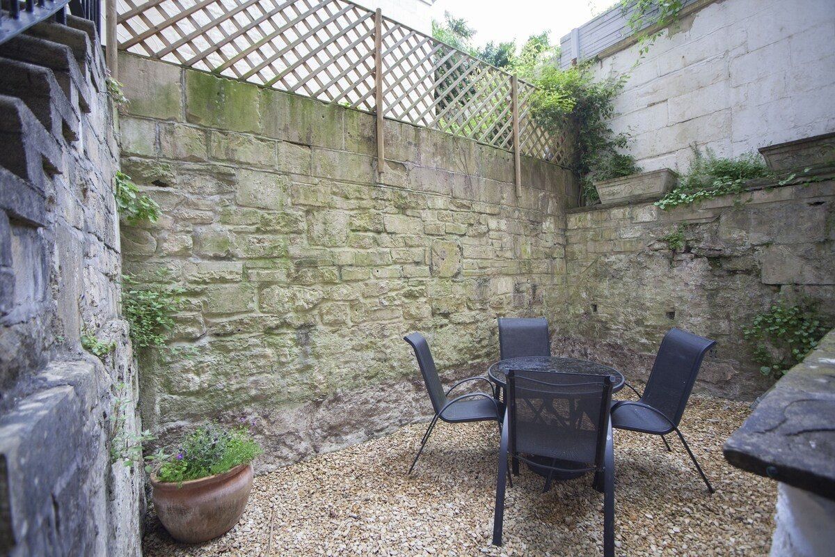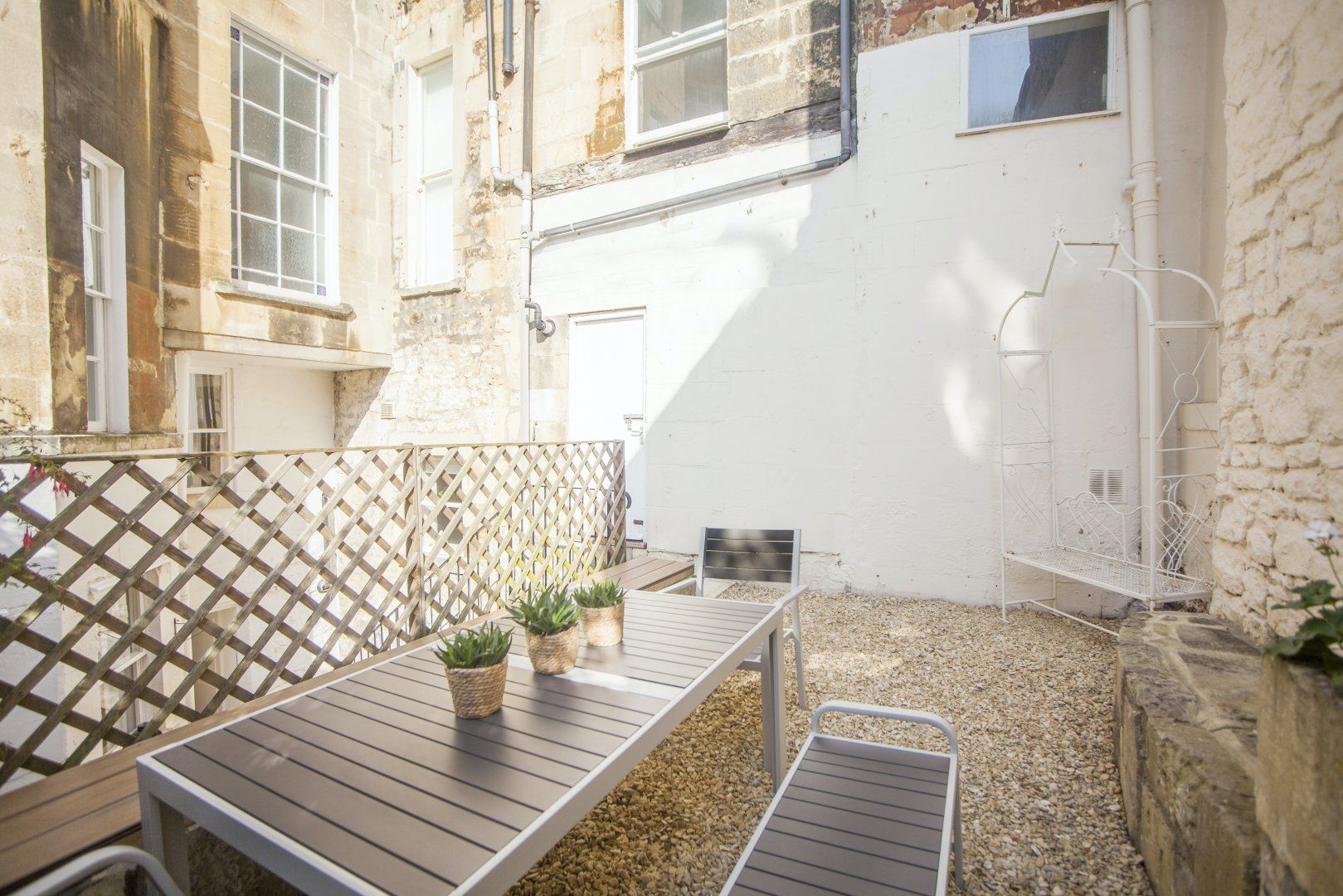 With its light-soaked cream sofas, white framed walls, and two-tiered courtyard garden, this palatial home is for relaxing in style. It's a Georgian house situated in one of Bath's most desirable neighbourhoods – perfect for wandering the cobbled streets, browsing boutiques, and visiting the Royal Crescent – an easy fifteen-minute walk away. Exuding understated elegance, you'll swoon over the traditional touches, such as the floor-to-ceiling sash windows, marble fireplace, and high ceilings. After a day exploring Bath’s cultural attractions, relax in the grand sitting room, or socialise around the dining table. With a calming palette of graceful greens and soft blues, the bedrooms are charming, cosy spaces that will make you feel well-rested. Come evening, whip up a delicious meal in the sleek kitchen benefitting from playful checkered tile flooring, while catching up with friends. Enjoy alfresco dining on the balcony, or bookmark a delightful day with sundown drinks in the stone courtyard below.