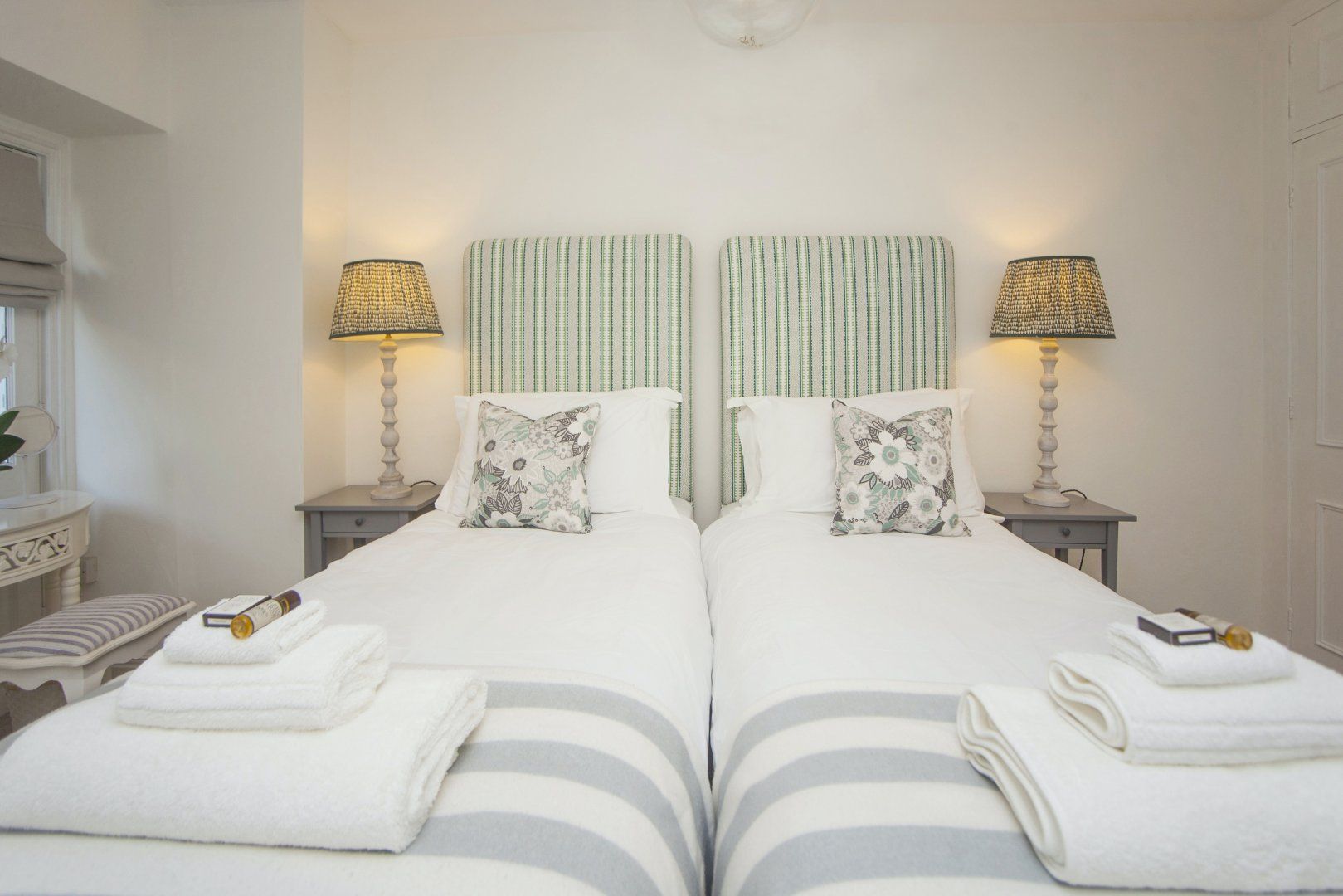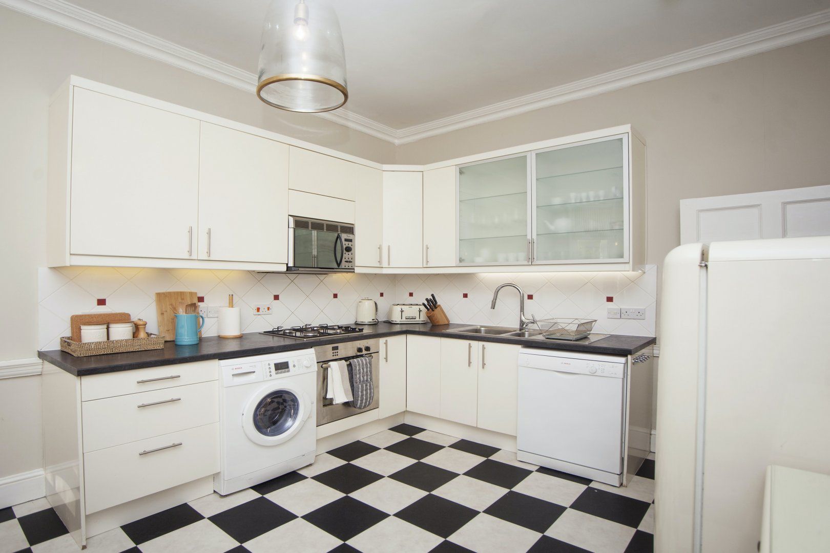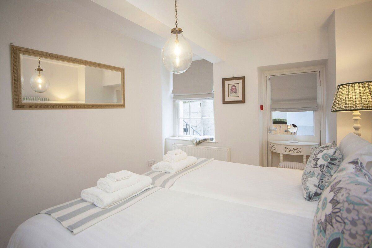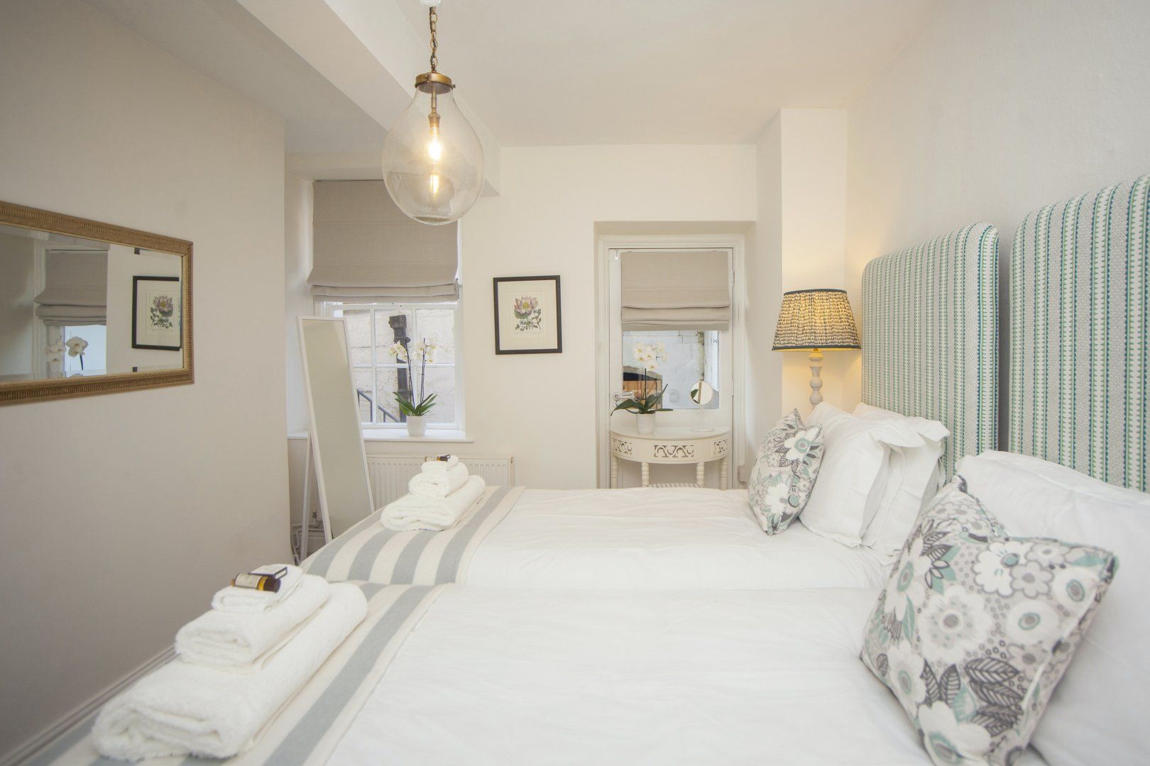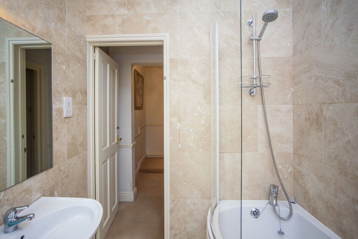 With its light-soaked cream sofas, white framed walls, and two-tiered courtyard garden, this palatial home is for relaxing in style. It's a Georgian house situated in one of Bath's most desirable neighbourhoods – perfect for wandering the cobbled streets, browsing boutiques, and visiting the Royal Crescent – an easy fifteen-minute walk away. Exuding understated elegance, you'll swoon over the traditional touches, such as the floor-to-ceiling sash windows, marble fireplace, and high ceilings. After a day exploring Bath’s cultural attractions, relax in the grand sitting room, or socialise around the dining table. With a calming palette of graceful greens and soft blues, the bedrooms are charming, cosy spaces that will make you feel well-rested. Come evening, whip up a delicious meal in the sleek kitchen benefitting from playful checkered tile flooring, while catching up with friends. Enjoy alfresco dining on the balcony, or bookmark a delightful day with sundown drinks in the stone courtyard below.