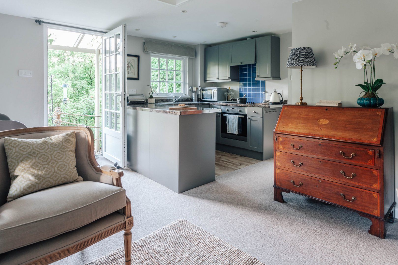 Even before you enter, it’s clear that there’s something special about Faerie World. The high position of the cottage gives a heavenly view of the stream below, and you can hear the babbling water from the terrace, which is itself surrounded by flowers, and makes you feel like you’re in a fairytale. Once inside, the living room and bedroom don’t disappoint. The bedroom in particular, with its Farrow & Ball colours, stands out. The kitchen doesn’t have the same aesthetic charm, but that’s a small gripe, and shouldn't give you any cause for concern.