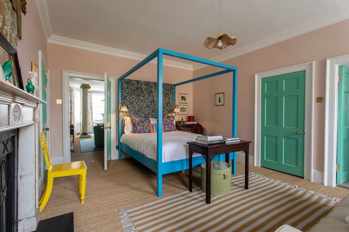 Traditional Georgian elegance blends seamlessly with contemporary style at this cosy home. There's more than a hint of whimsy in the colourful furnishings, but original features like the bay window and fireplaces ensure this home still feels historic. More surprising for such a central apartment are the views – you can look out over Bath's quaint rooftops and spires while breakfasting. Located in a quiet terrace just minutes from The Jane Austen Centre and Royal Crescent, this home is the perfect choice if you're looking to immerse yourself in Bath's history.