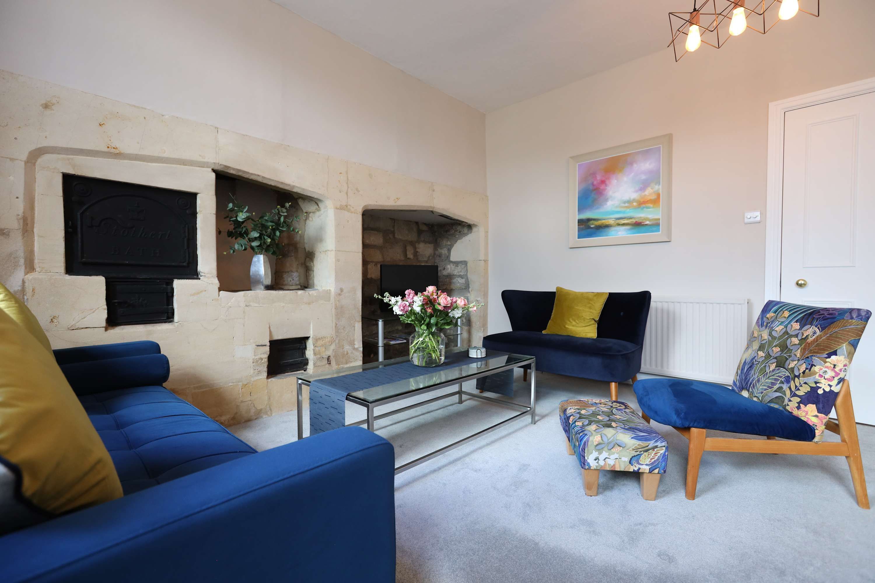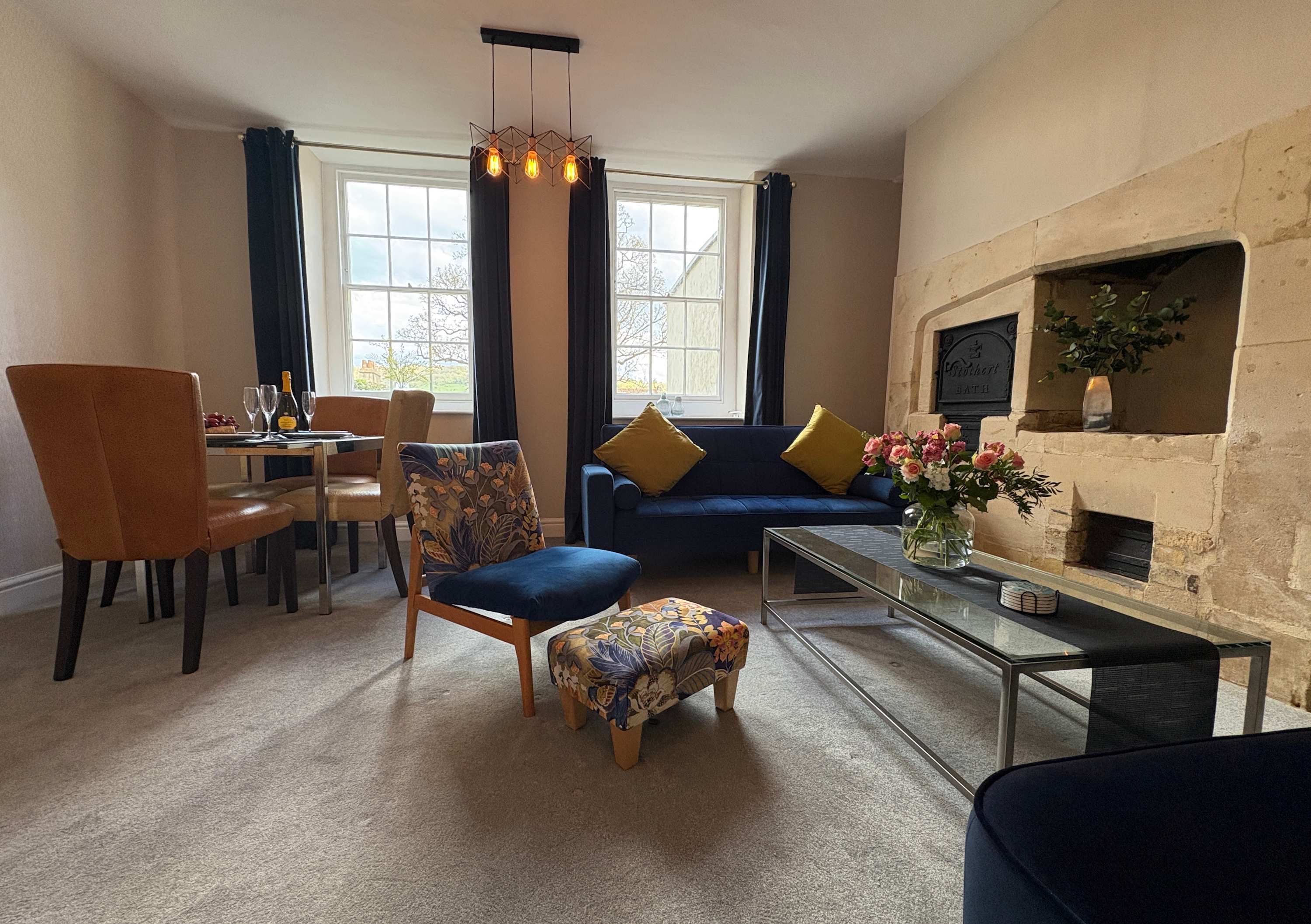 This home makes it easy to soak up the historic charm of Bath. Outside, you can wind your way along the pretty streets to the Abbey, the Roman Baths, artisan shops, cafes and restaurants. It’s also a wonderful base for exploring the Somerset countryside with beautiful hiking trails within easy reach. It’s worth noting there are stairs leading up to the apartment, but once inside, you’ll find warmth, comfort and plenty of character. It also works well for couples or families travelling with a child, thanks to the sofa bed in the living room.