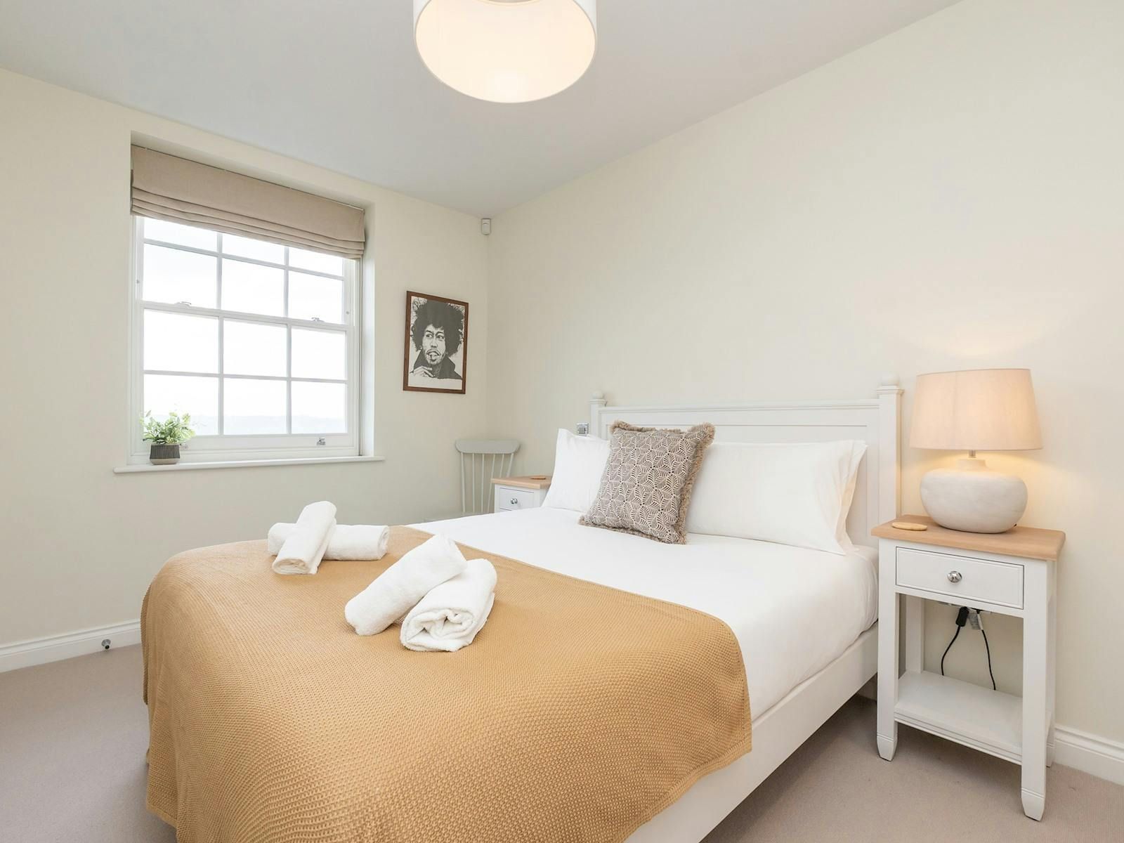 Perched above Bath in the elegant Lansdown quarter, this bright and refined apartment offers a luxurious escape just moments from the city’s Georgian grandeur. Soak up skyline views through floor-to-ceiling windows, or sip your morning coffee in six acres of peaceful communal gardens. Inside, stylish interiors flow through the open-plan kitchen and lounge, while two serene king-size bedrooms—each with its own en-suite—promise rest and privacy. A private parking space, high-speed Wi-Fi, and elevator access add ease, while rare perks like a residents’ tennis court elevate your stay. Whether you’re strolling to the Royal Crescent, dining in town, or rambling out towards the racecourse, this is a home that blends town amenities with countryside calm.