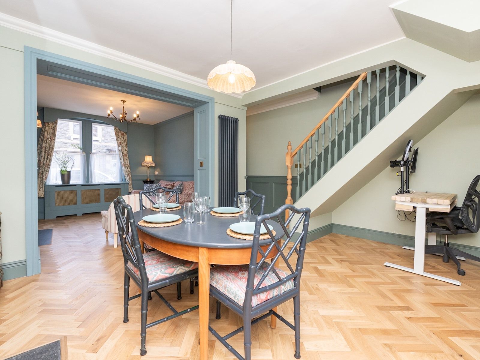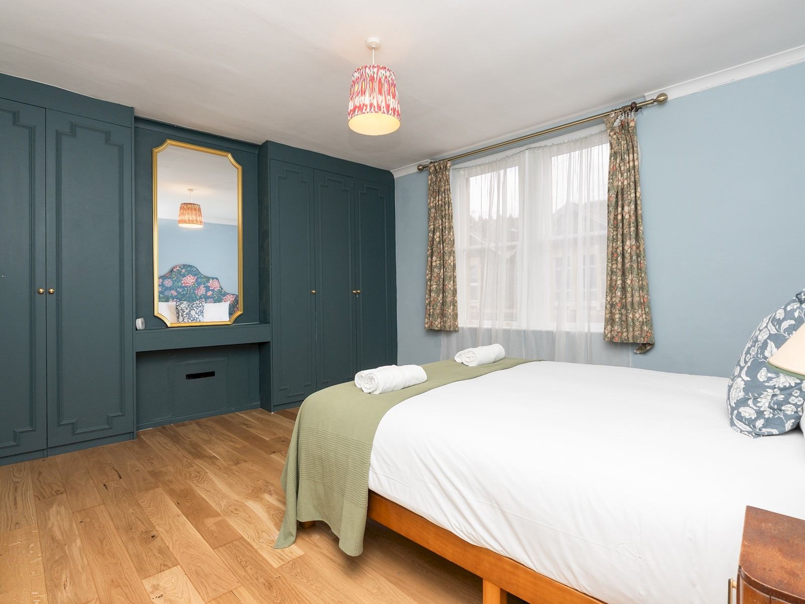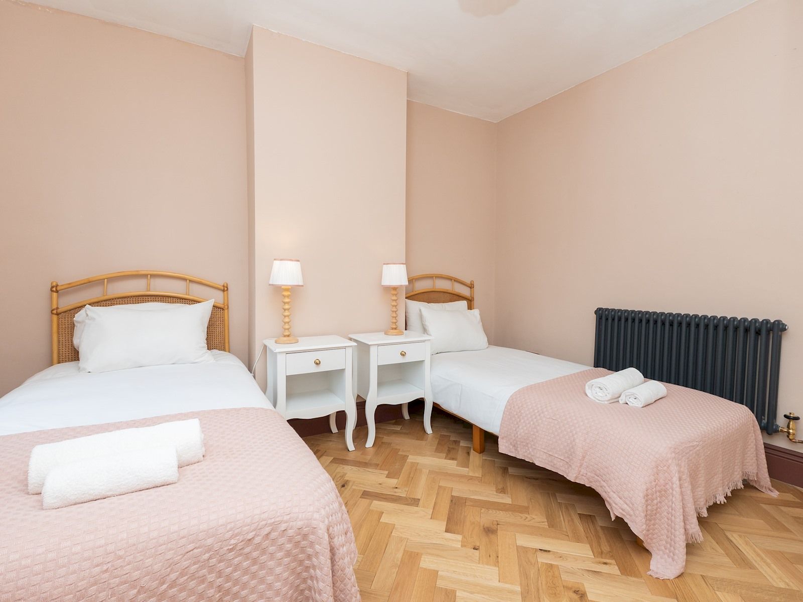 Found to the west of Bath's city centre, this terraced home is a pleasant option for groups happy with a more residential setting. The ground floor features a sky blue living room lined with bookshelves, making the neighbouring dining room feel a little bare. The kitchen is more modern, providing all the desired amenities, while upstairs the bedrooms (one double, one twin) and large bathroom offer comfort and security. You'll have access to the large grassy garden, while if you'd prefer an even bigger green space, the sprawling Victoria Park is less than ten minutes away. You'll also be within walking distance of the historic city itself, with the Roman Baths reachable in less than half an hour.