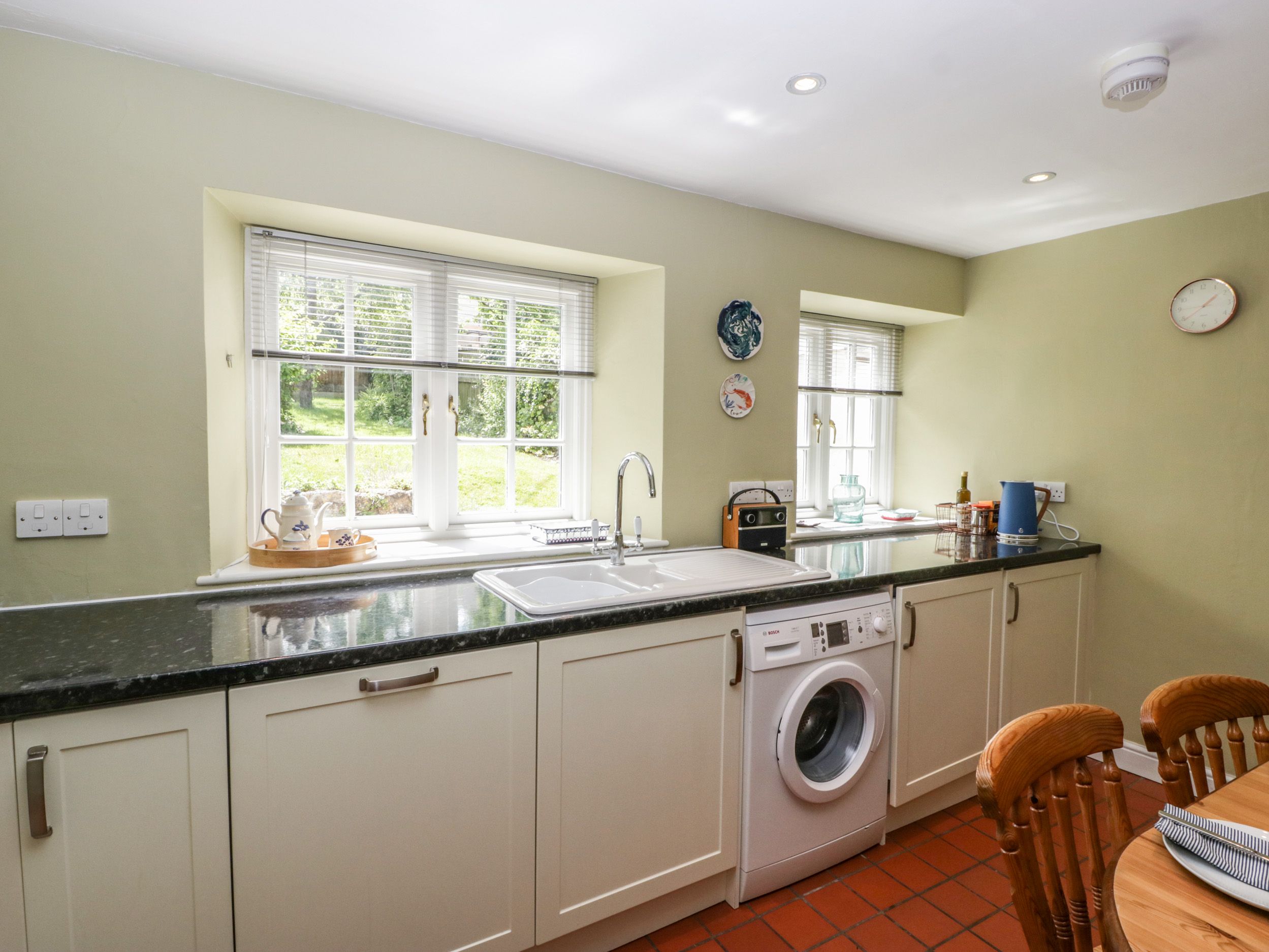 Gas central heating with woodburning stove. Electric oven and ceramic hob, microwave, fridge/freezer, washing machine, dishwasher, TV, Fibre WiFi. Fuel & power (but not wood for the stove) inc. in rent. Bed linen, towels and tea-towels inc. in rent. Travel cot and highchair available on request. Roadside parking and public car park available. Enclosed garden with lawn and seating area. Two well-behaved dogs welcome. Sorry, no smoking. Shop and pub 0.1 mile