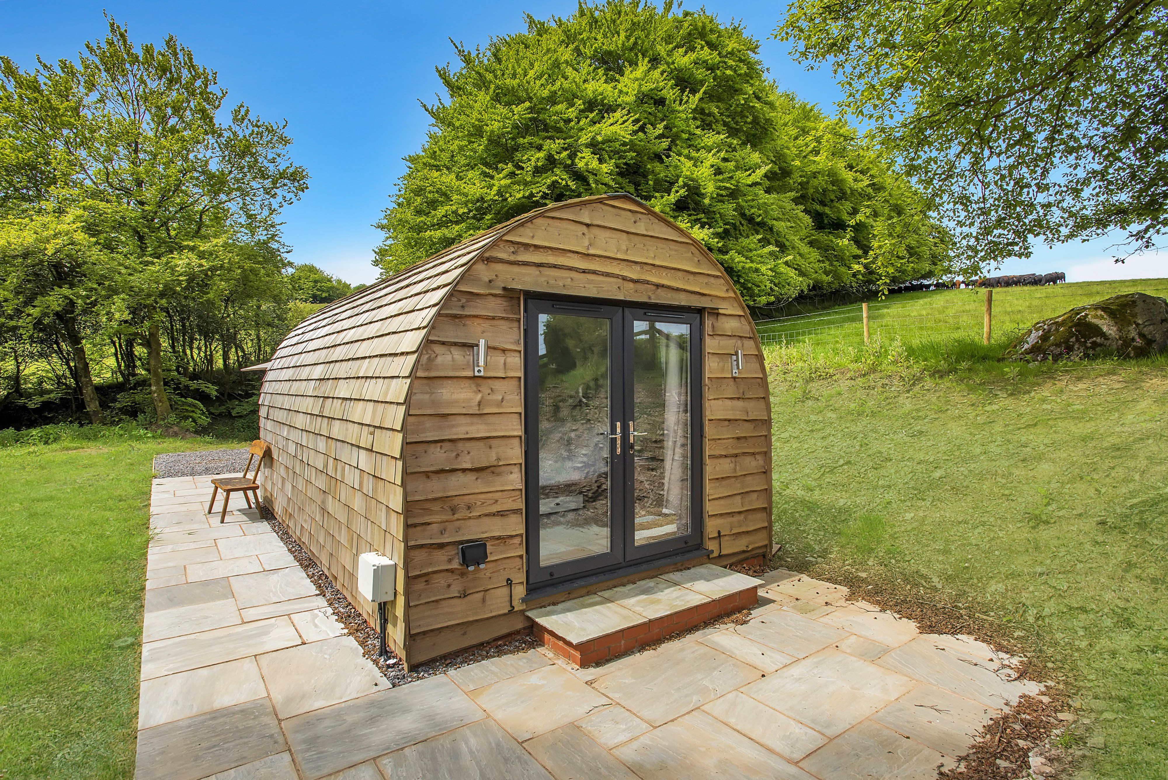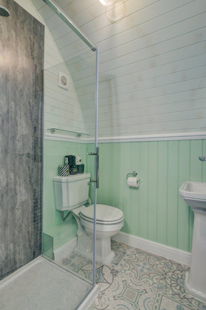 The bathroom has a radiator on a timer which ensures the pod is always warm and there is an additional free standing heating stove.