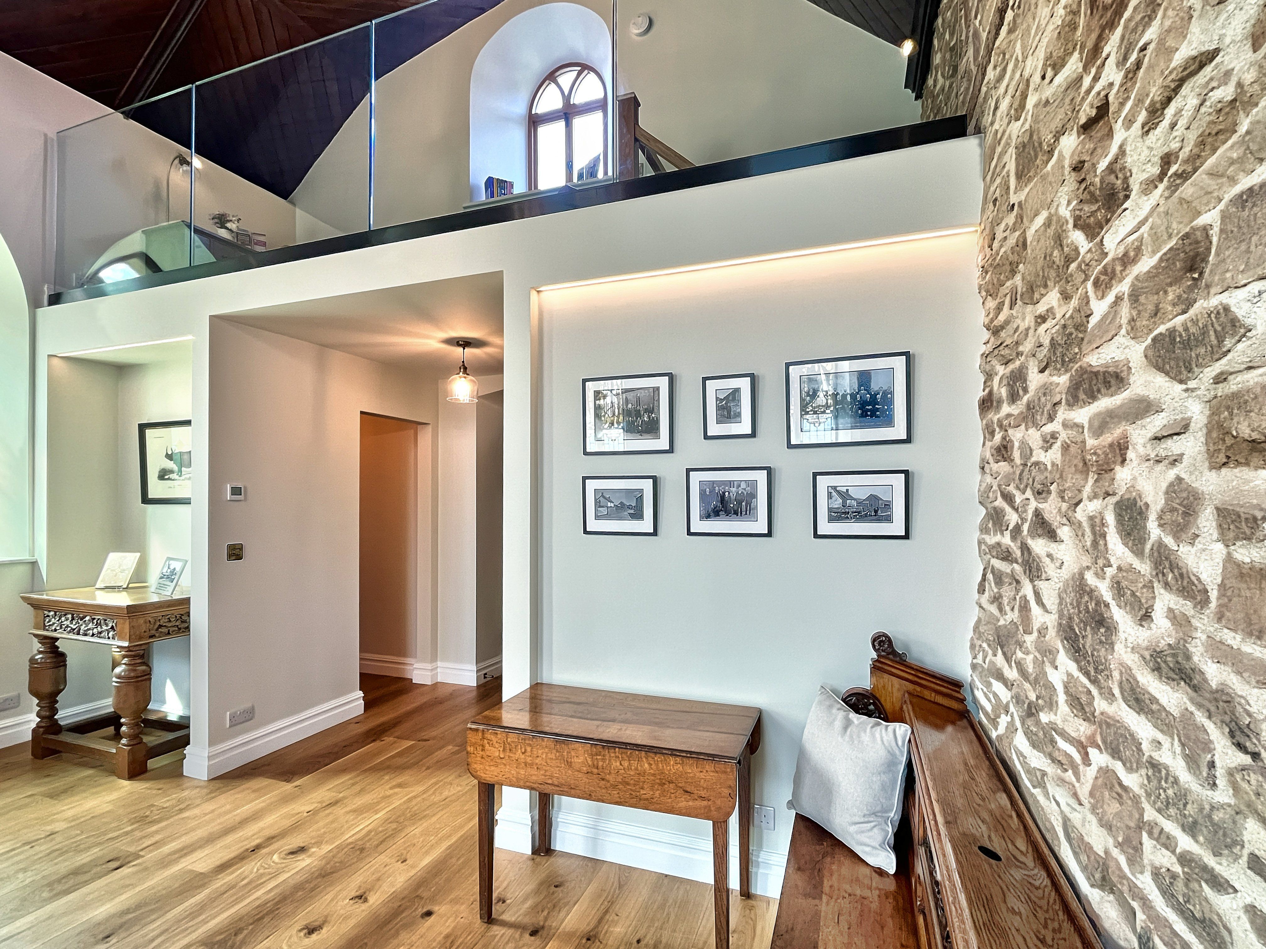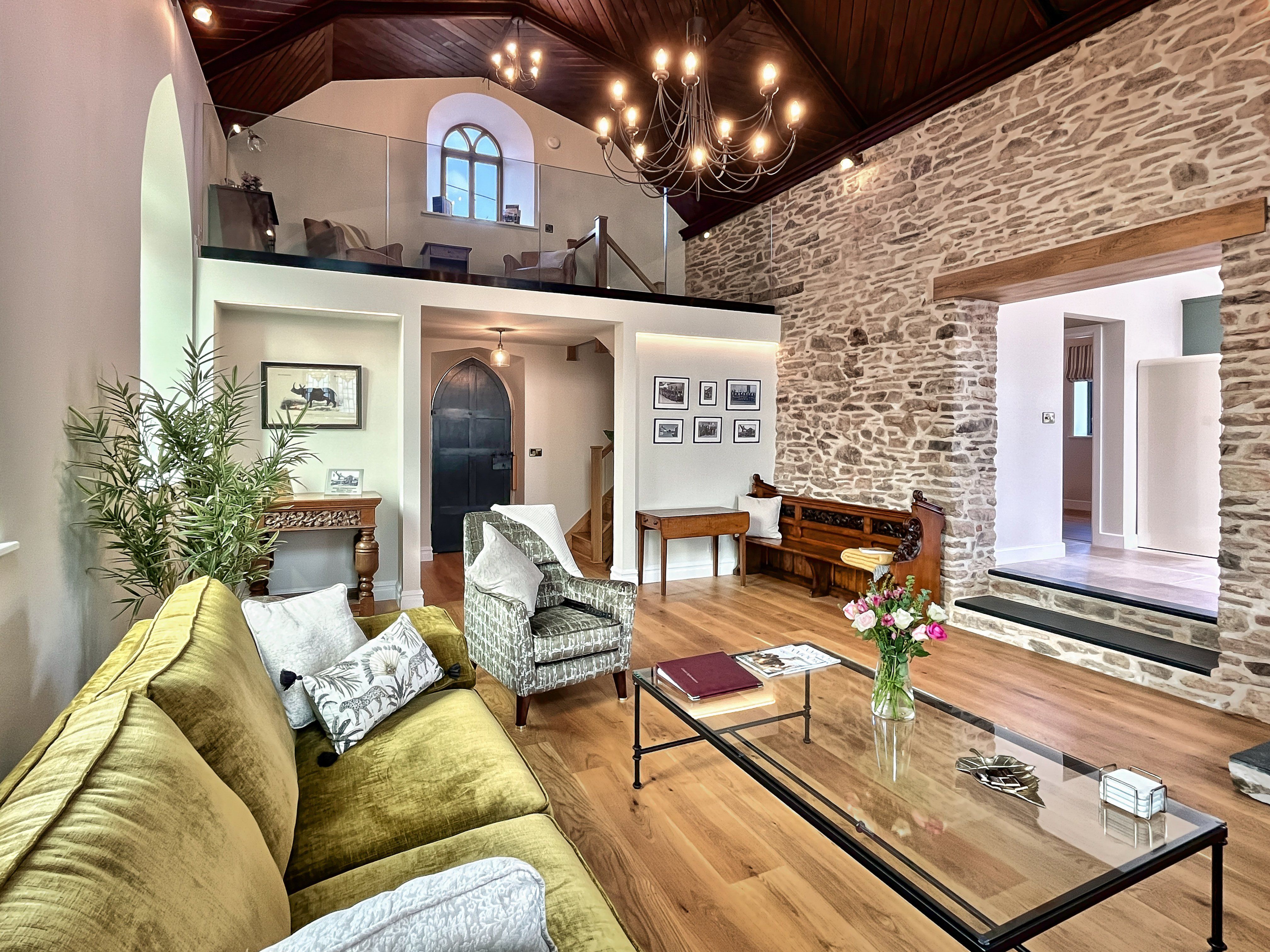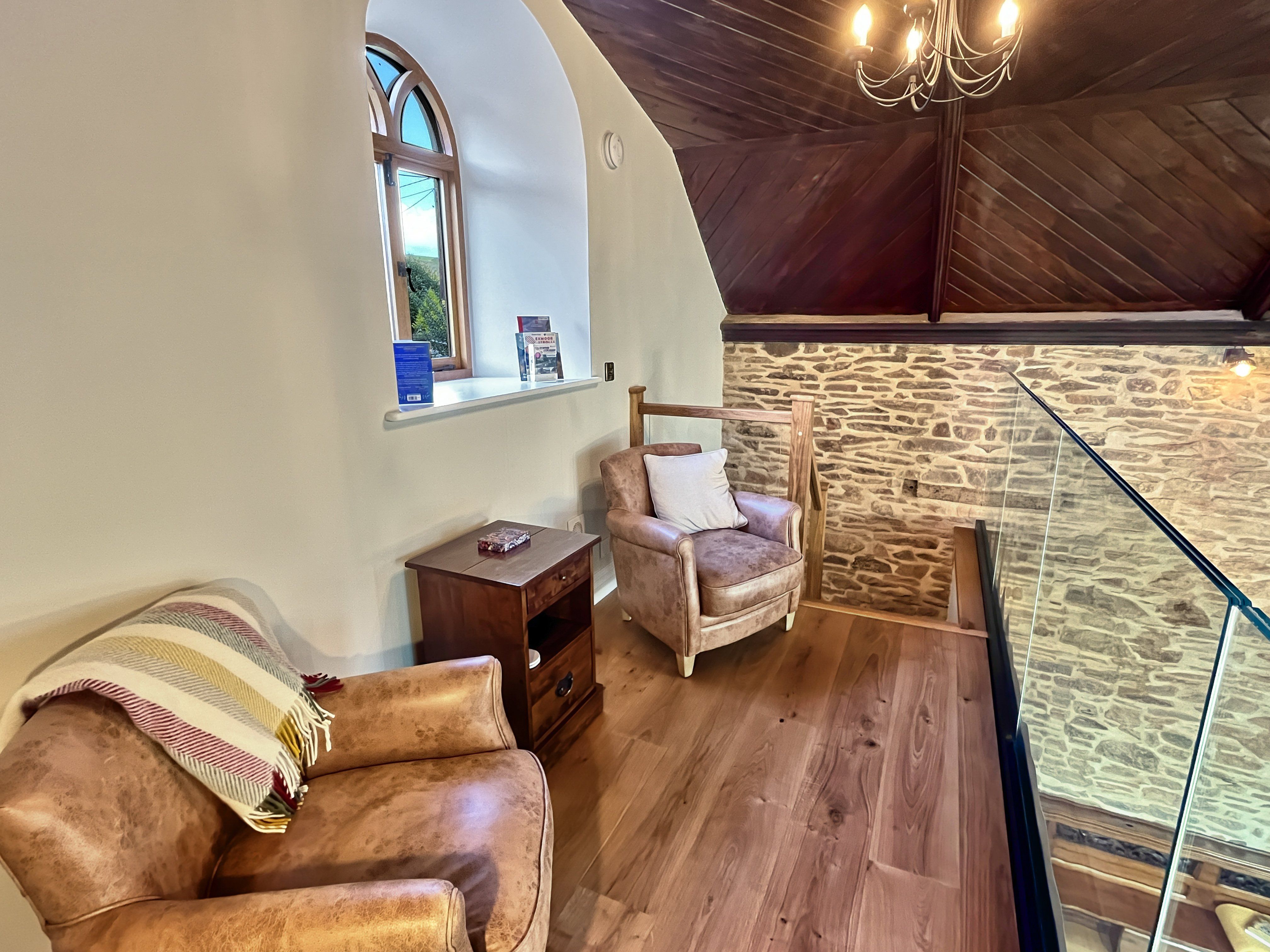 The living area is the site of the original chapel which has a smart television equipped with TV channels, HD multi channel options and apps. Wi-Fi is available throughout (speed 150 mbps) enabling you to keep in touch with the outside world if you need to. A smart speaker is available for you to stream music from your own devices. A selection of board games are also available.