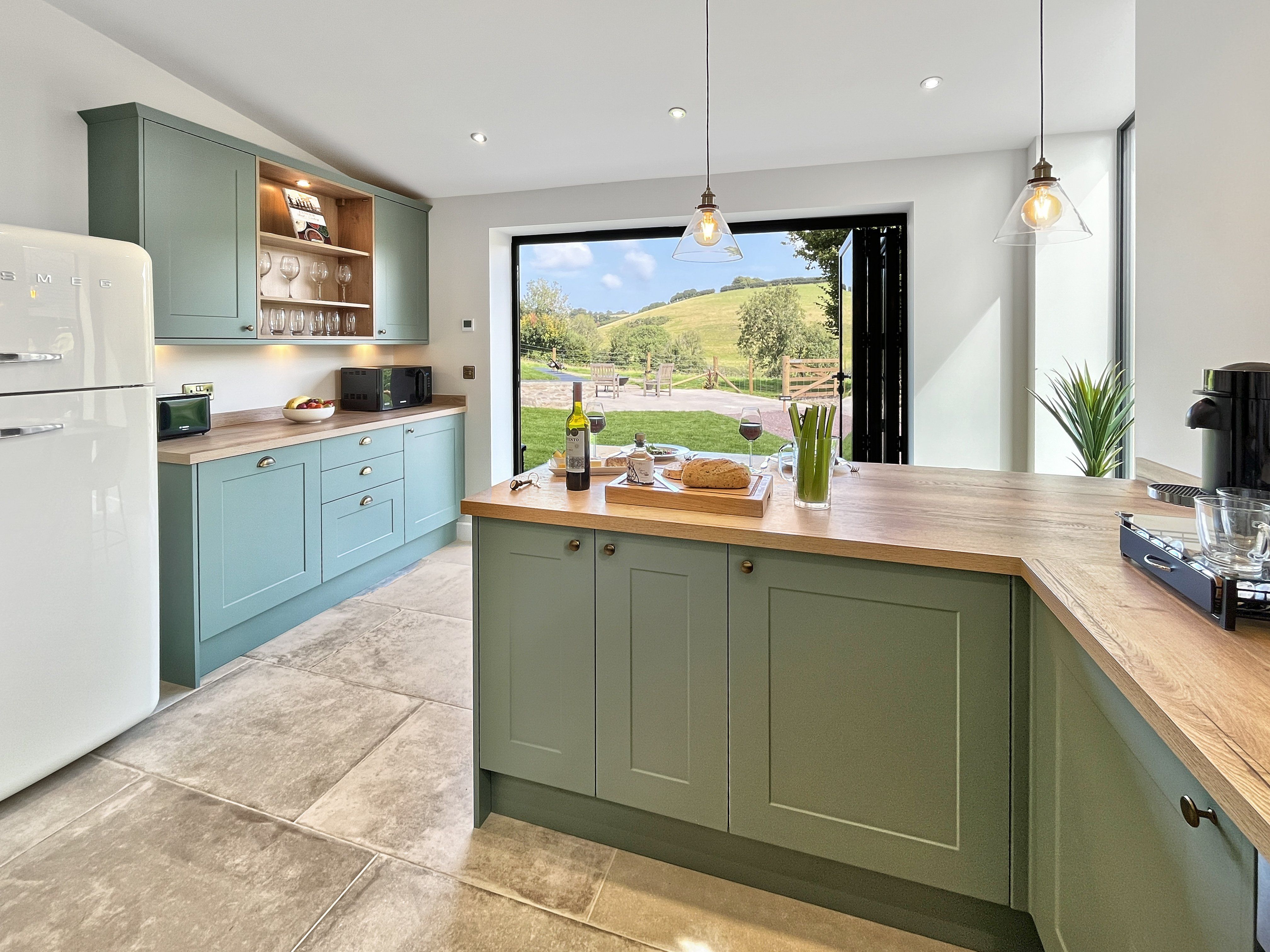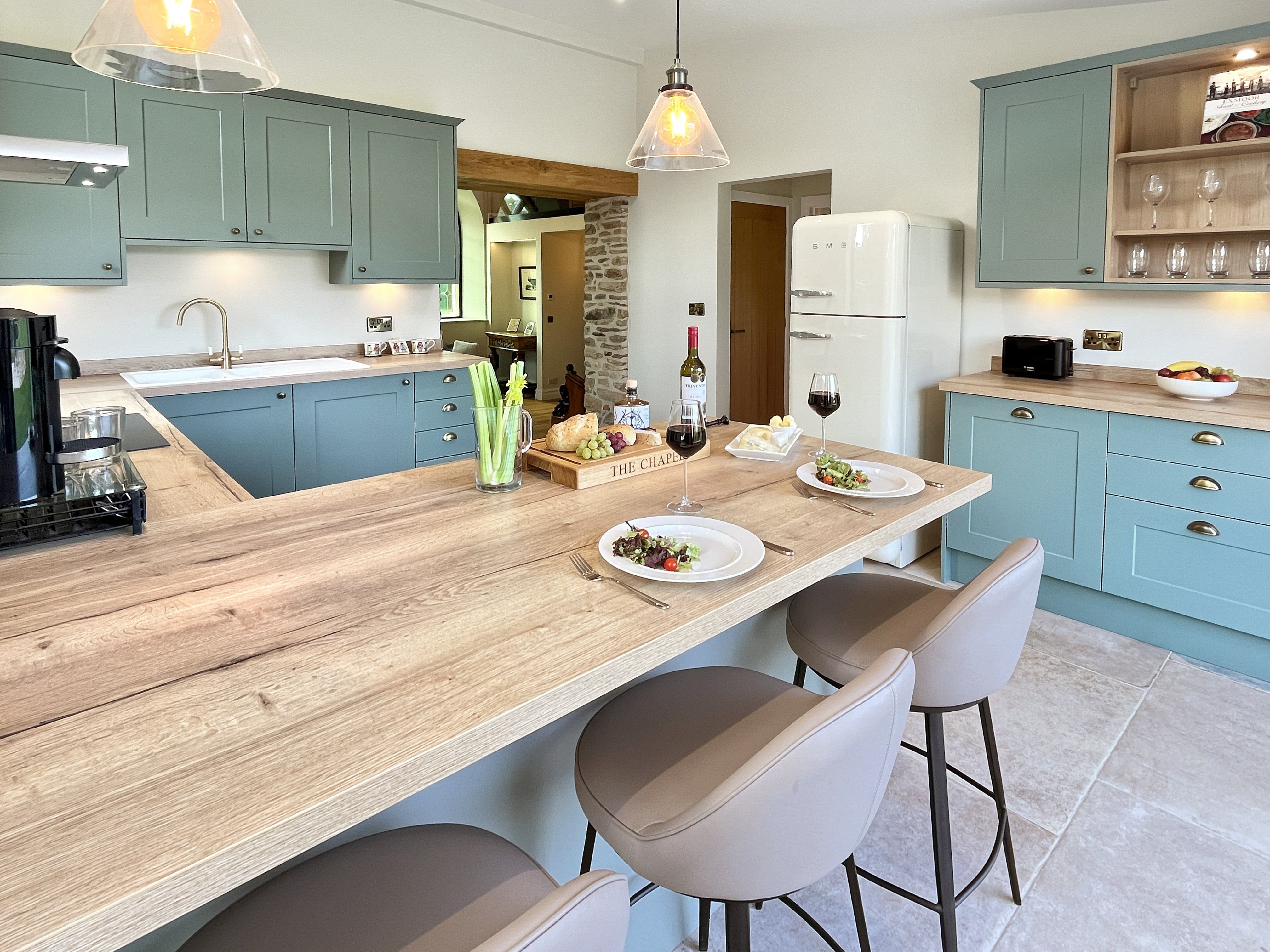 Facilities The modern kitchen is well-equipped with all new appliances, a SMEG fridge/freezer and kettle, Bosch oven/hob, microwave and toaster, washer/dryer and a Nespresso coffee machine which has an initial complimentary supply of pods (more pods available at cost price). Plus a good selection of cookware, utensils, glasses, crockery and cutlery. Tea towels are provided.