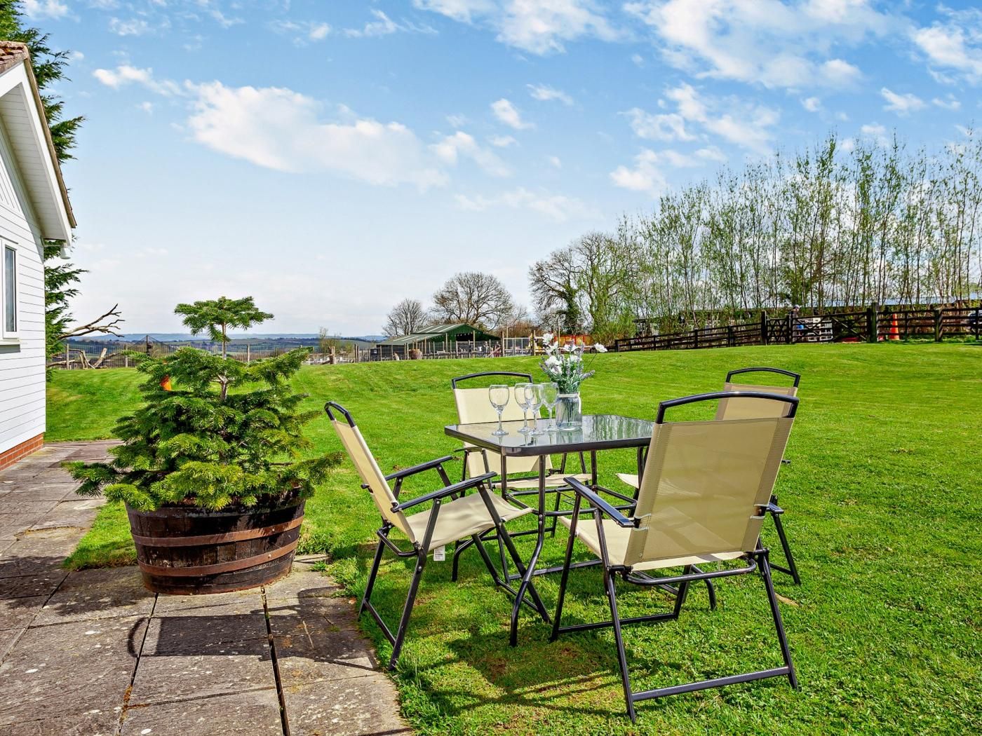 Situated within the grounds of the owners’ licensed zoo, a variety of animals can be seen grazing nearby, from pygmy goats to alpacas.