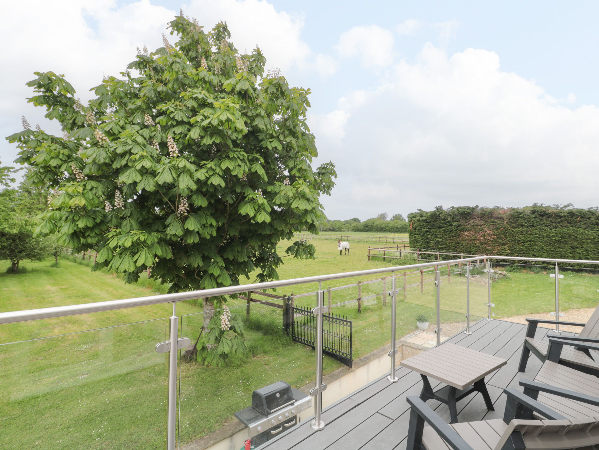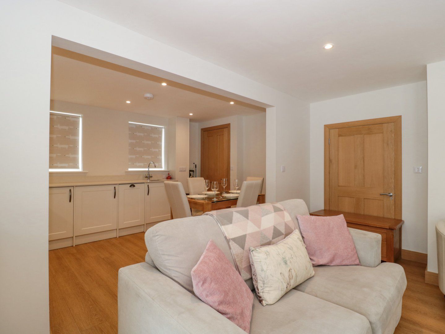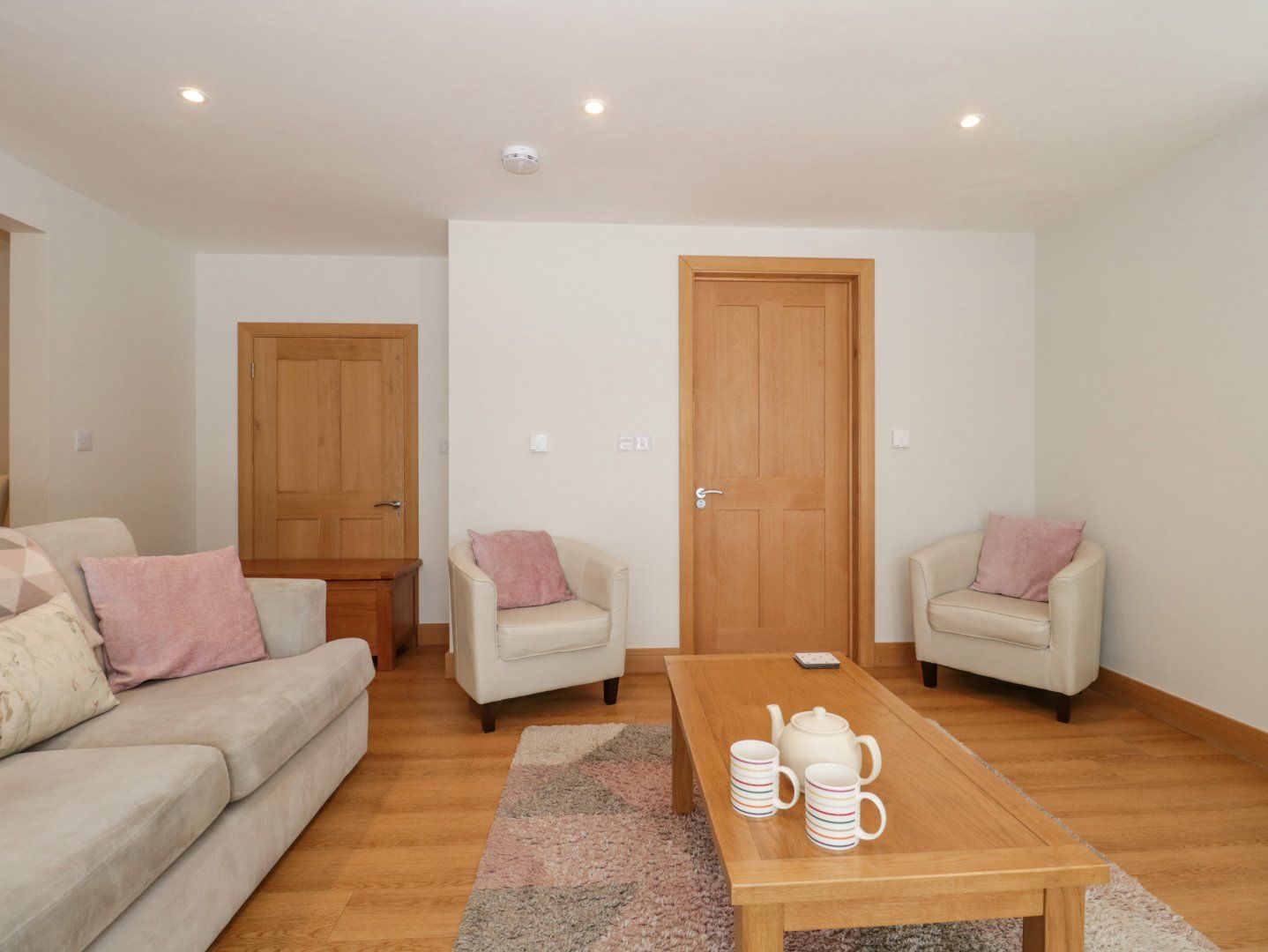 Air source heat pump central heating. Electric oven and hob, microwave, fridge with ice box, washer/dryer and dishwasher. 2 x Smart TVs and WiFi. Fuel and power inc. in rent. Bed linen and towels inc. in rent. Travel cot, highchair and stairgate available on request. Ample driveway parking. EV charging point. Balcony with furniture. Private patio with furniture. Shared garden with lawn. Two small well-behaved dogs welcome. Sorry, no smoking. Shop and pub 2.5 miles. Note: Dogs are to be kept downstairs, off any furniture, and must not be left unattended. Note: The sofa bed in the living space can accommodate 2 more guests, making a total of 6 guests, at £20 per person, per night; please request this upon booking. Note: This property is disabled-friendly, with possible access via a threshold ramp; please request this in advance