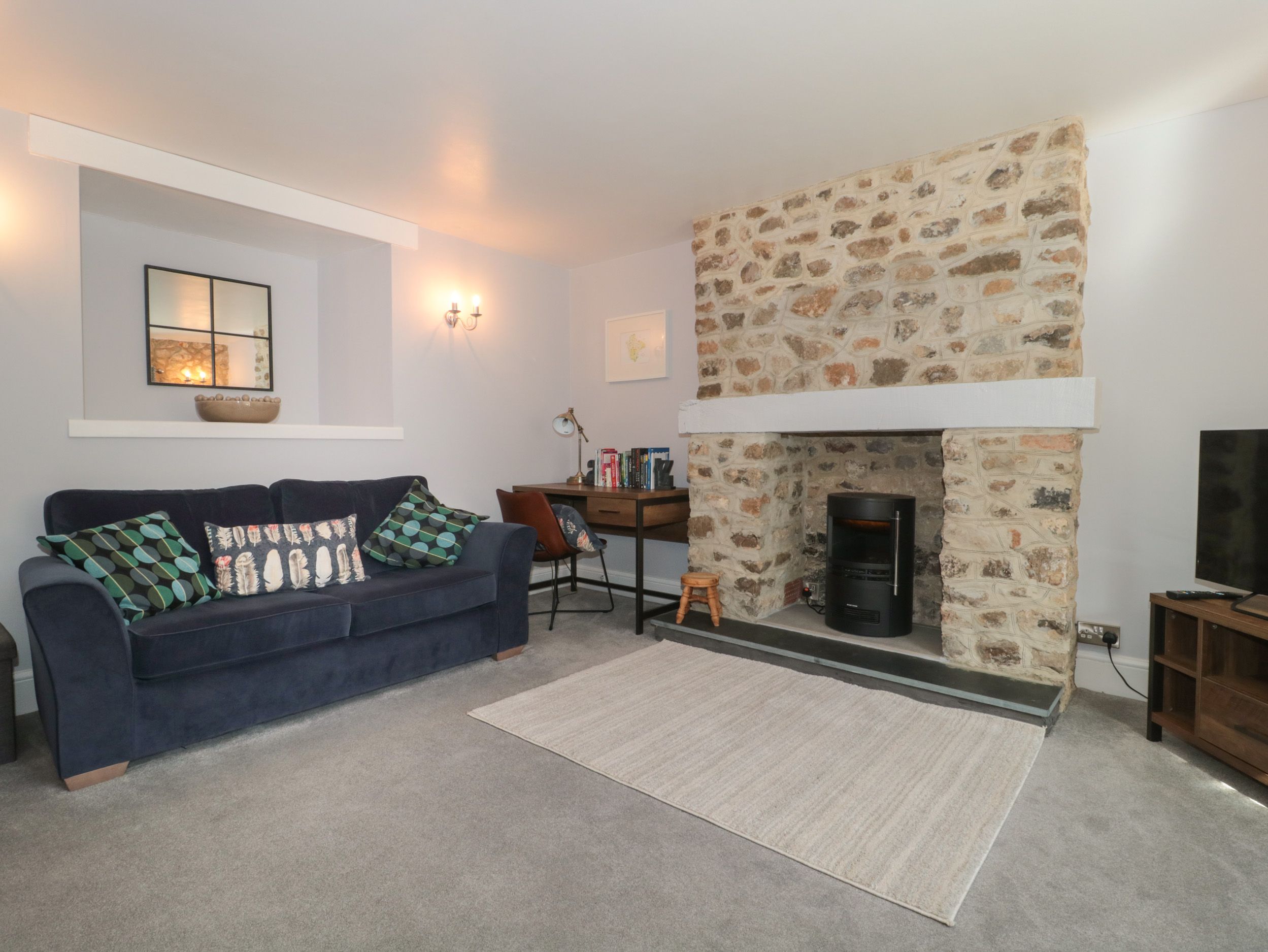 Amenities Gas central heating. Electric oven with gas hob, fridge, freezer, microwave, dishwasher, TV and WiFi. Fuel and power inc. in rent. Bed linen and towels inc. in rent. Off-road parking available for two cars. Enclosed back garden lawned area. Sorry, no pets and no smoking. Pub 0.9 miles; shop 0.2 miles. Please note; The cottage can accommodate up to 6 guests using either the truckle beds in the twin bedroom (more suitable for children) or the sofa-bed in the living room.