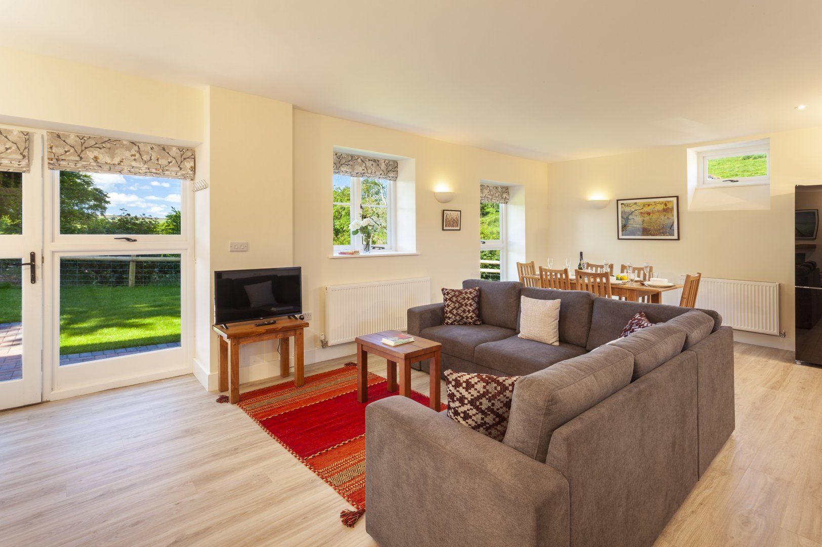 Facilities This newly converted cottage, originally a stable, has a large open-plan living area featuring a wood-burning stove. The kitchen is well equipped, and includes a free-standing fridge-freezer, dishwasher, washing machine and dryer, microwave, and electric double oven plus hob. Other equipment includes toaster, kettle, cafetiere, a variety of cookware, kitchen utensils, cutlery, crockery and glasses. There is a dining area with seating for 6 guests, as well as and a comfortable sitting area with TV. The room is very bright as it faces south and has a lot of windows to make the most of the lovely views.