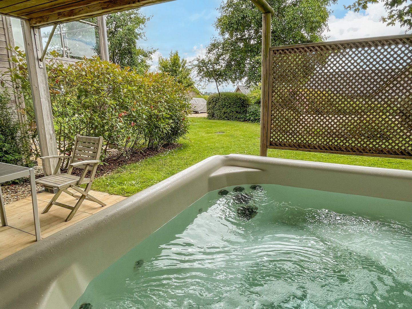 Amenities Central heating with woodburning stove. Electric oven, induction hob, microwave, fridge/freezer, dishwasher, washer/dryer. Smart TV, TV, DVD player, Smart speaker, WiFi. Fuel and power inc. in rent. Bed linen and towels inc. in rent. Stairgate available on request. Highchair available. Cot available on request (£10 charge applies per cot, guests need to bring along own cot bedding, bottom sheet provided). Each lodge has one allocated parking space.Any extra cars are able to park in the visitors car park by the entrance to the site. Garden with lawn, patio, hot tub and furniture. Sorry, no pets and no smoking. Shop 3.6 miles Pub 0.2 miles.