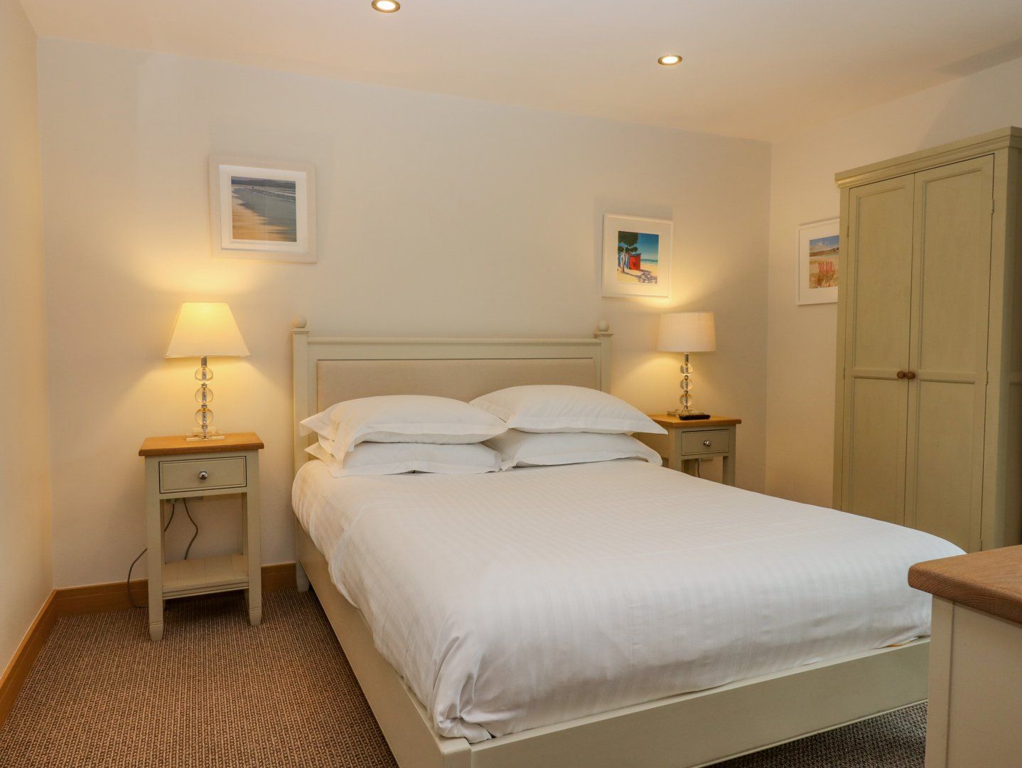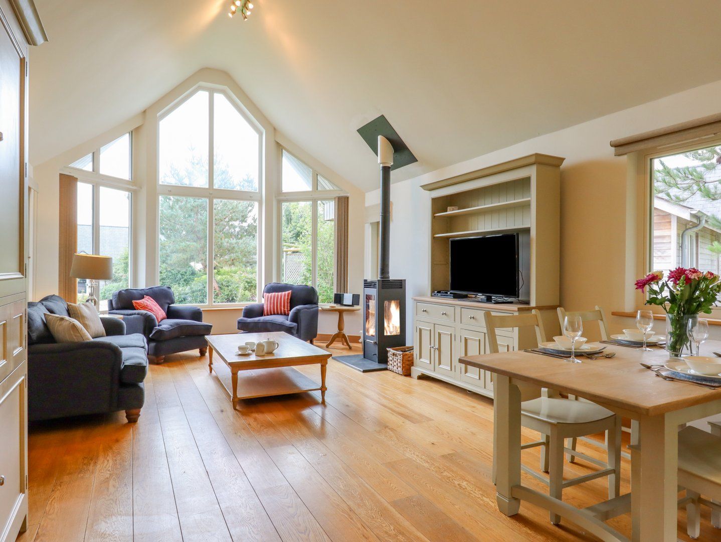 Accomodation Details Single-storey. Two bedrooms: 1 x king-size with TV and en-suite walk-in shower, basin, heated towel rail, and WC, 1 x twin with en-suite bath, basin, heated towel rail and WC. Cloakroom with basin and WC. Open-plan living space with kitchen, dining area and sitting area with woodburning stove