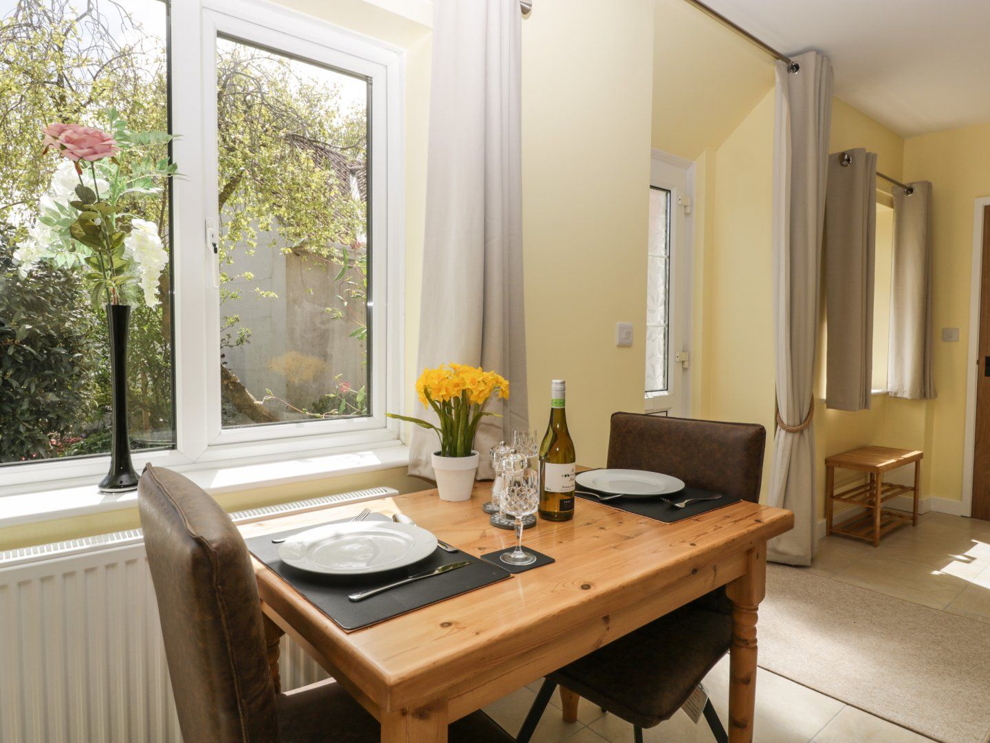 Amenities Oil central heating. Electric oven and induction hob, microwave, fridge, dishwasher, TV, WiFi, a selection of books. Fuel and power inc. in rent. Bed linen and towels inc. in rent. Off-road parking for one car. Secluded front garden with bistro table and chairs. Sorry, no children, no pets and no smoking. Shop 3.7 miles, pub 0.3 miles.