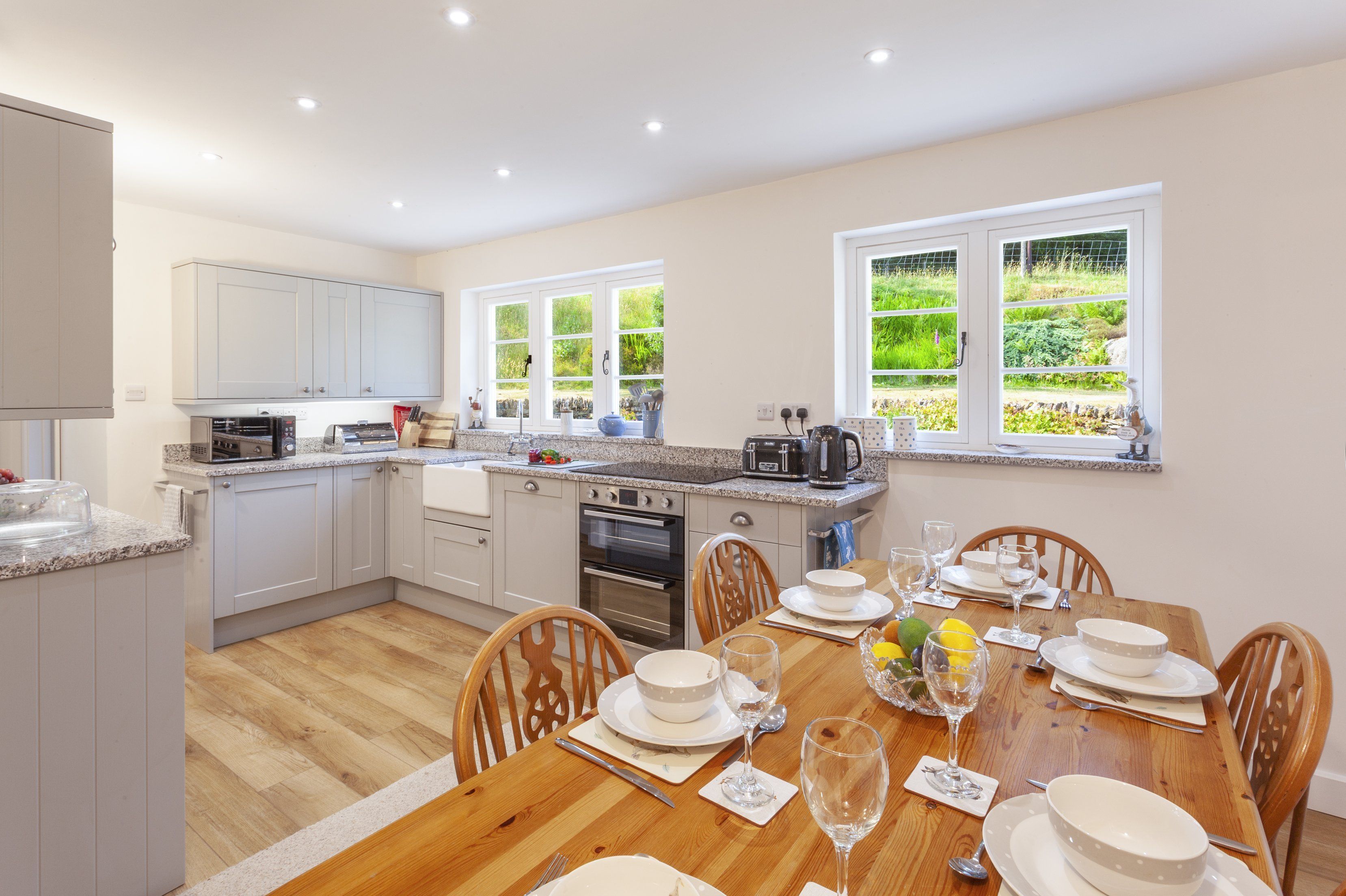 Kitchen-diner equipped with an electric AGA cooker, underfloor heating, dishwasher, second fridge, microwave. The extending dining table can easily seat 6.