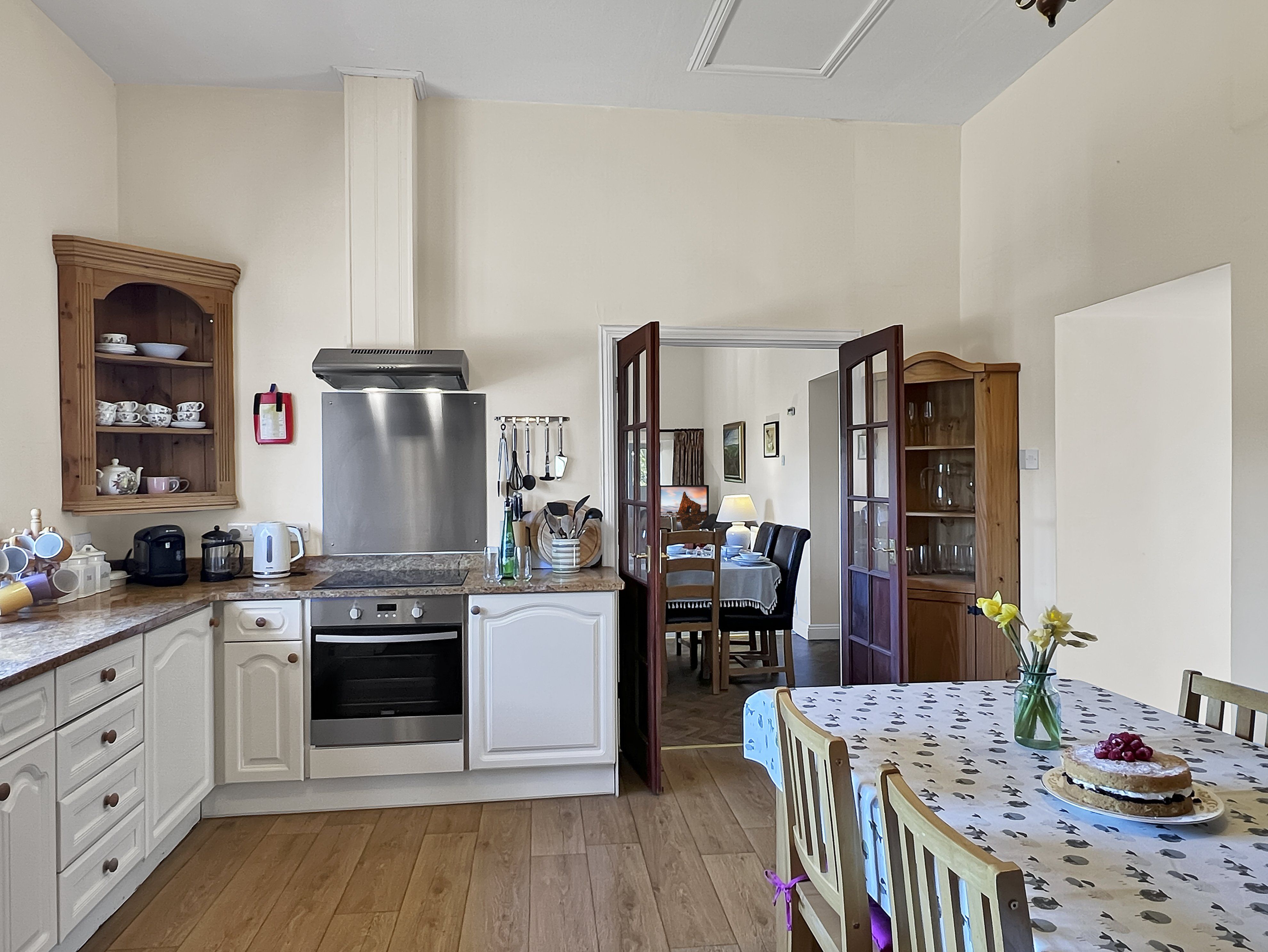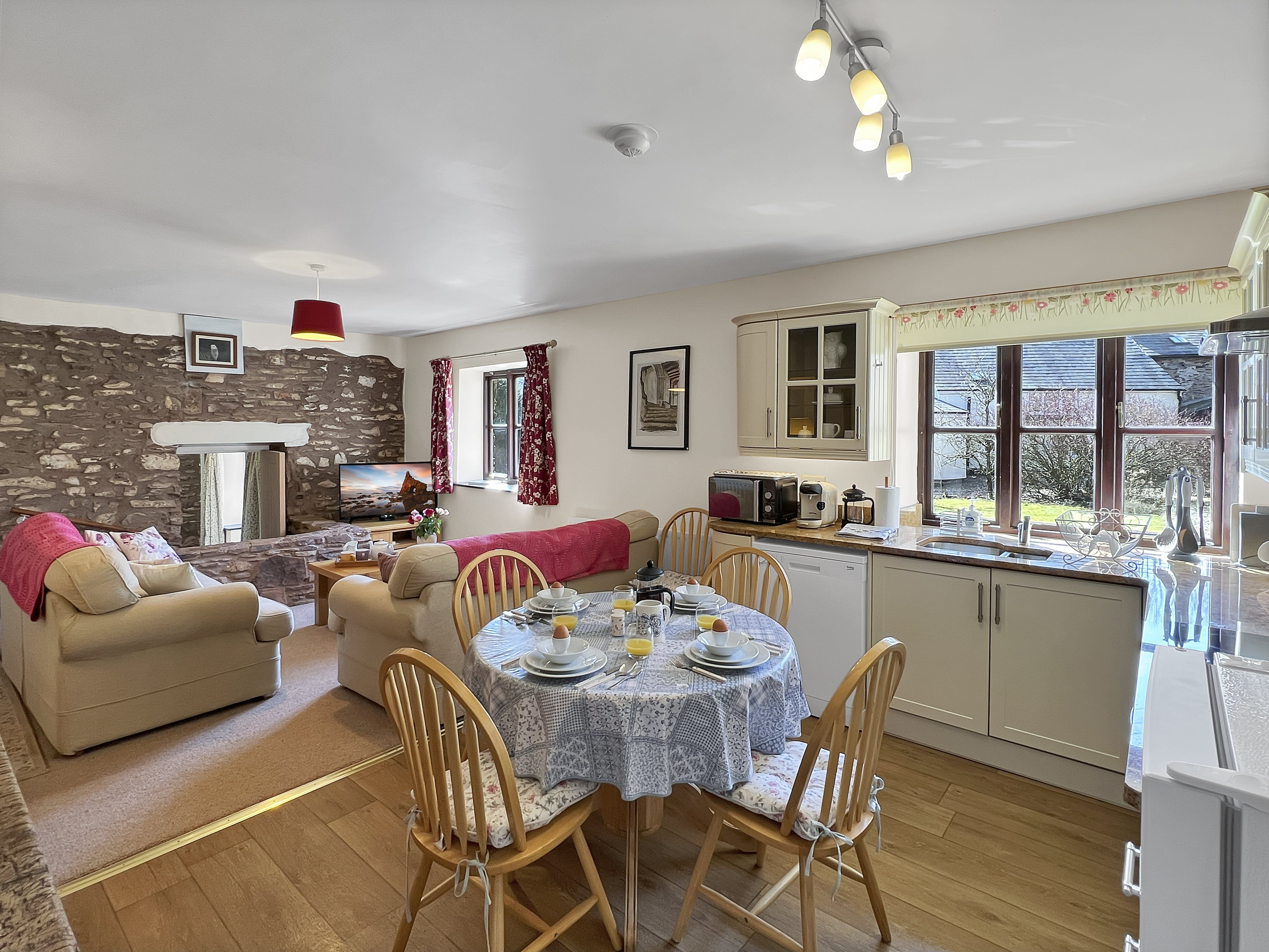 Facilities Included for all bookings: All beds made up on arrival with duvets Fluffy bath and hand towel per person provided, but no beach towels. Electricity, water and central heating. Logs and kindling for log burning stove. Firelighters & matches. Games, selection of books and magazines. Free WiFi. Tassimo Coffee Machine (takes T-discs which we do not supply but which are widely available). Dish cloths, sponges, scourers, oven gloves. Cling film and foil. Washing machines with washing machine tabs and conditioner. Tumble dryer. Tea towels. Recycling bins. Loo rolls. Cots (no bedding provided), high chairs and booster seats. Stair gates. Hair dryer in each room, iron and ironing board. Vacuum cleaner and various other cleaning items.