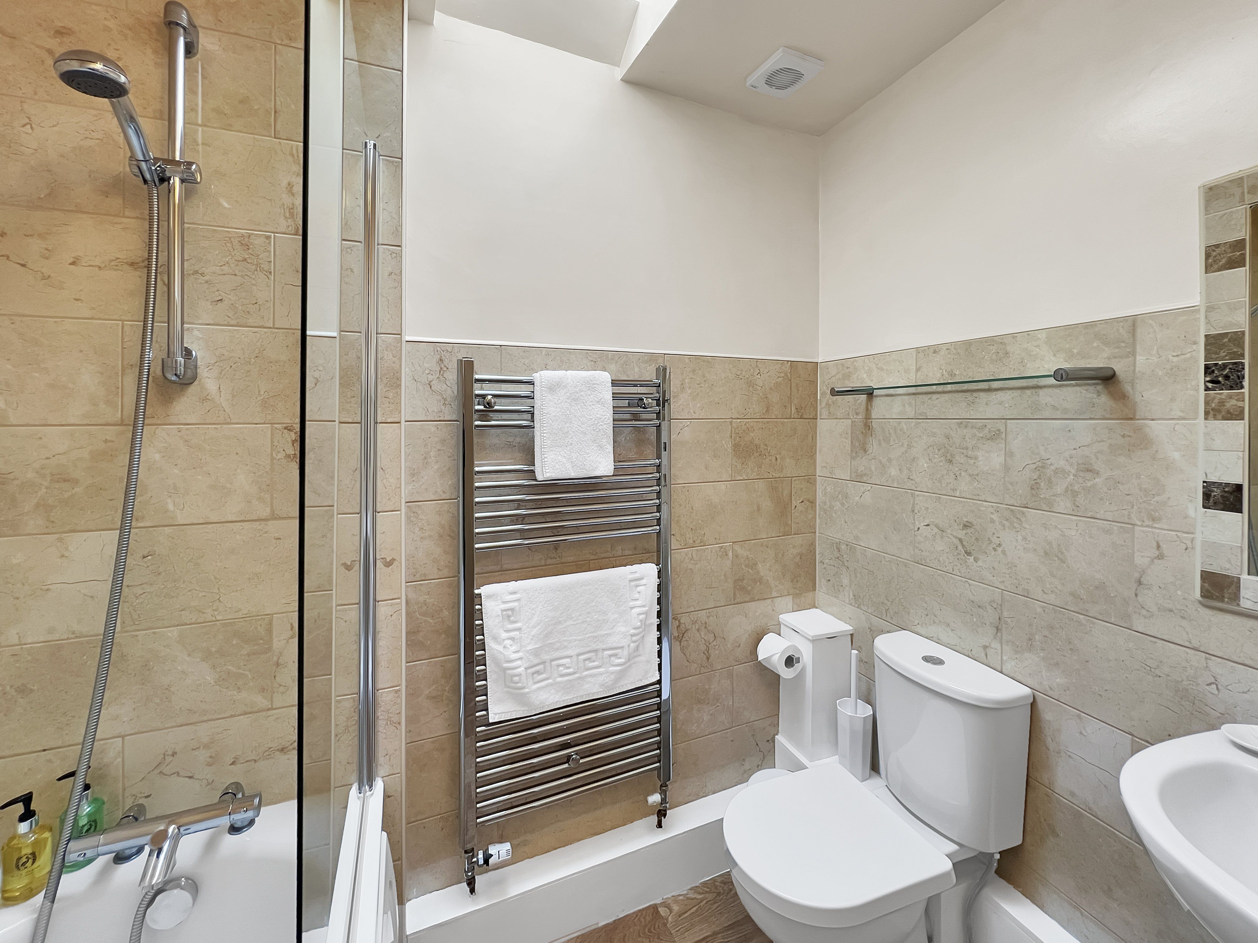 Starter pack of: Dishwasher tablets. Washing up liquid. Selection of cleaning products. Selection of toiletries in each bathroom. Bin liners for all bins