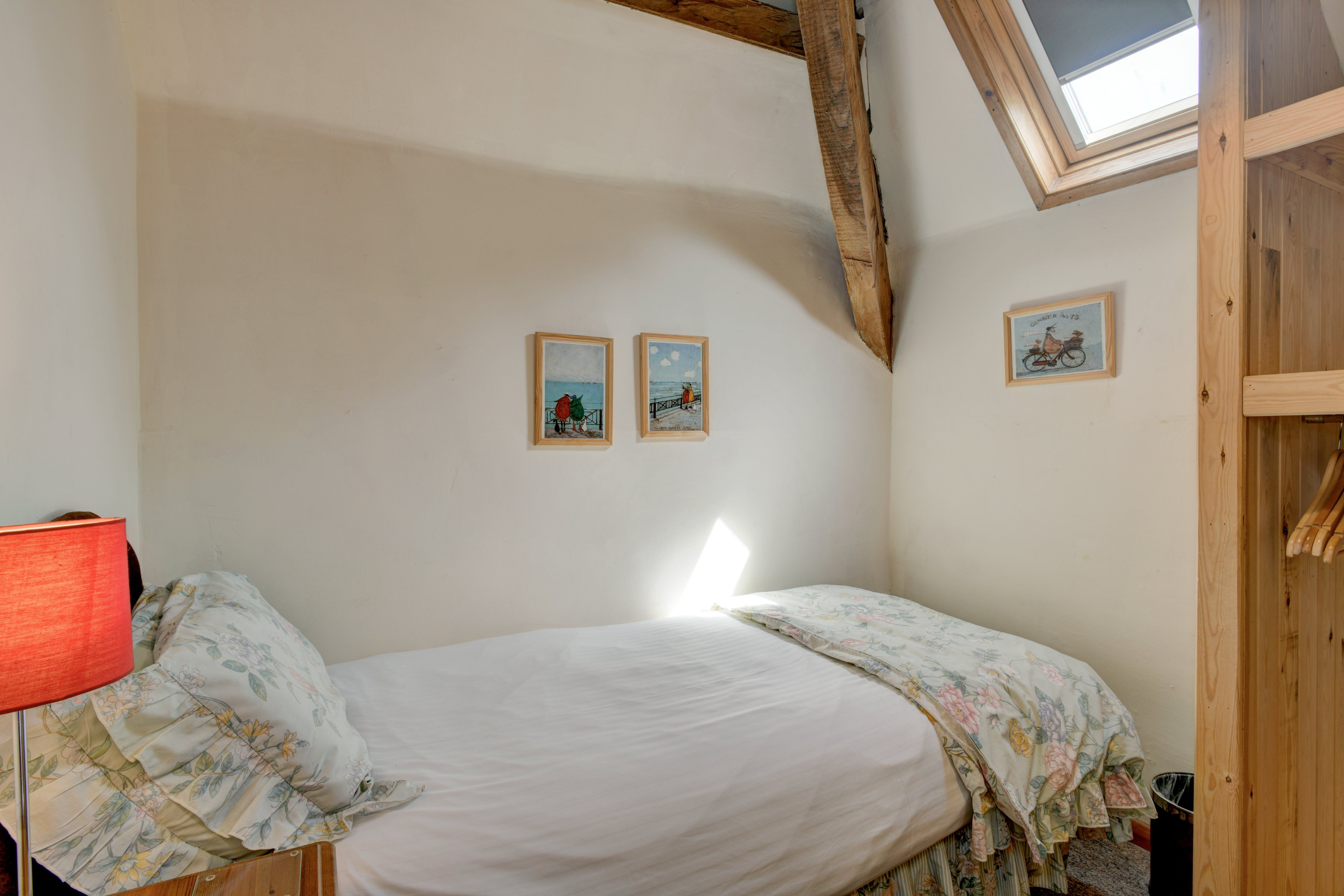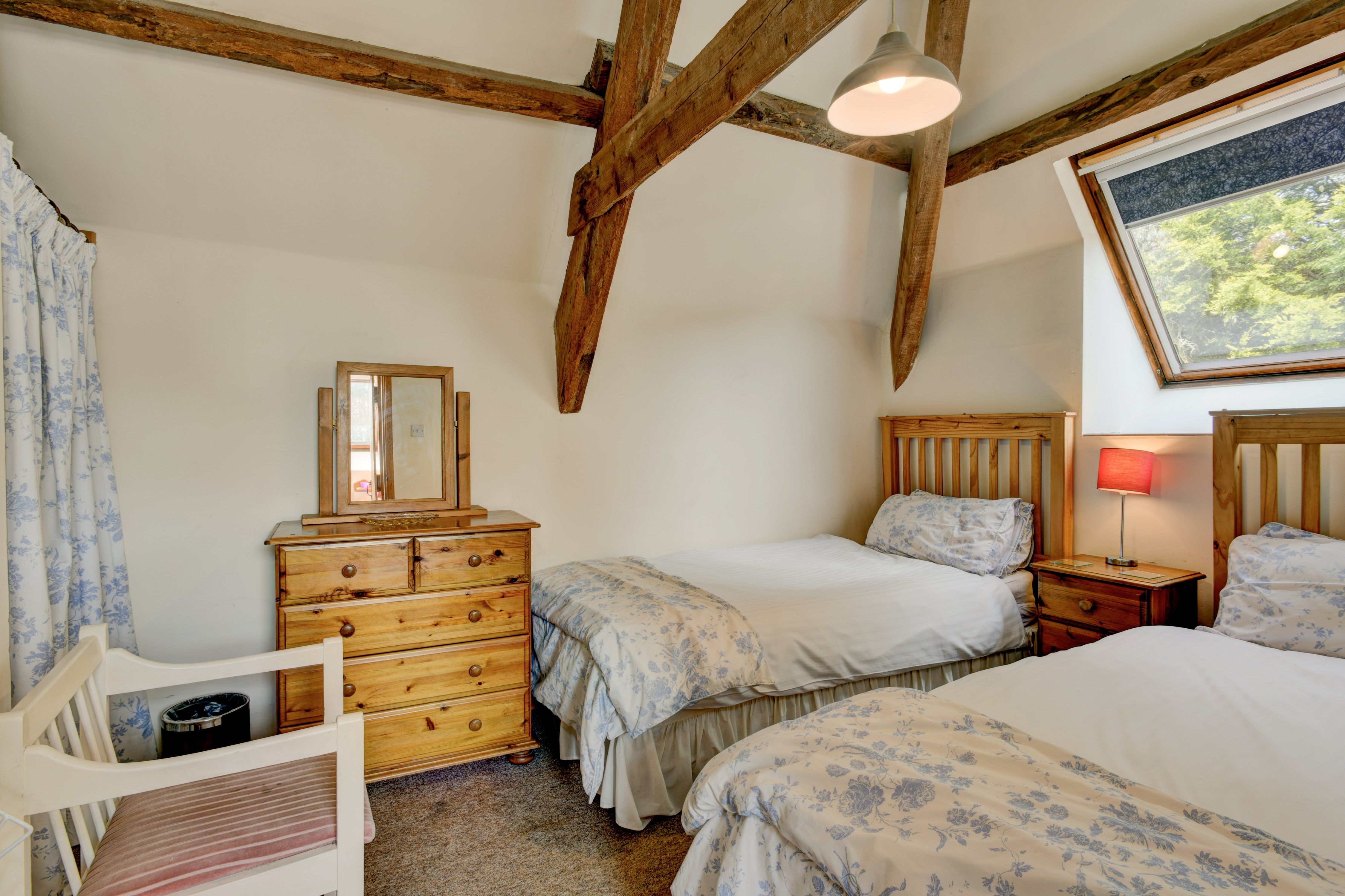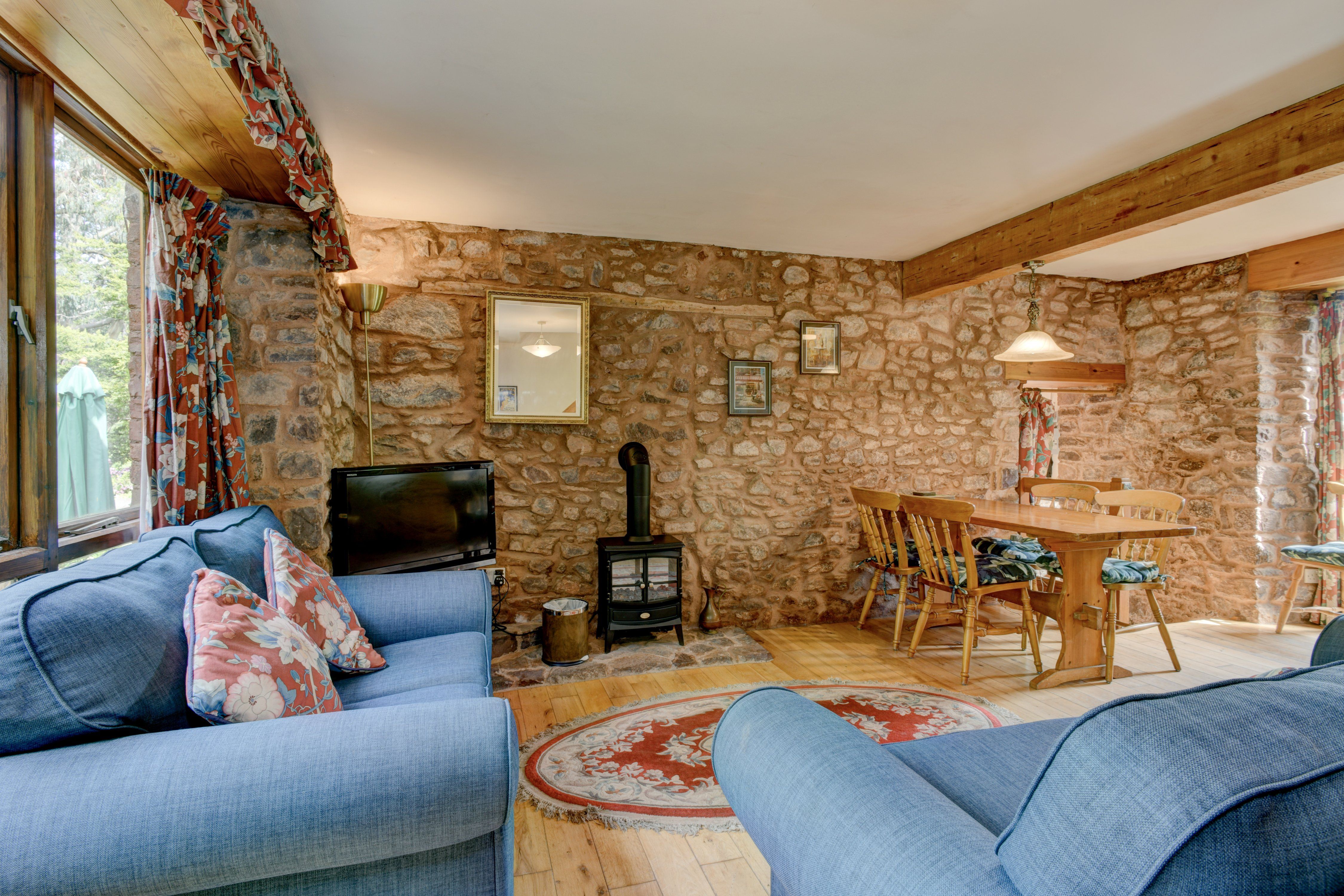 Allerford Cottage forms one part of a complex of charming 4-star country cottages in a beautiful section of Exmoor National Park’s Avill Valley, between Dunster and Timberscombe. This property is one of the largest on the site and is particularly well-suited to families, with three bedrooms—one double, one twin, and a single. It occupies the north end of what used to be a roomy stone barn and engine shed, and each of the lower and upper levels has its own separate entrance.