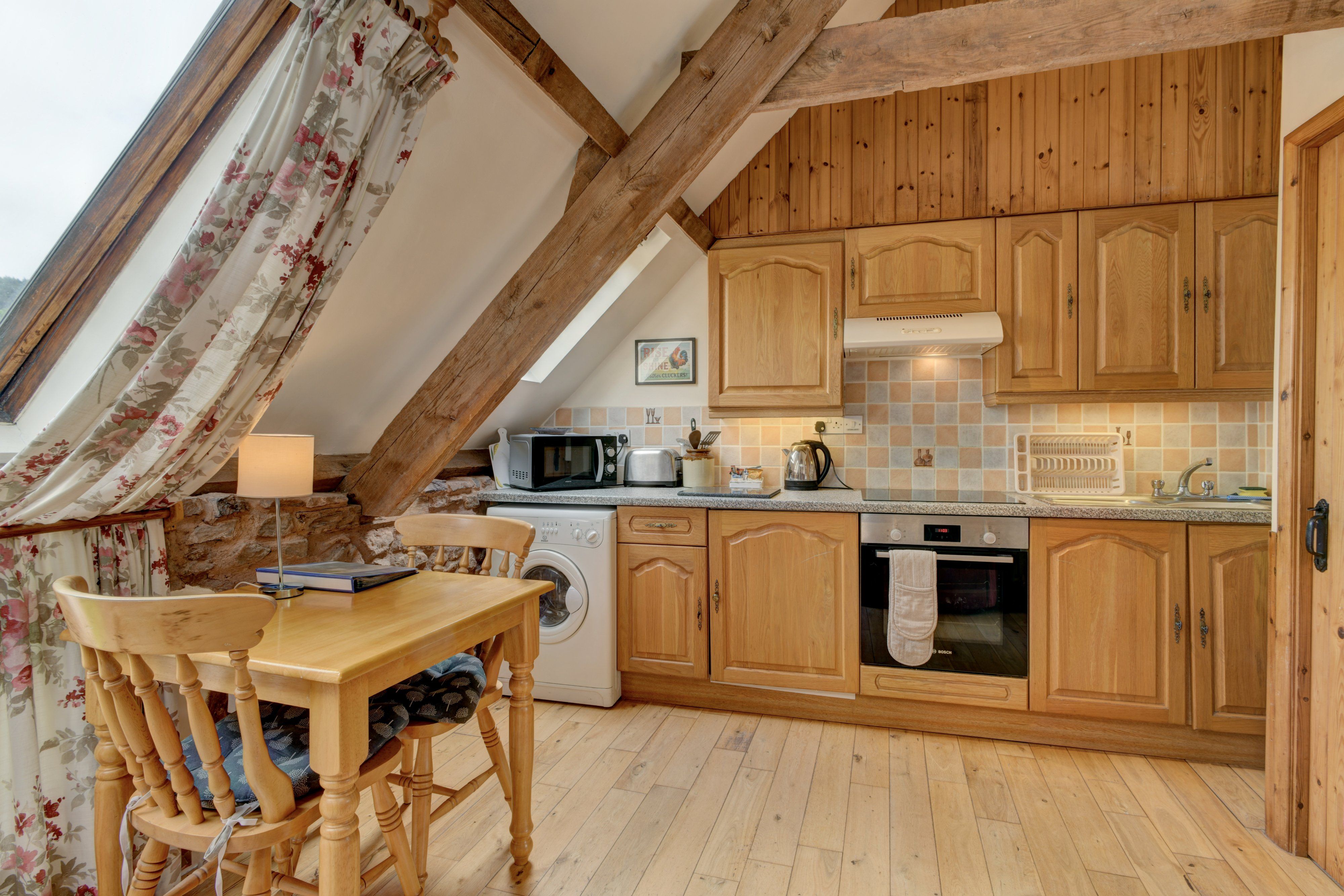 Horner Apartment forms one part of a complex of charming 4-star country cottages in a beautiful section of Exmoor National Park’s Avill Valley, between Dunster and Timberscombe. Located on the first floor of the complex’s South Barn building, this apartment with double bedroom is well-suited to couples or singles. It is accessed via an outside staircase which leads to a balcony where guests can sit and relax outside, enjoying lovely views out across the valley. Guests looking to stay active can take full advantage of extensive leisure facilities including indoor pool, tennis court, games room, and trampoline, and enjoy the property’s 9 acres of picturesque Westcountry land containing picnic areas and a river suitable for paddling.