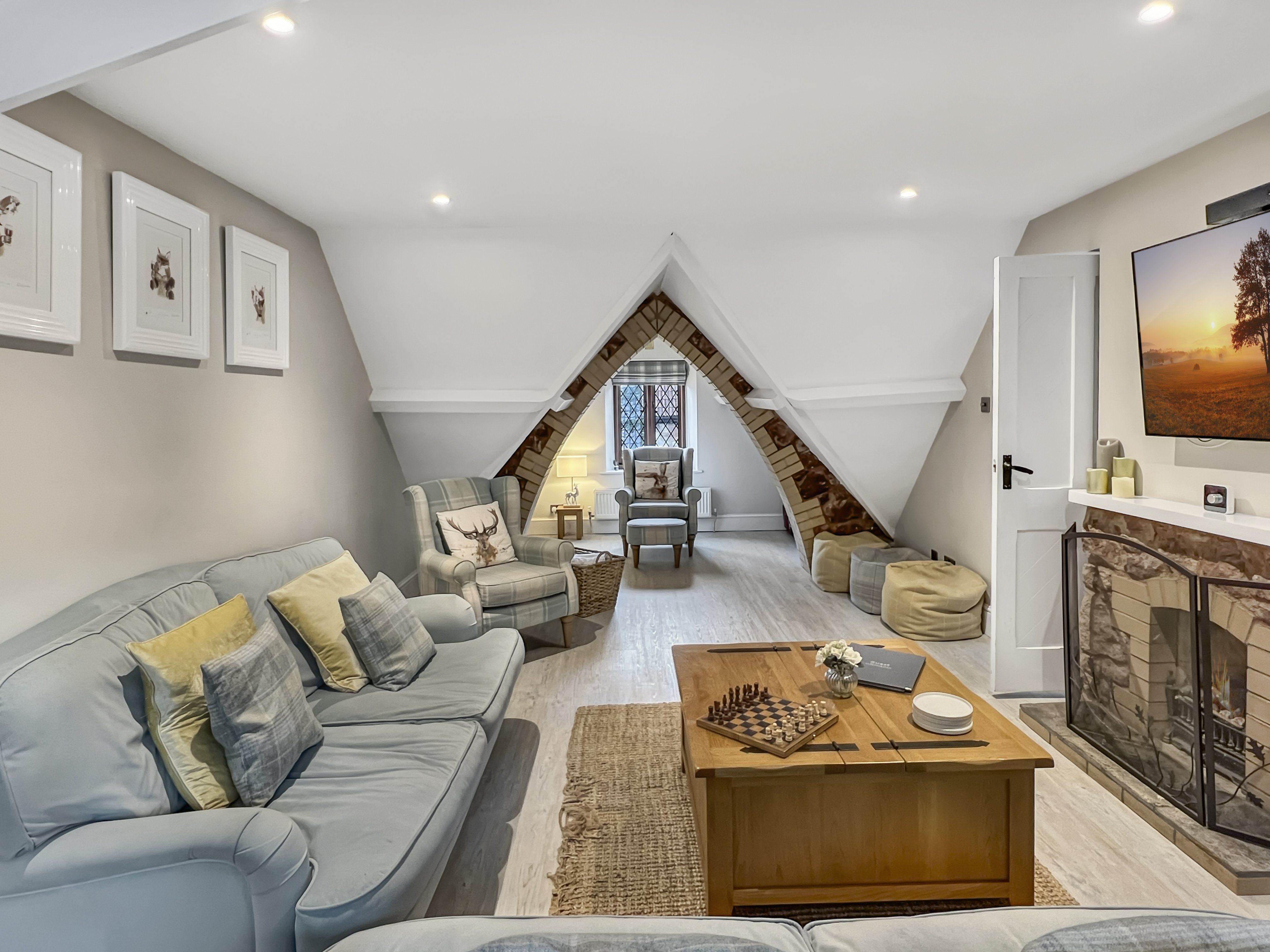 The sitting room is spacious and includes 55-inch Smart TV and Bose Soundbar with Sky and Netflix.