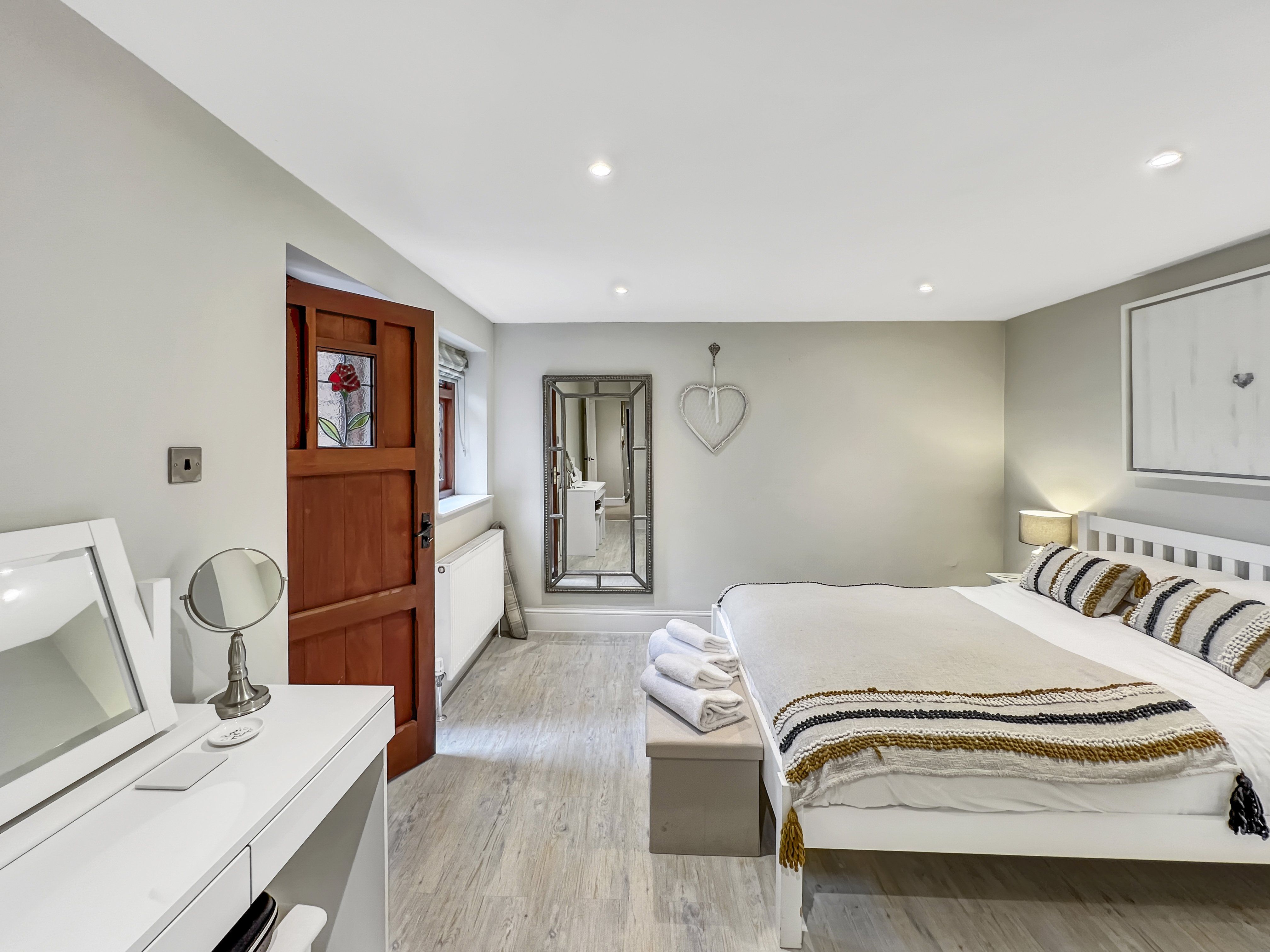 The family bathroom has a lovely free-standing bath with shower over, plus toilet, hand basin and features a bathroom TV so you can relax in the bath and watch your favourite TV programme. Both the bathroom and en-suite shower room are also fitted with lighting mirrors. The main bathroom mirror has Wi-Fi connection and built-in speakers. Toilet paper will be in both the bathroom and en-suite. Further information about how to use these appliances will be provided in the cottage in case you need them.