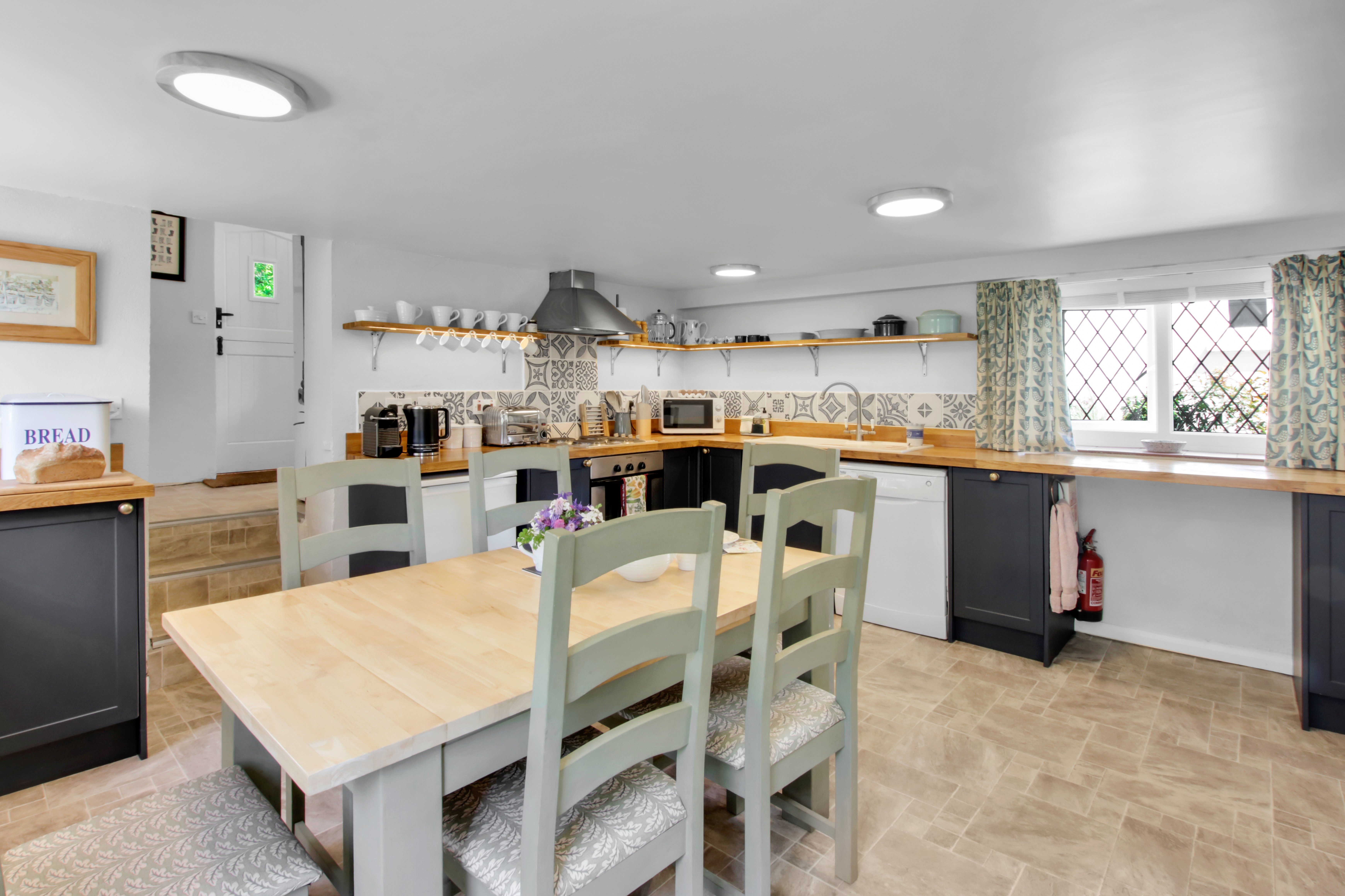 3 first floor bedrooms (one king-size double and one further double, both en-suite with shower over bath, toilet, and hand basin, and one twin) Ground floor sitting room with two leather sofas, two armchairs, wood-burning stove, and television/DVD player Spacious kitchen with large dining table, well equipped with electric cooker, microwave, fridge, and dishwasher, plus kettle, toaster, food processor and a good supply of china, cutlery, and glasses Utility room with washing machine, tumble dryer, fridge/freezer, and belfast sink Additional ground floor toilet Wifi, electricity, and central heating costs included in price, plus basket of logs Bed linen, duvets, blankets, and towels provided. (Please bring own beach towels for day trips) Up to two dogs welcome (supplement of £15 per dog) Lawn in front of cottage with table and chairs, accessible via footbridge crossing a fenced stream with shrubs planted on banks either side, plus enclosed courtyard at rear Just 10 minutes’ walk from Exford village centre, with its two food-serving pubs, tea shop, and village shop with Post Office counter Complimentary cake, loaf of homemade bread, jar of homemade jam, some butter and milk provided upon arrival, plus tea, coffee, and sugar and a starter pack of “Ecover” cleaning products as well as toilet rolls Waitrose, Sainsbury's, and Tesco all deliver to Cascade Cottage Available for week-long bookings as well as short breaks Child-friendly accommodation with travel cot and high chair available upon request (£15 supplement) Off-road parking for two cars close to cottage