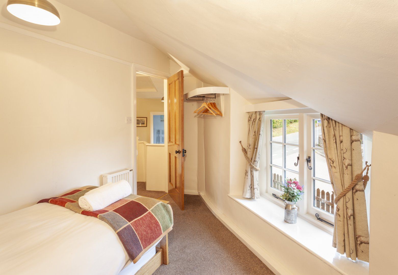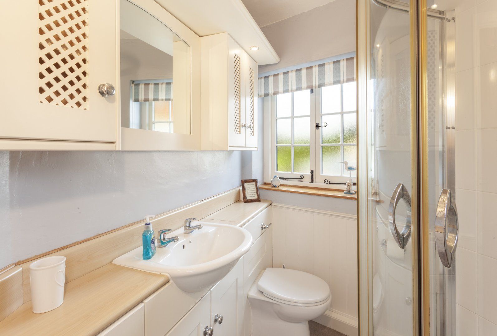 Upstairs, the main bedroom has a Victorian style double bed, with luxury memory foam mattress, fitted wardrobe, bedside tables and a chest of drawers. The second bedroom has twin beds, a clothes rail, bedside table and built-in drawers.