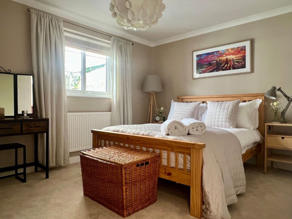 What this cottage bungalow may lack in period charm, it more than makes up for in location. Tucked within the peaceful grounds of a Georgian Manor, you’re just a short stroll from Frome’s thriving high street. Private parking for two cars – a rarity in central Frome – makes arrivals easy, as does the nearby train station for day trips to nearby Bath. For downtime, a private suntrap garden and covered decking are prime for pre-dinner drinks, whatever the weather. While the sleek kitchen has everything you need to prepare dinner with fresh finds from Frome Market.