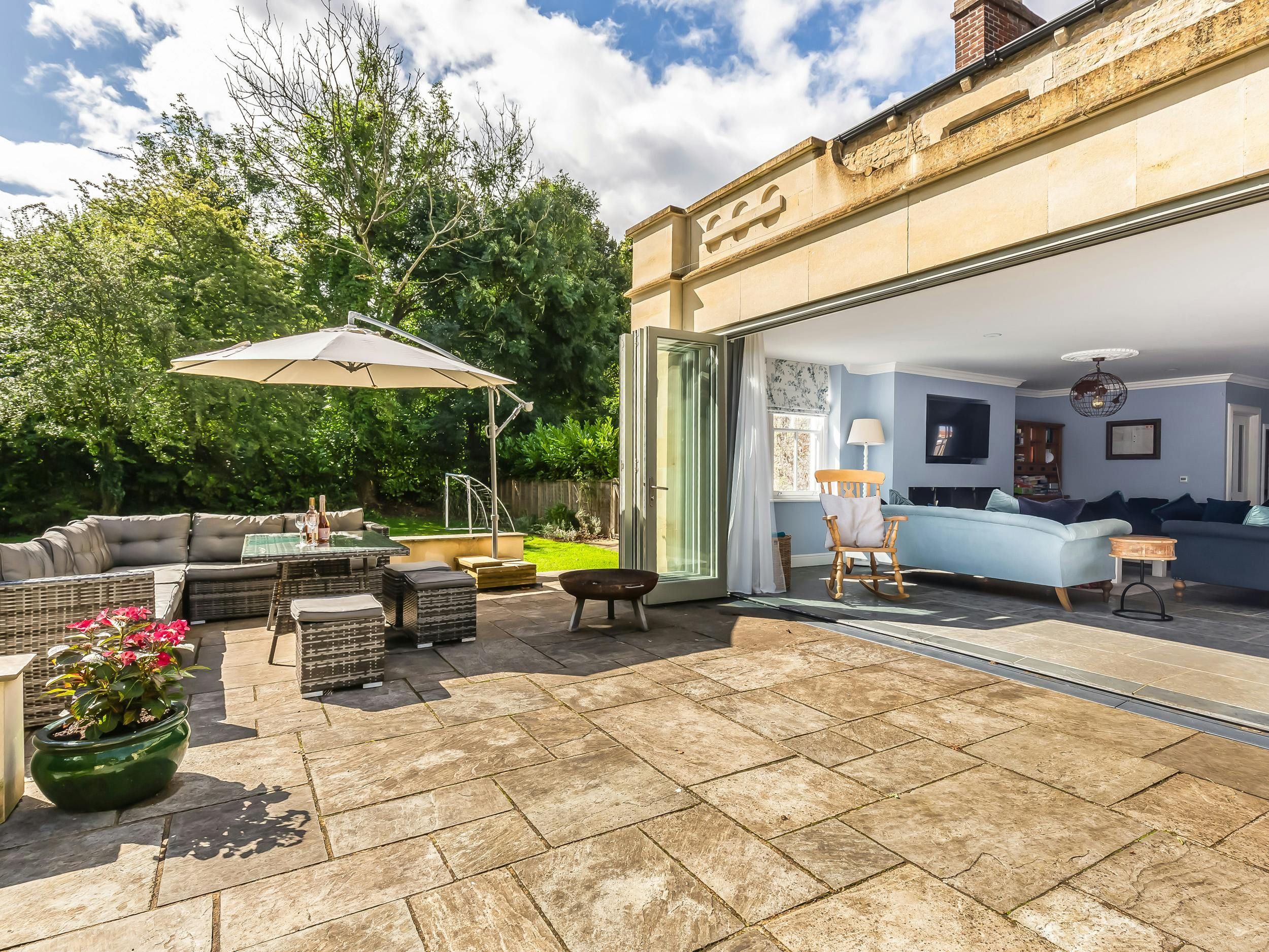 *There's a stone step down from the patio to the lawn in the rear garden.